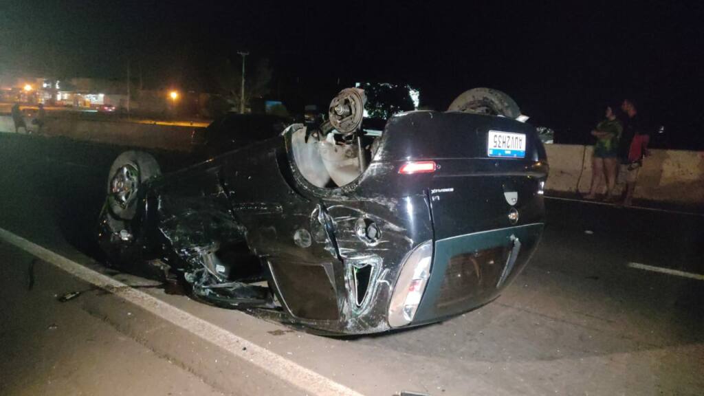 Ele alegou que o local estava bem escuro e que não havia nenhuma sinalização alertando que tinha um veículo capotado na via. O motorista do Santana foi socorrido e encaminhado ao pronto socorro do Hospital Bom Samaritano.