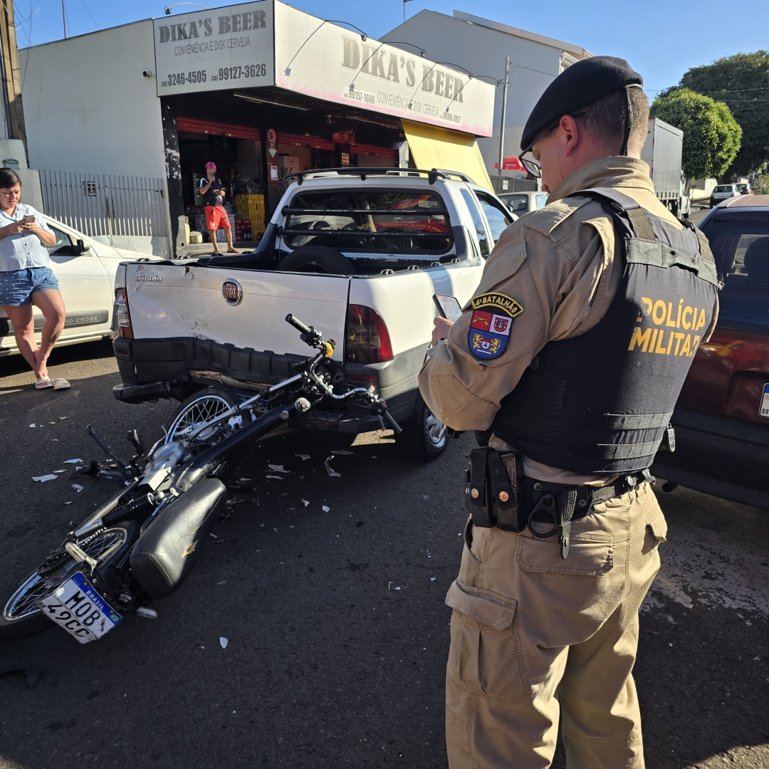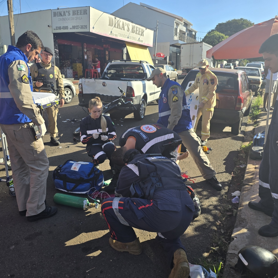 O acidente aconteceu na tarde de domingo, 25, na Rua Universo, no Jardim Universo, em Maringá. Um adolescente pilotando uma moto Honda Pop bateu com muita violência na traseira de uma utilitário Fiat Strada. Com o impacto, o adolescente sofreu ferimentos e trauma de tórax considerado grave.