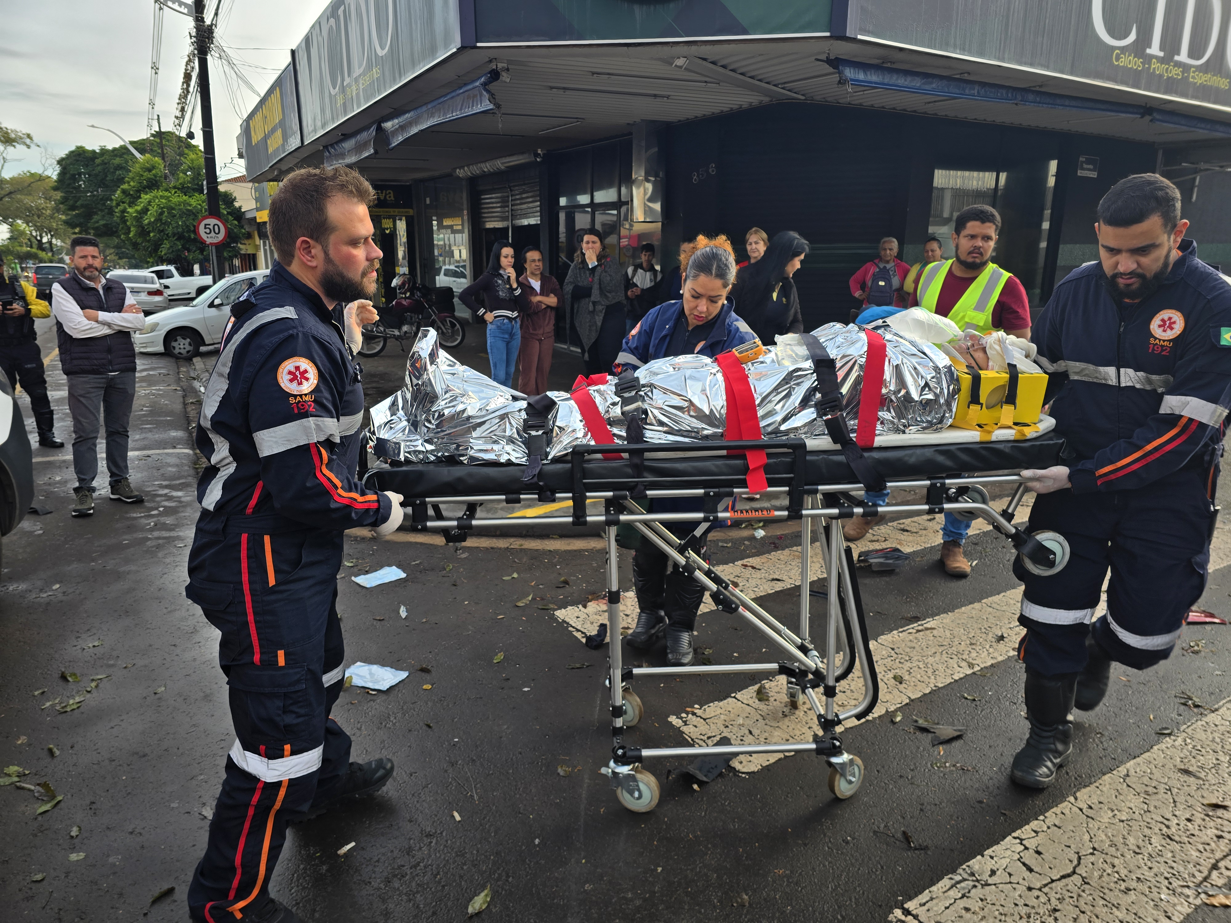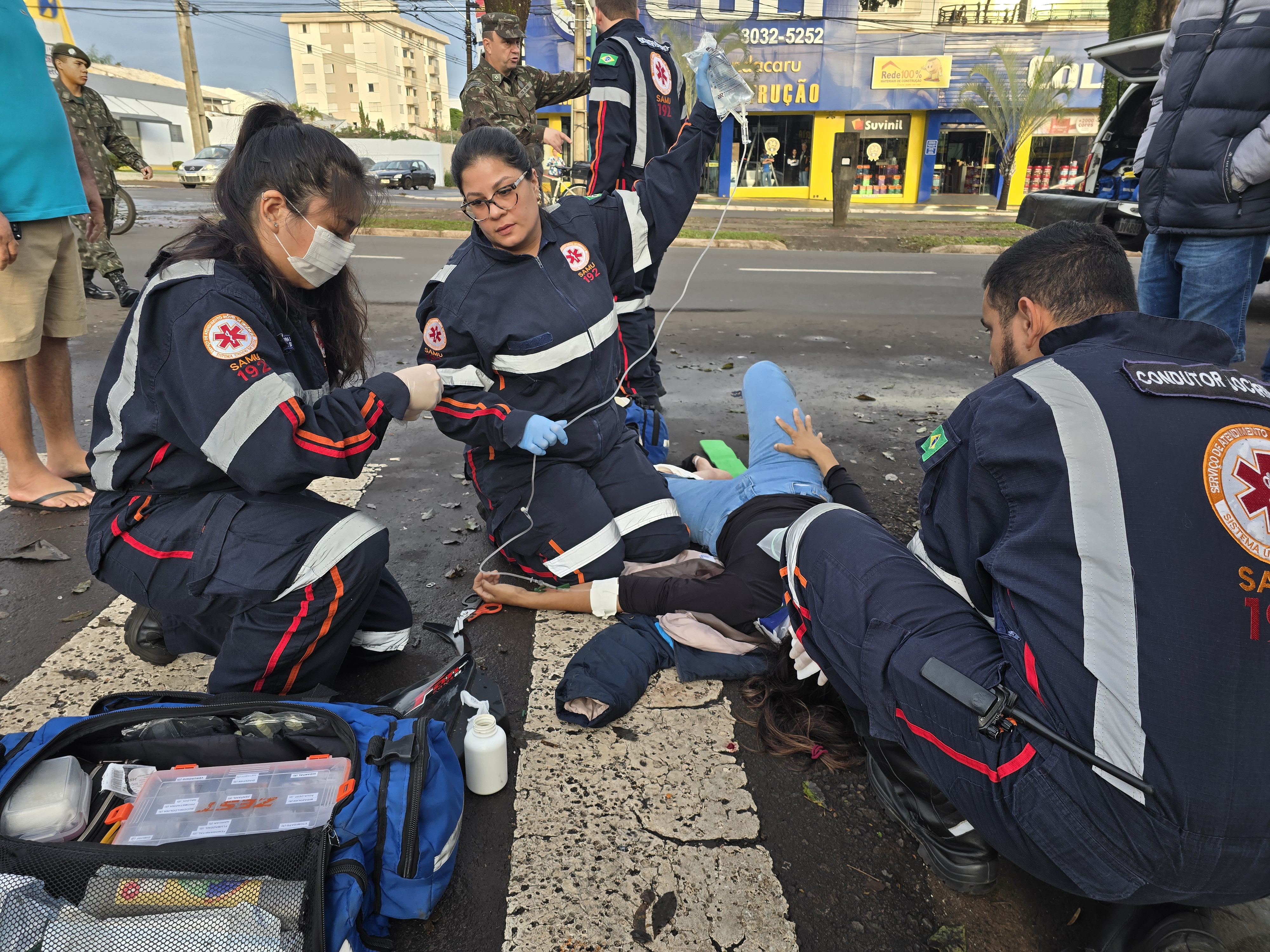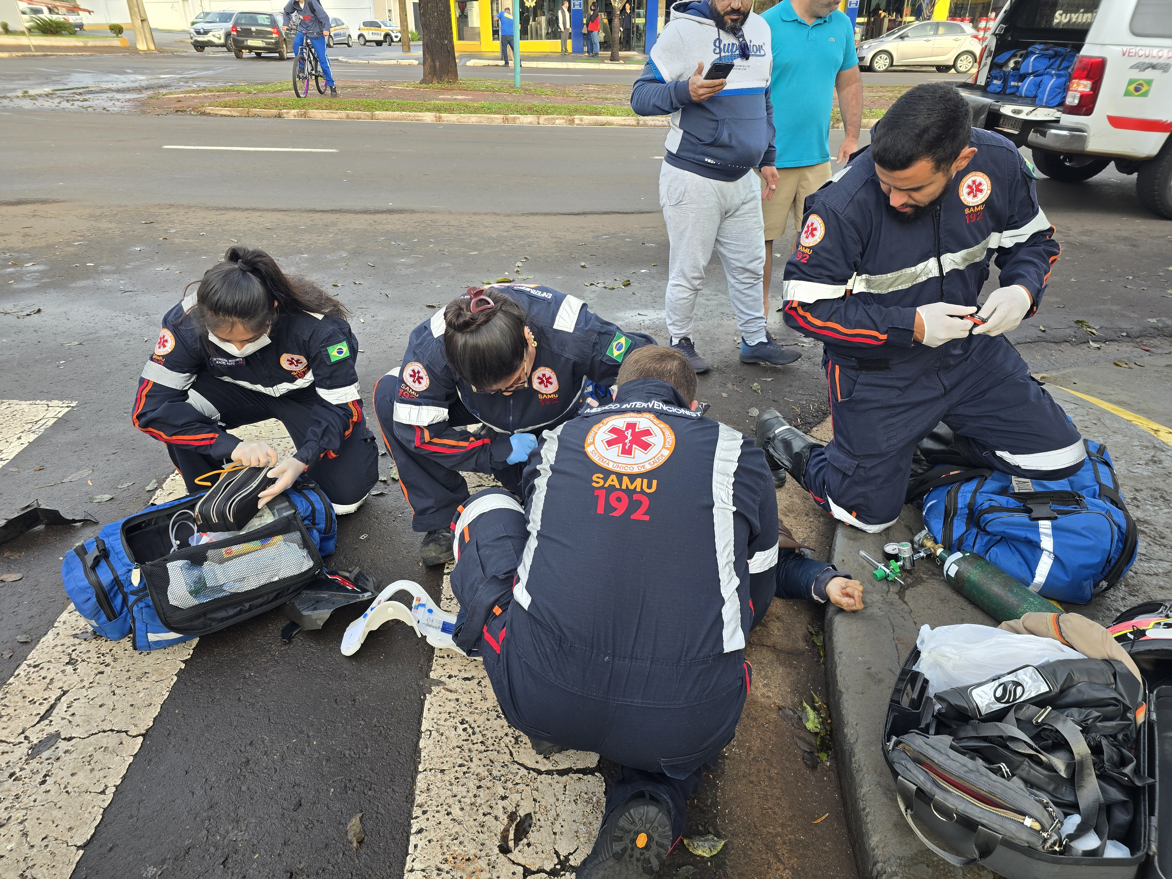 A motociclista não conseguiu desviar e colidiu com muita violência contra o automóvel. Claire de Freitas, de 46 anos, sofreu uma fratura exposta em uma das pernas e um corte na testa. Uma equipe médica do Samu rapidamente chegou ao local e prestou os primeiros atendimentos até a chegada da ambulância.