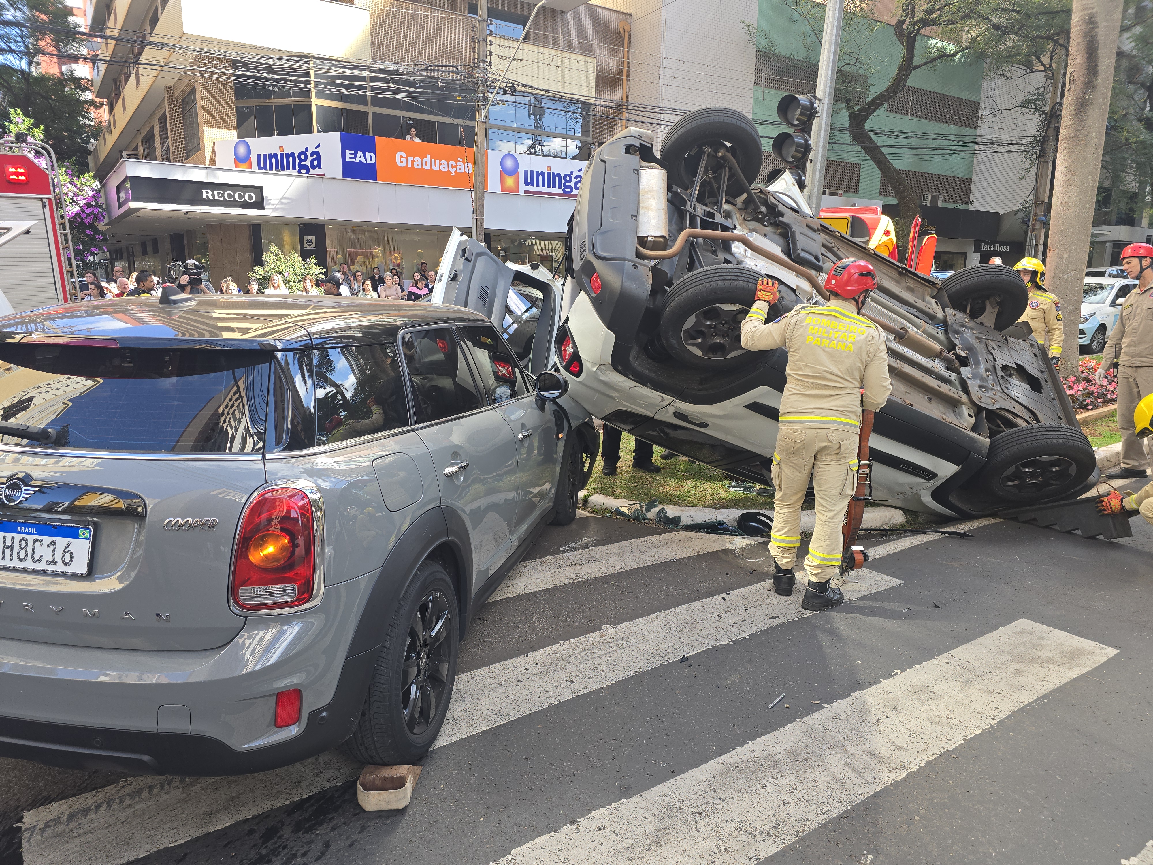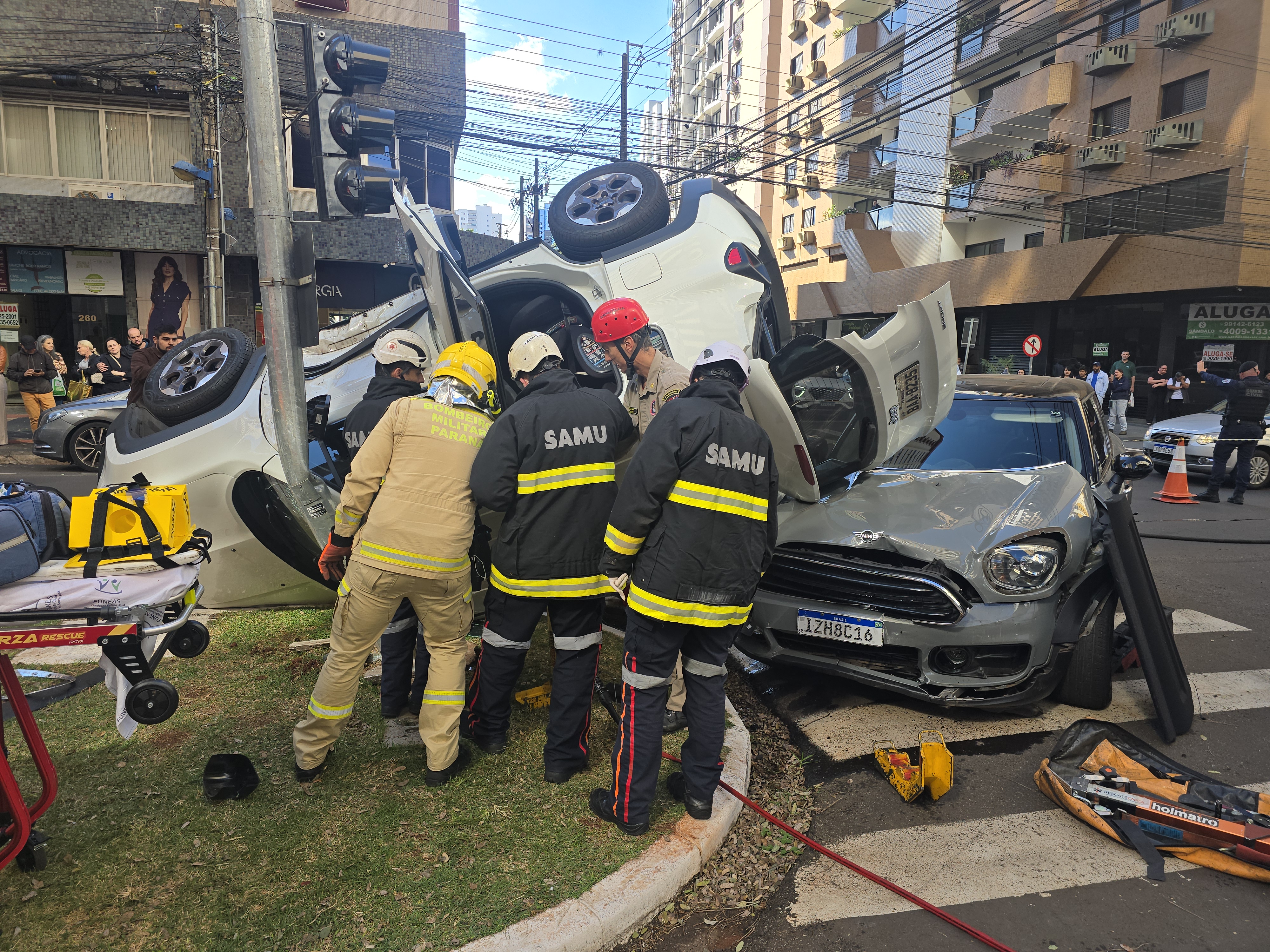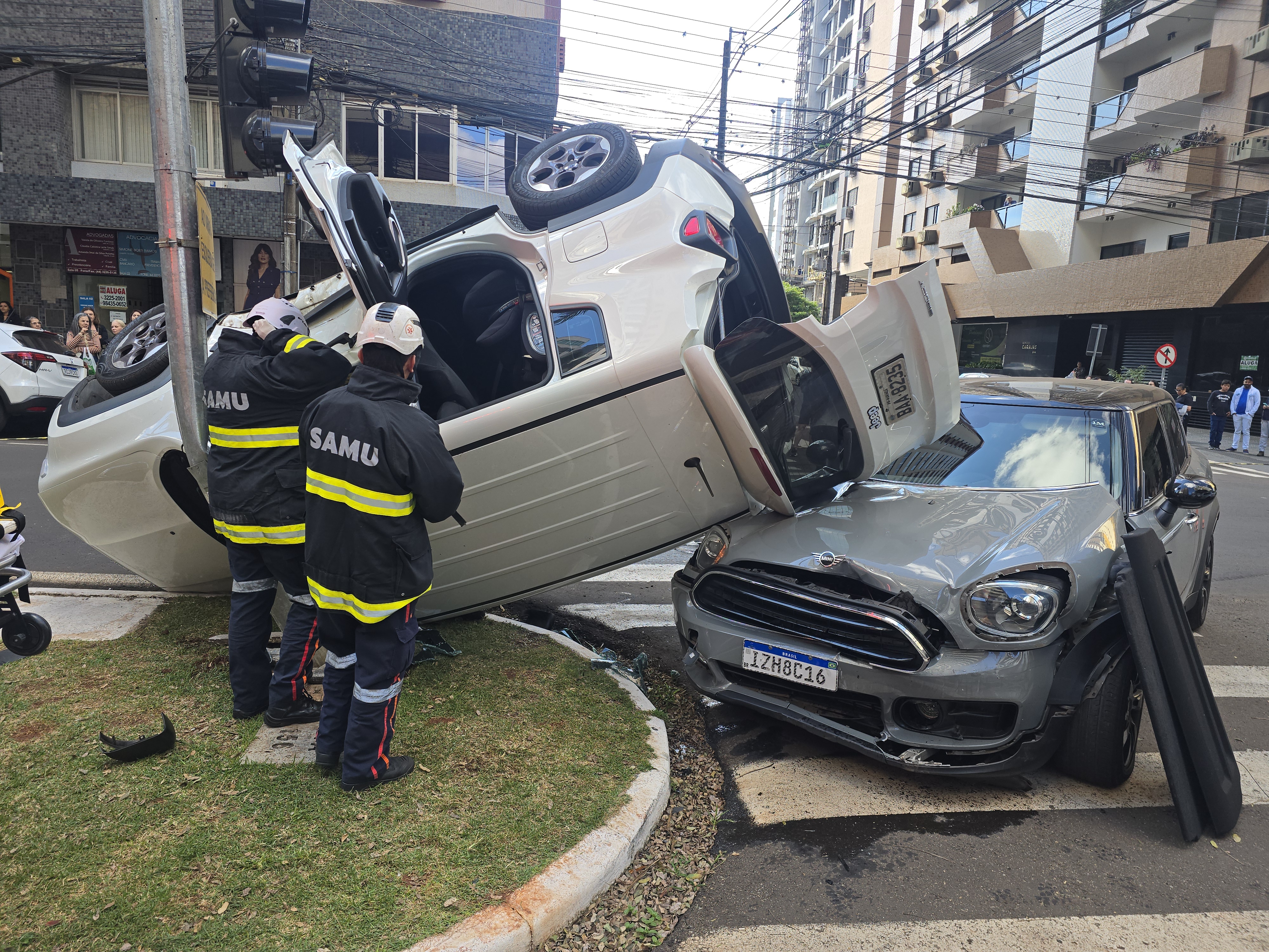 O acidente aconteceu na tarde desta sexta-feira, 8, no cruzamento da Avenida XV de Novembro com Rua Piratininga, no centro de Maringá. Uma mulher que conduzia um Jeep Renegade invadiu a preferencial de um automóvel Mini Cooper.