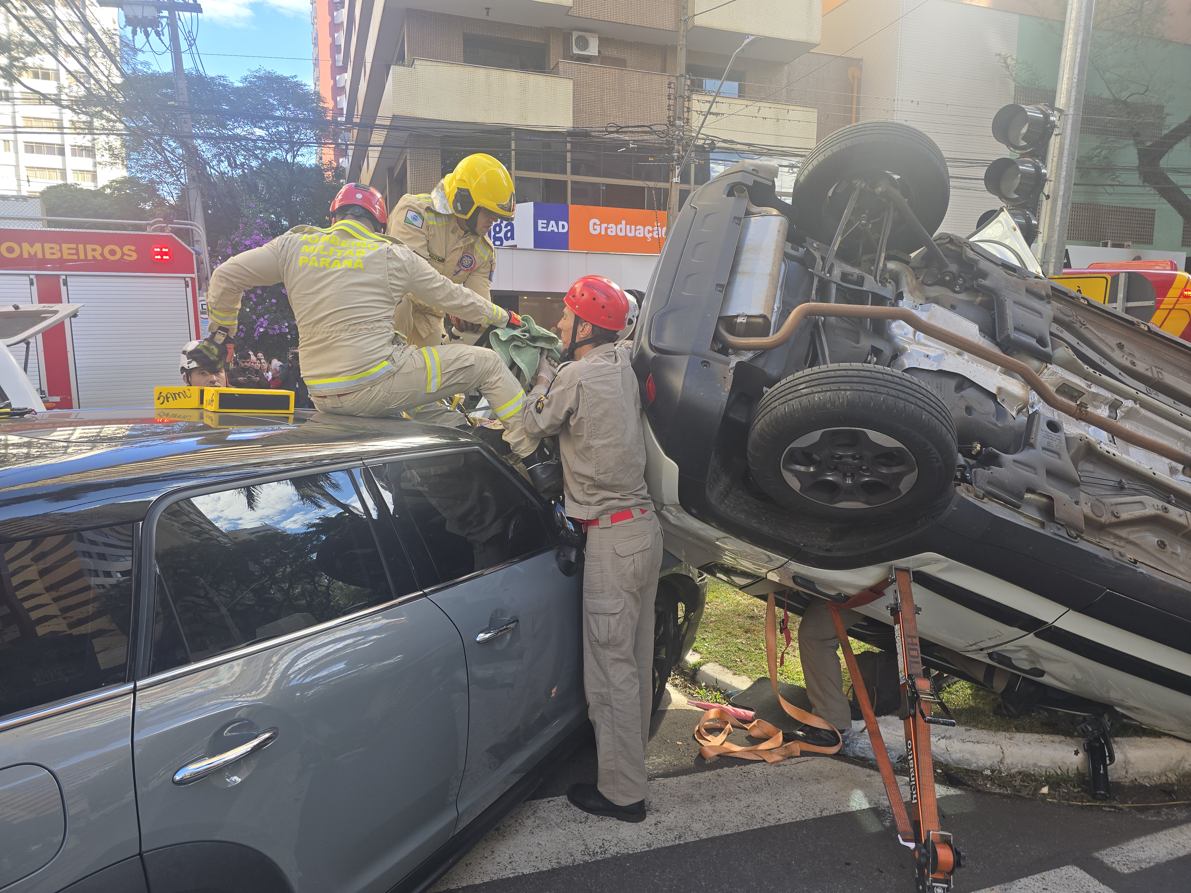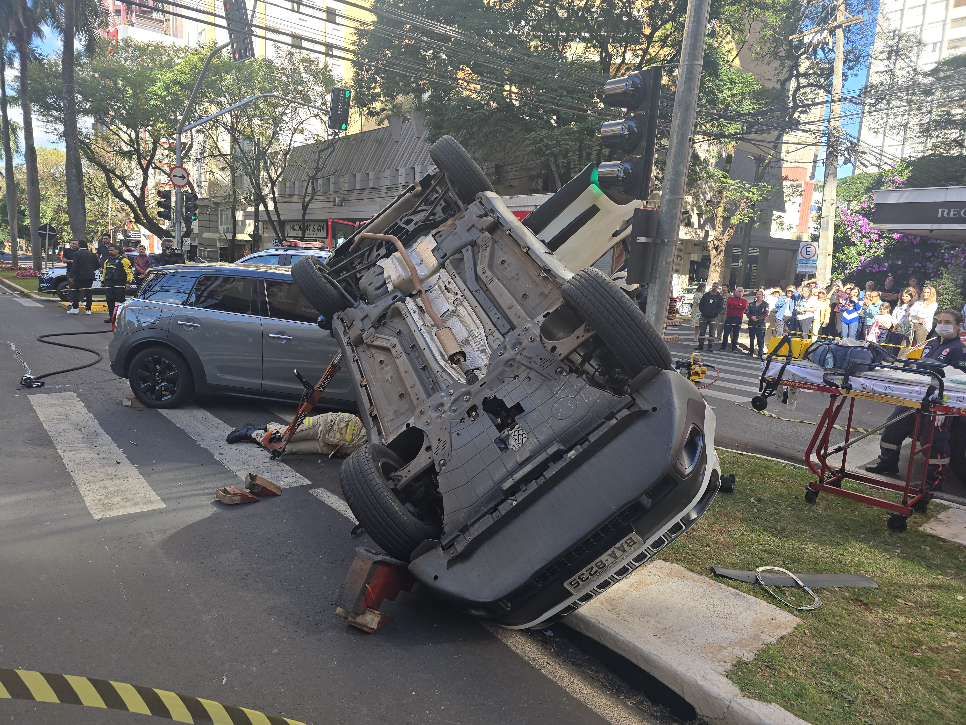 Pelas informações colhidas no local, a condutora do Jeep seguia pela XV de Novembro quando teria passado no semáforo vermelho. A colisão foi tão forte que o Jeep capotou. A mulher ficou impossibilitada de sair do veículo.