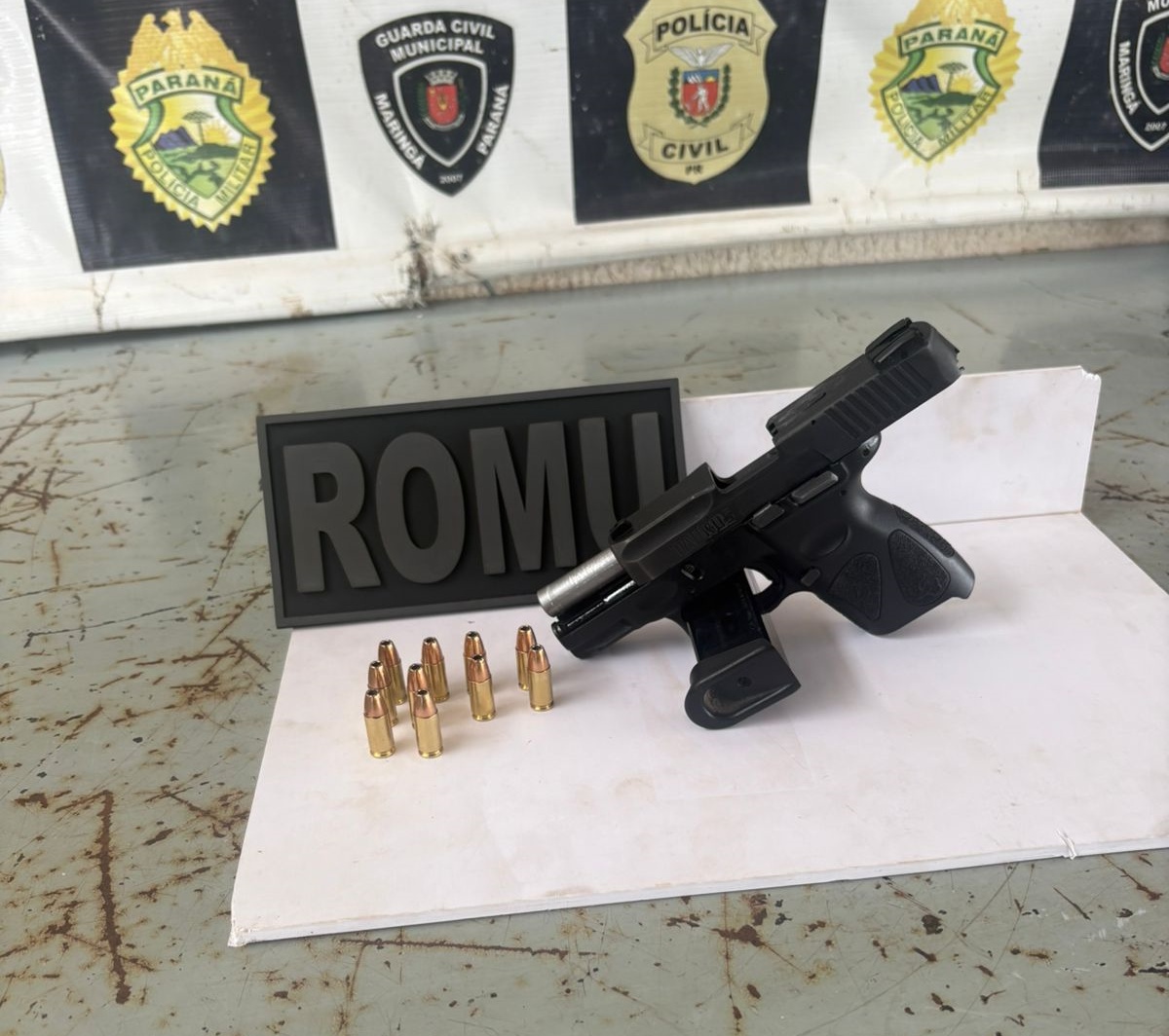 Na manhã desta quarta-feira, 1, uma equipe da ROMU da Guarda Civil Municipal de Maringá abordou um suspeito durante patrulhamento na Avenida Gastão Vidigal. Na revista pessoal, os agentes encontraram uma pistola calibre 9mm municiada.