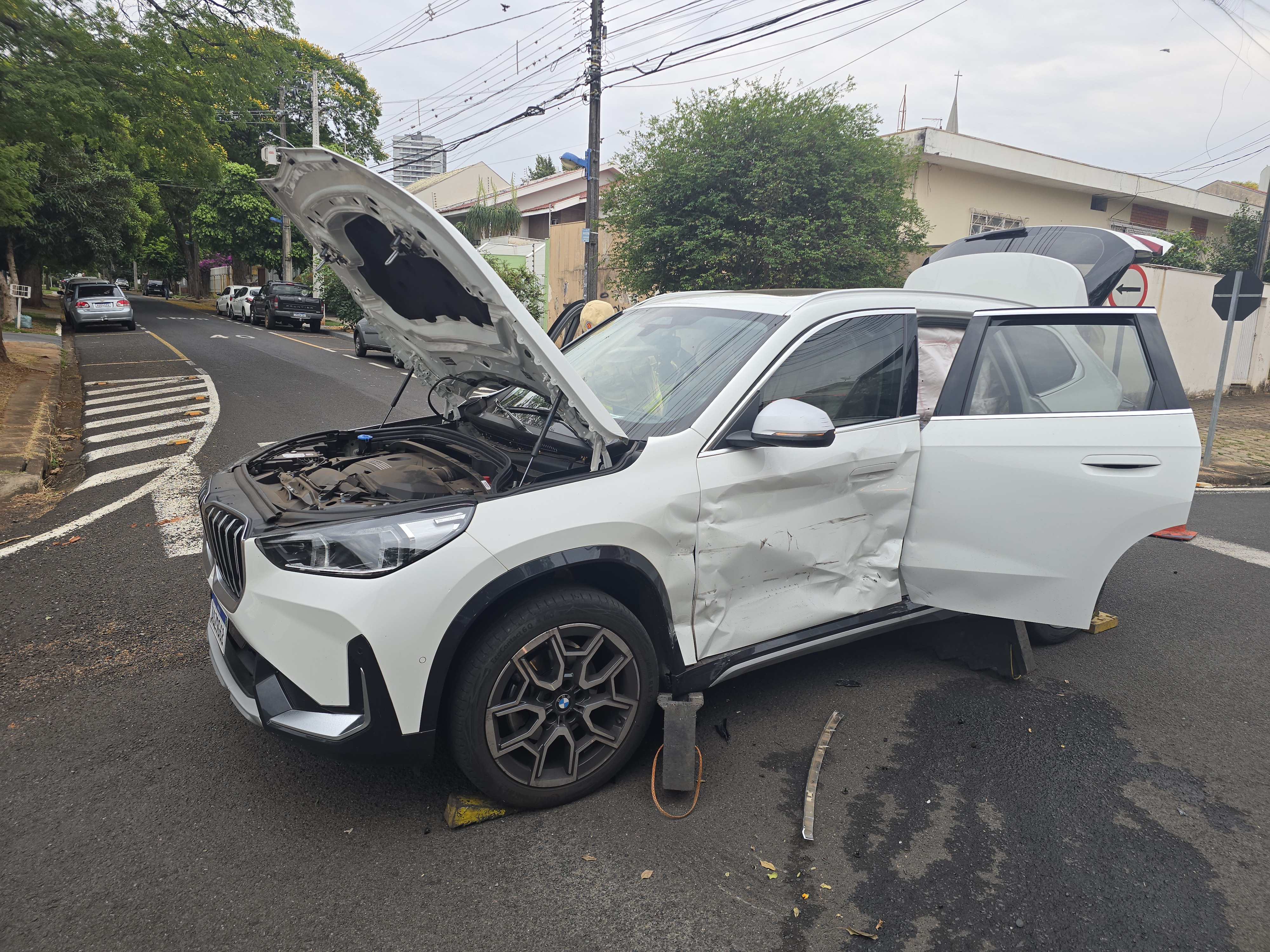 O acidente entre dois carros aconteceu na tarde desta quinta-feira, 2, no cruzamento das Ruas Antônio Salema com Marcelino Champagnat, na zona 2, em Maringá. Uma mulher conduzindo uma BMW invadiu a preferencial de um Honda HR-V que também era conduzido por uma mulher.