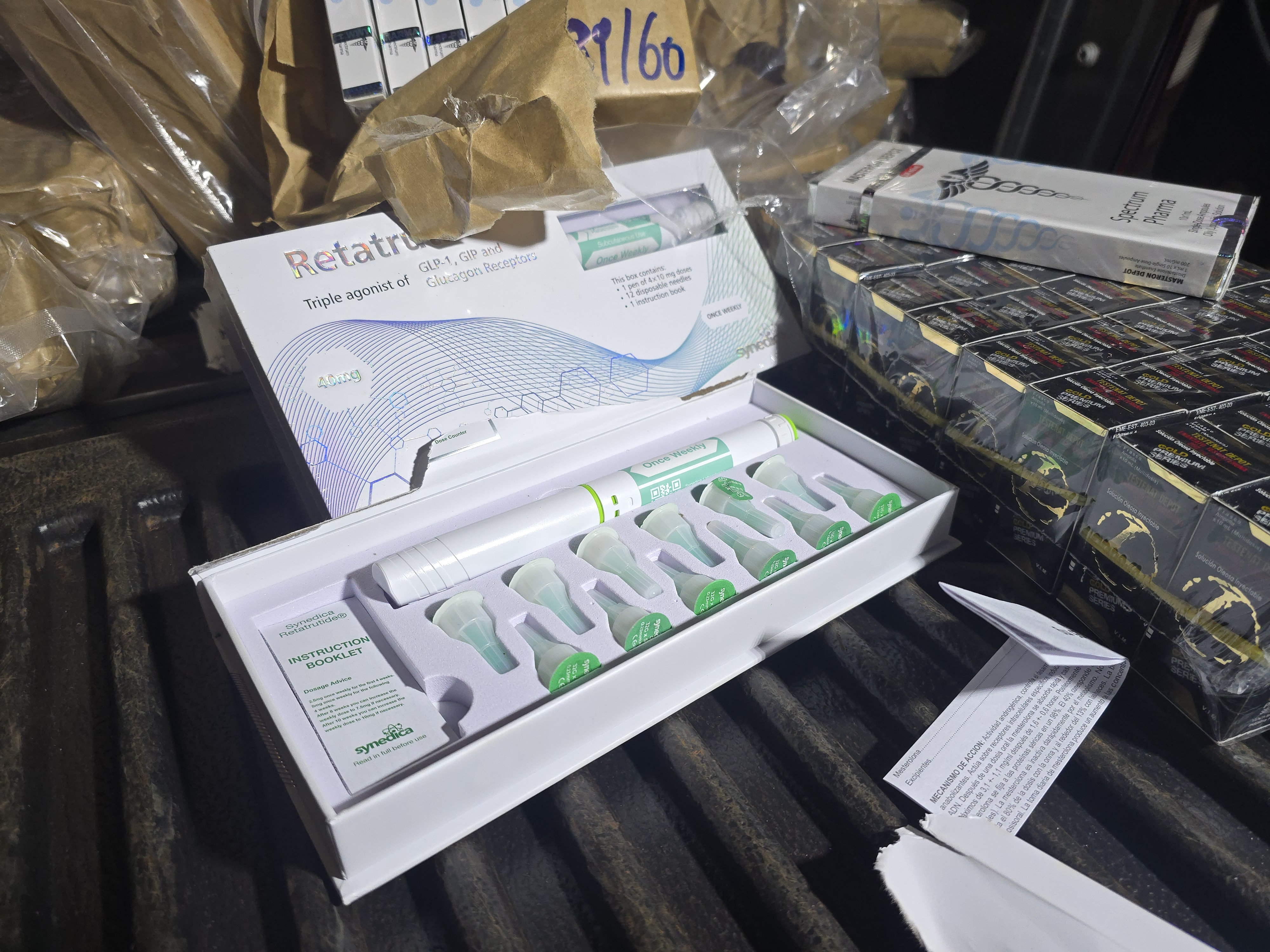 Após acompanhamento tático, o suspeito conseguiu parar a caminhonete na pista de rolamento da rodovia e fugir a pé. No interior da Amarok, a PRF localizou anabolizantes, incluindo produtos para controle de diabetes, hormônios, e diversas caixas com canetas emagrecedoras.