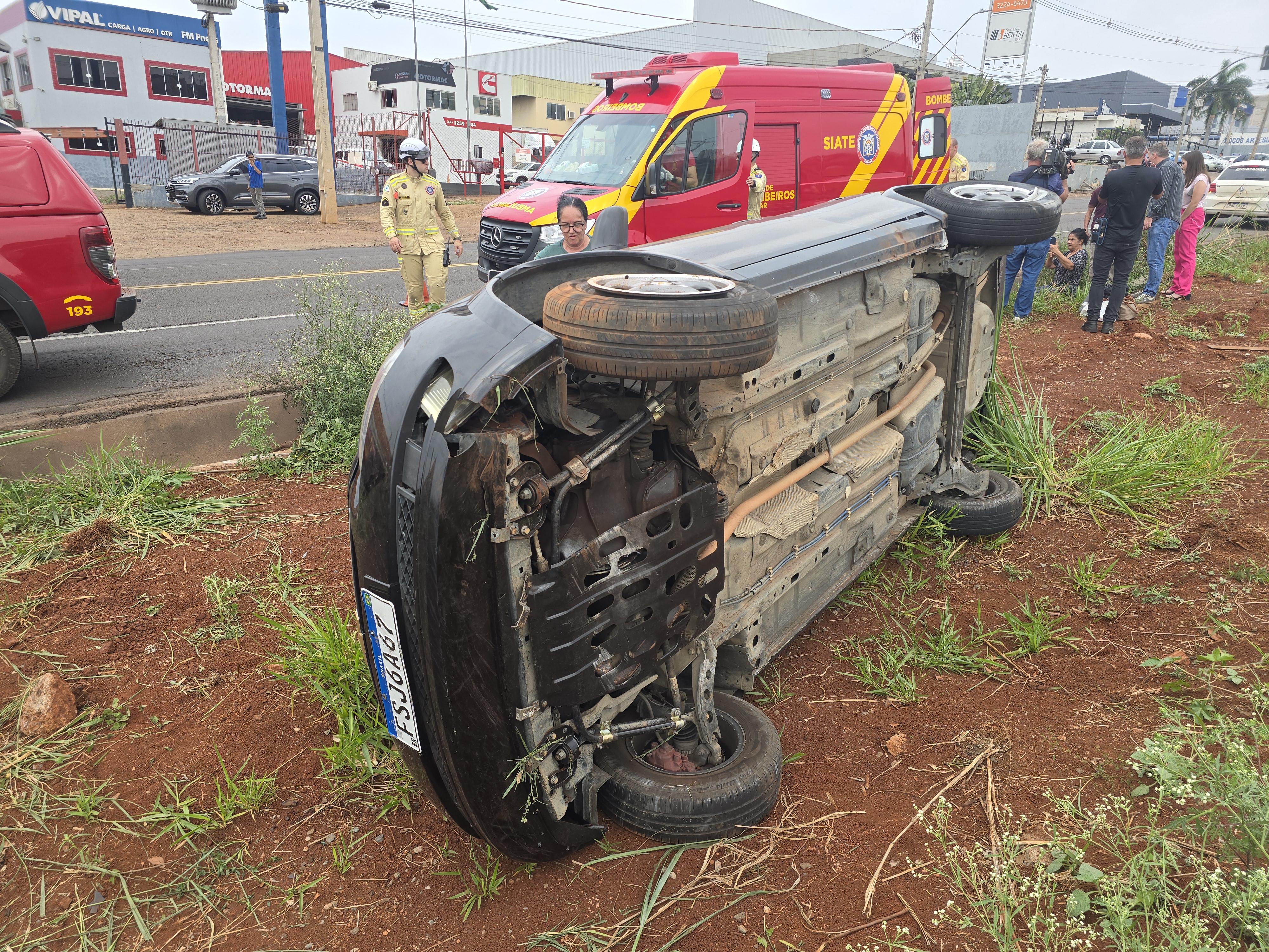 O acidente aconteceu no início da tarde desta terça-feira, 7, no Contorno Sul de Maringá. Uma família que ocupava um GM Corsa se envolveu em um capotamento após um dos pneus estourar. O condutor de 81 anos seguia sentido rodovia PR-317 quando perdeu a direção do carro.