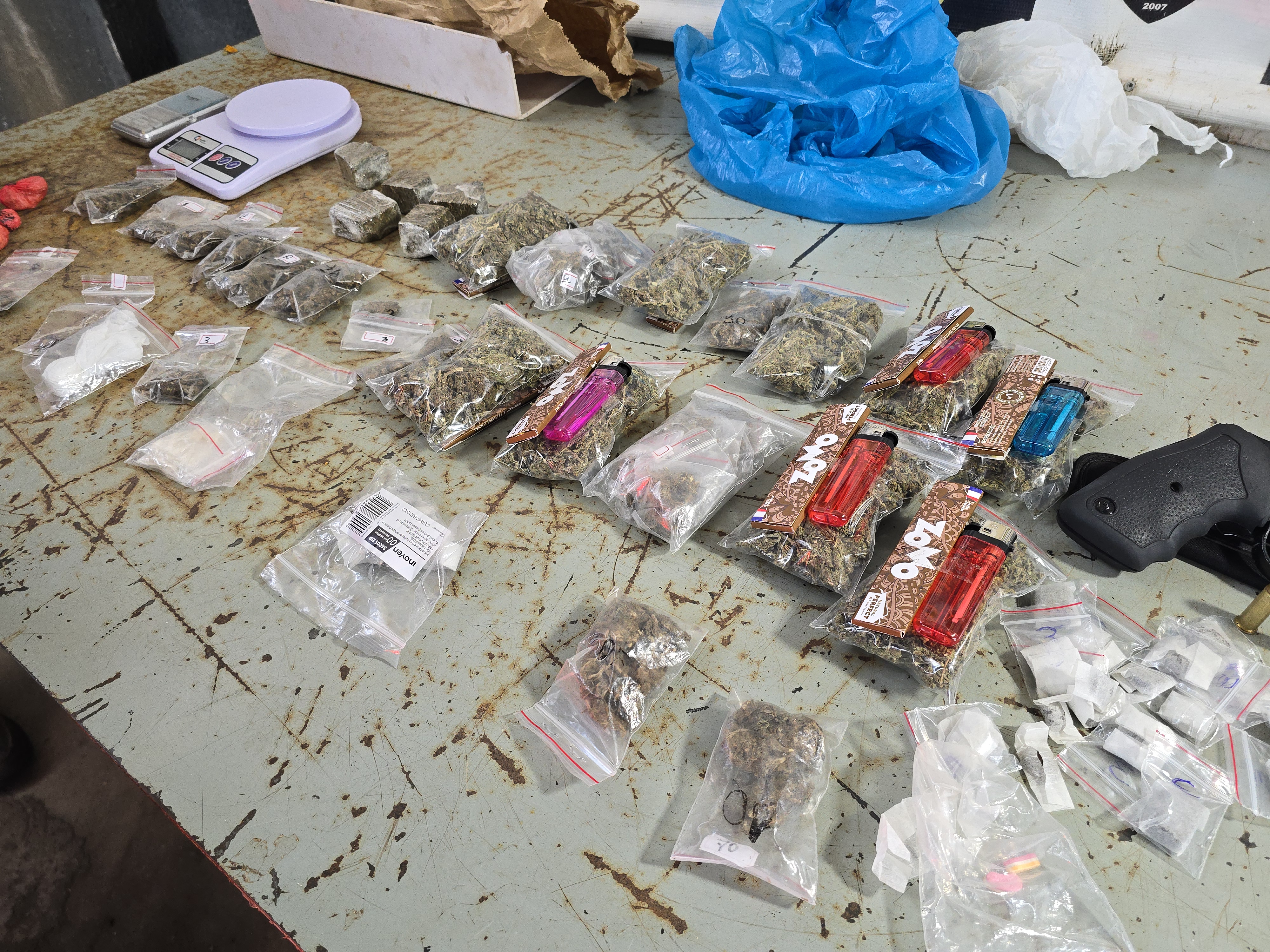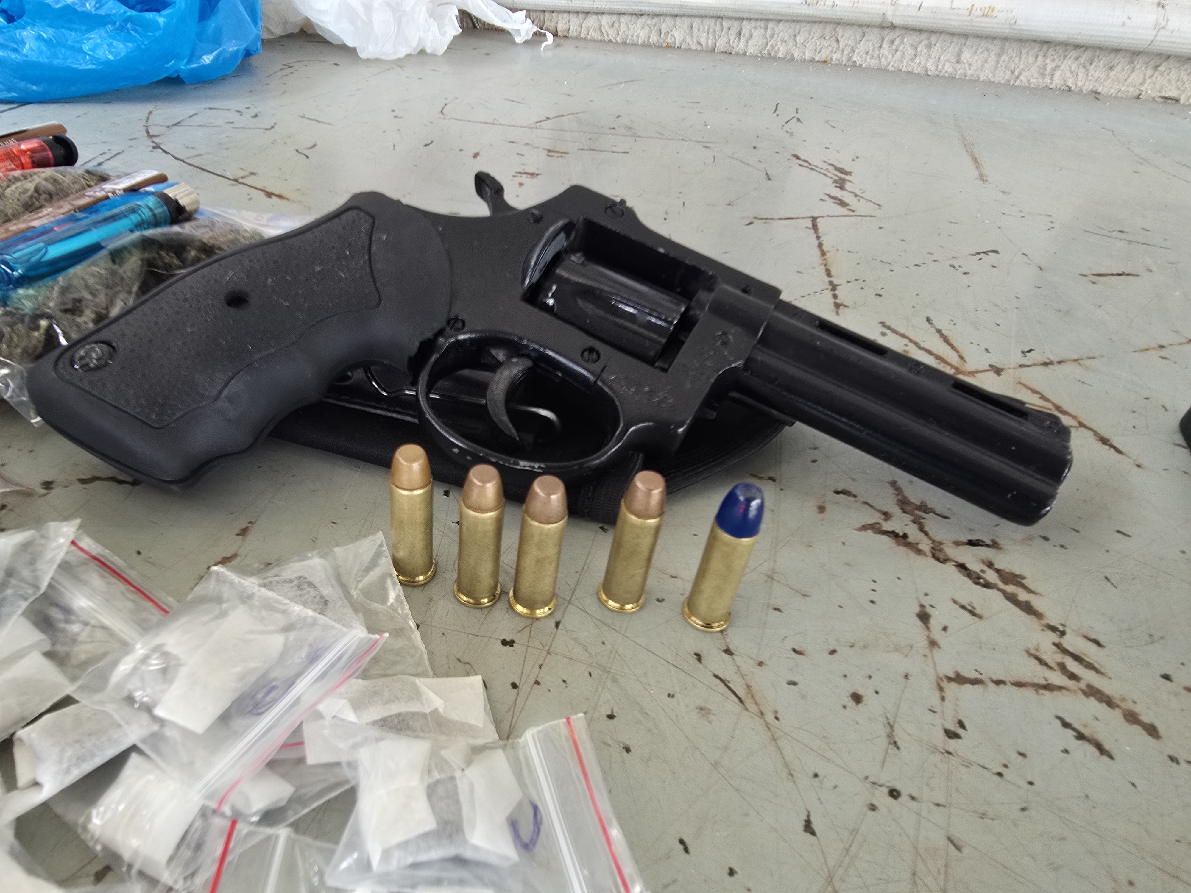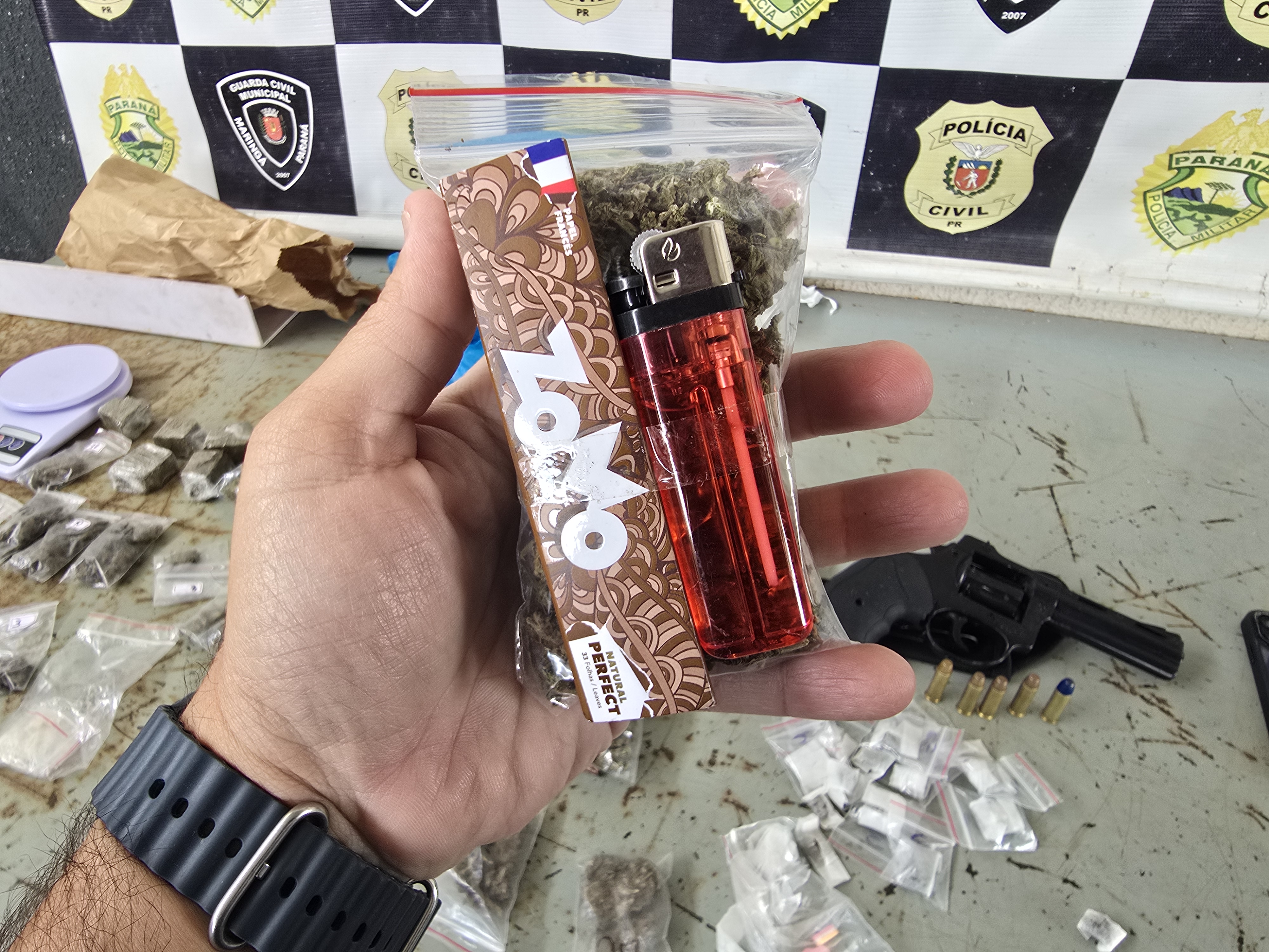 No interior da casa, os policiais civis localizaram um revólver calibre 38 municiado, maconha, crack, cocaína, haxixe, e alguns kits denominados "Kit Nóia", que além da maconha, tinha papel seda e isqueiro. O traficante que estava usando tornozeleira eletrônica já tinha sido preso por tráfico de drogas.