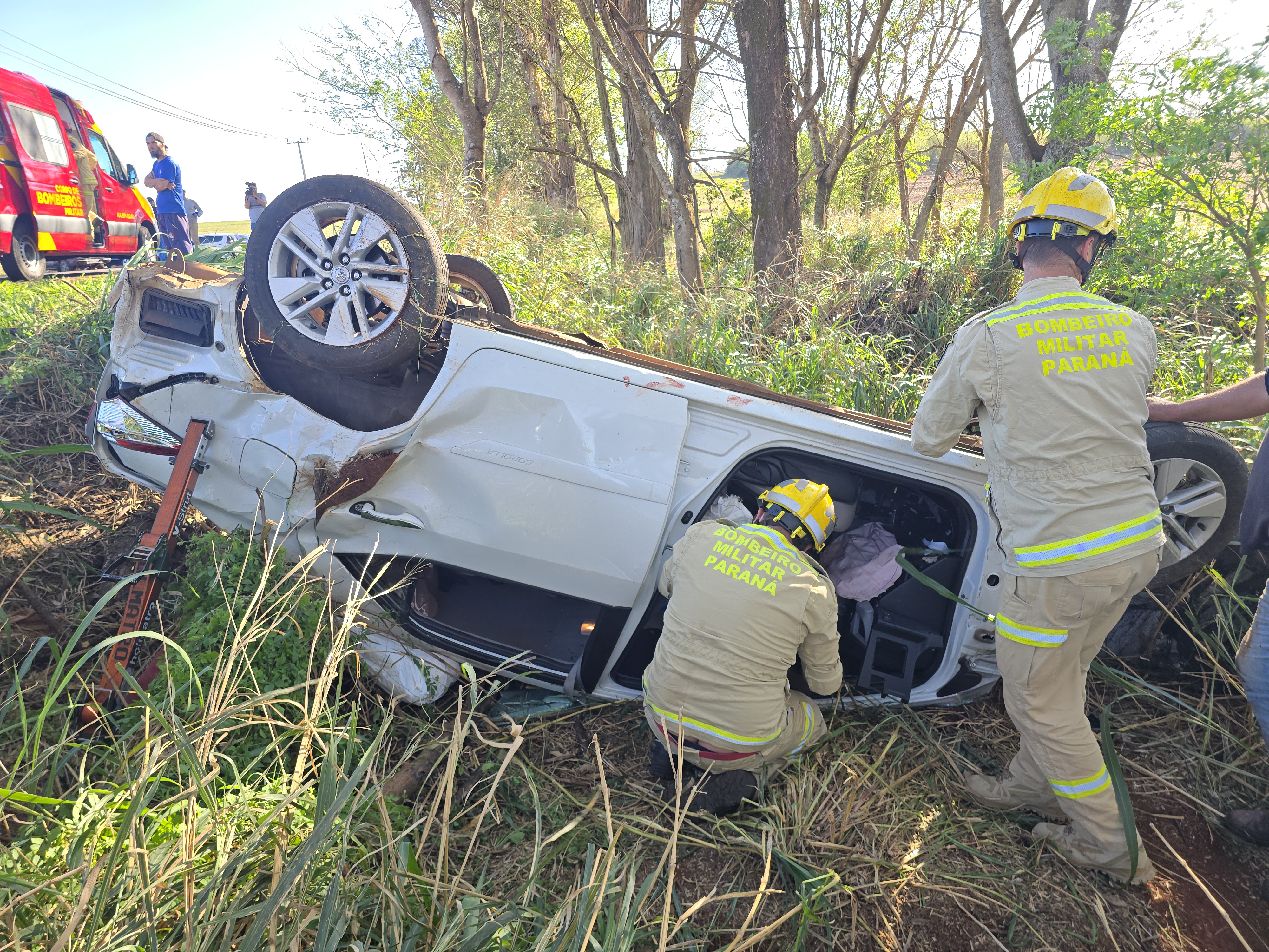 Uma senhora de 76 anos sofreu um capotamento na tarde desta terça-feira, 21, na rodovia PR-551, em Ivatuba. A motorista dirigia um Toyota Corolla quando perdeu a direção saindo da pista. A idosa viajava sozinha de Foz do Iguaçu a Ivatuba para cuidar de um irmão que passaria por cirurgia.