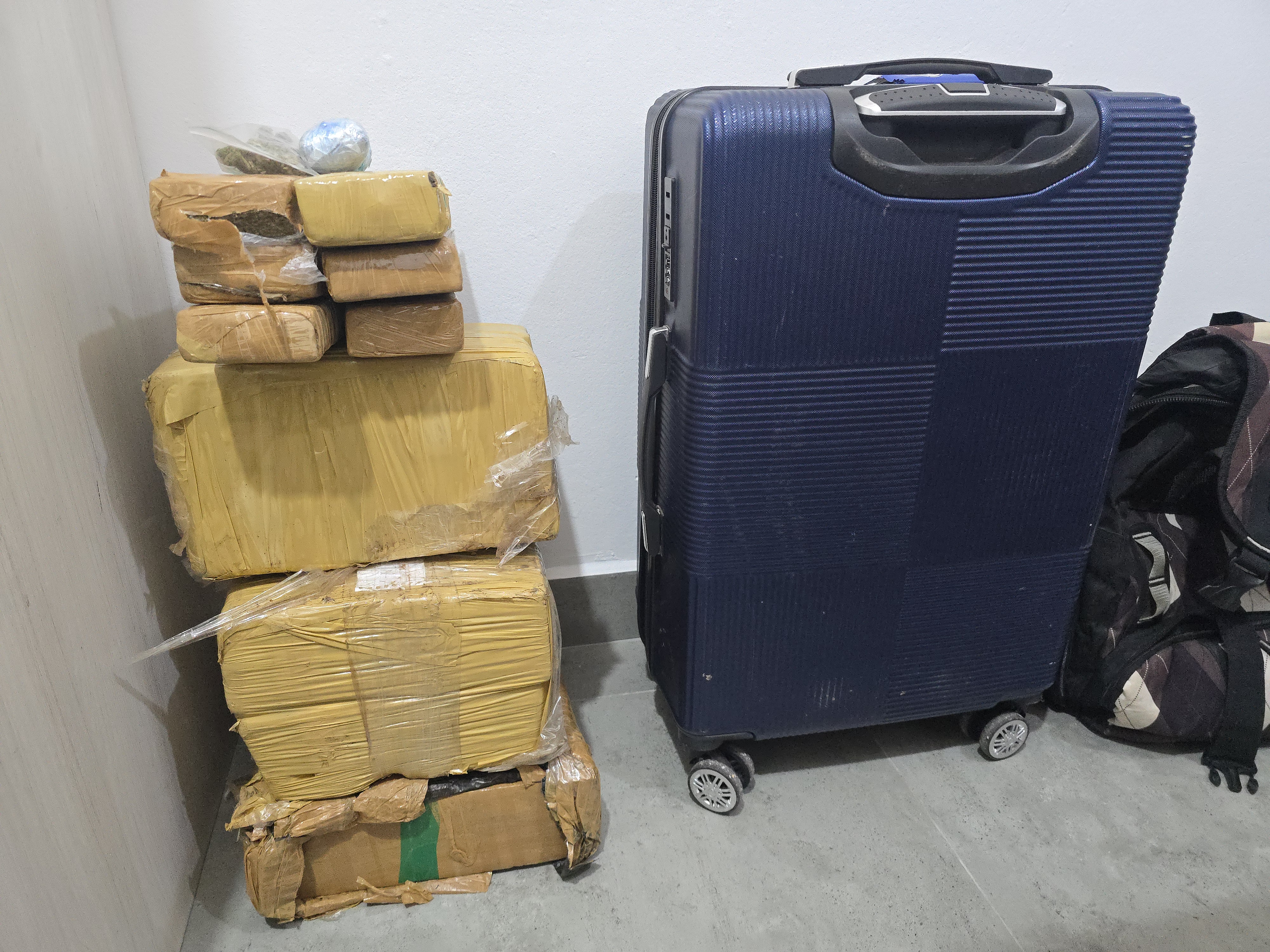 Uma equipe da Receita Federal apreendeu um adolescente de 16 anos transportando 27 quilos de maconha dentro de uma mala. Já em outro ônibus abordado, uma mulher de 31 anos foi flagrada transportando 14 quilos da droga. Os ônibus faziam a linha Foz do Iguaçu a Londrina.
