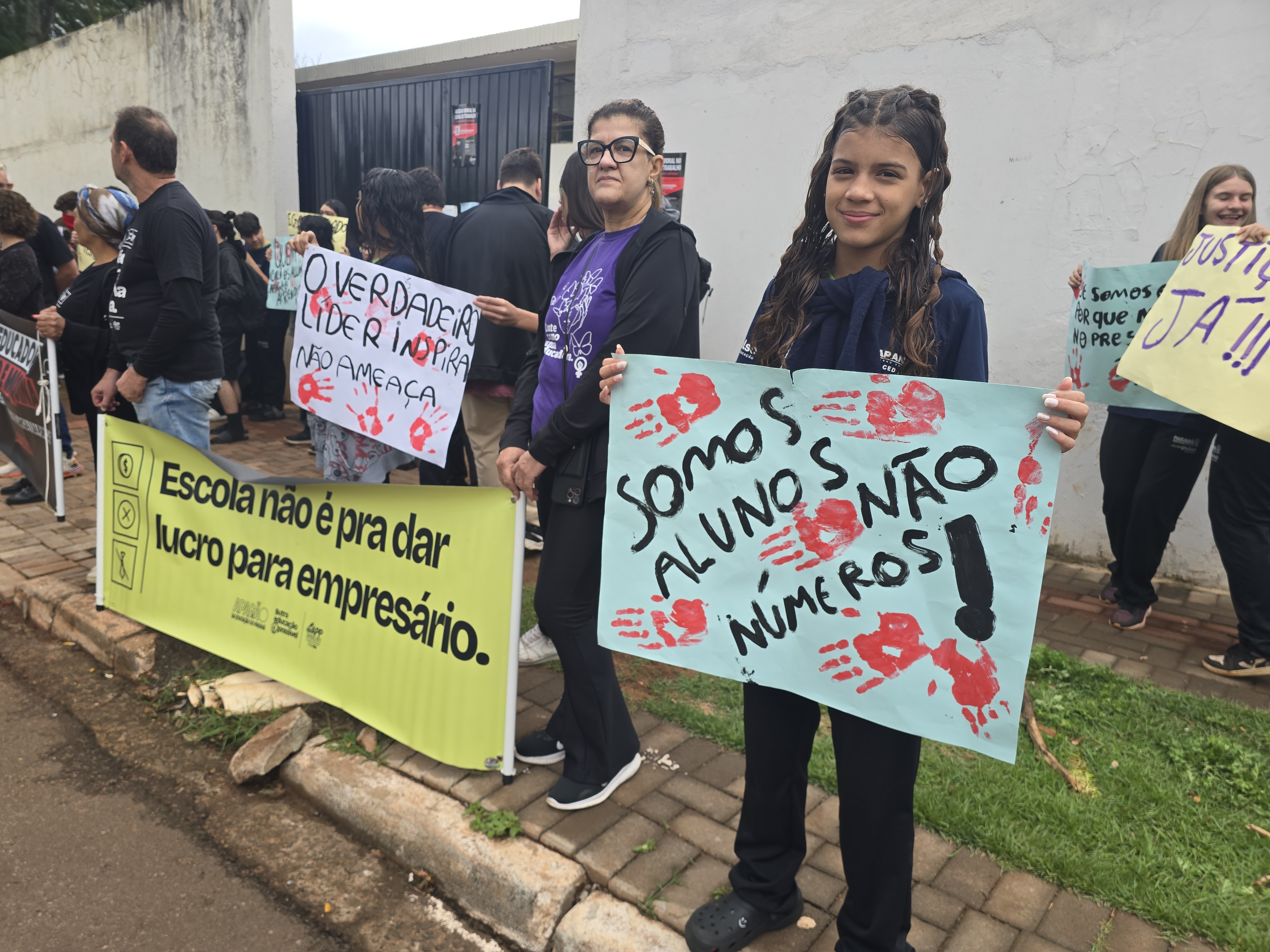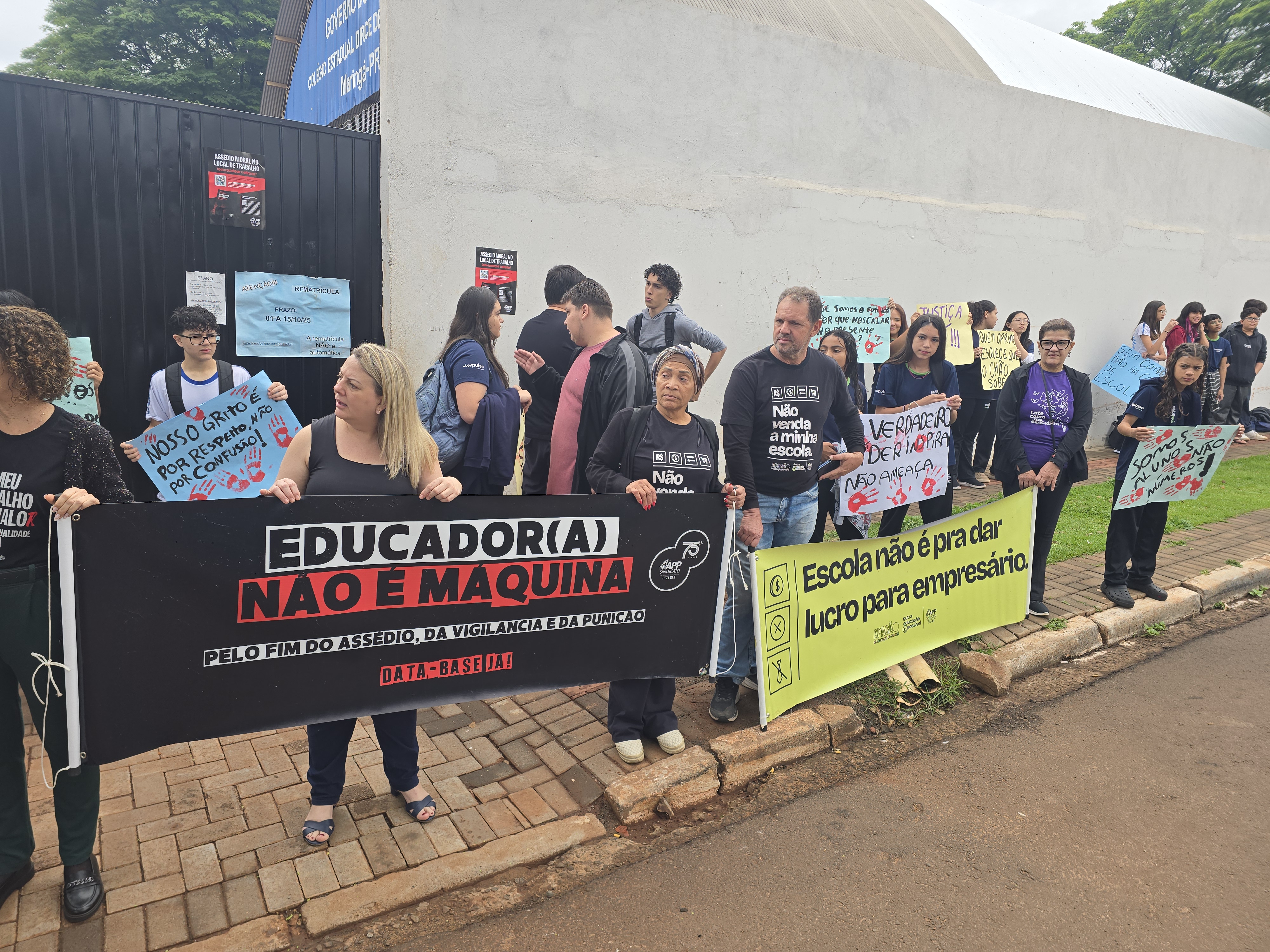 Estudantes e representantes da APP-Sindicato realizaram na manhã desta sexta-feira, 31, um ato em frente ao Colégio Estadual Dirce de Aguiar Maia, que fica na Vila Santa Izabel. O objetivo foi pedir o fim do assédio moral que tem sido registrado no local.