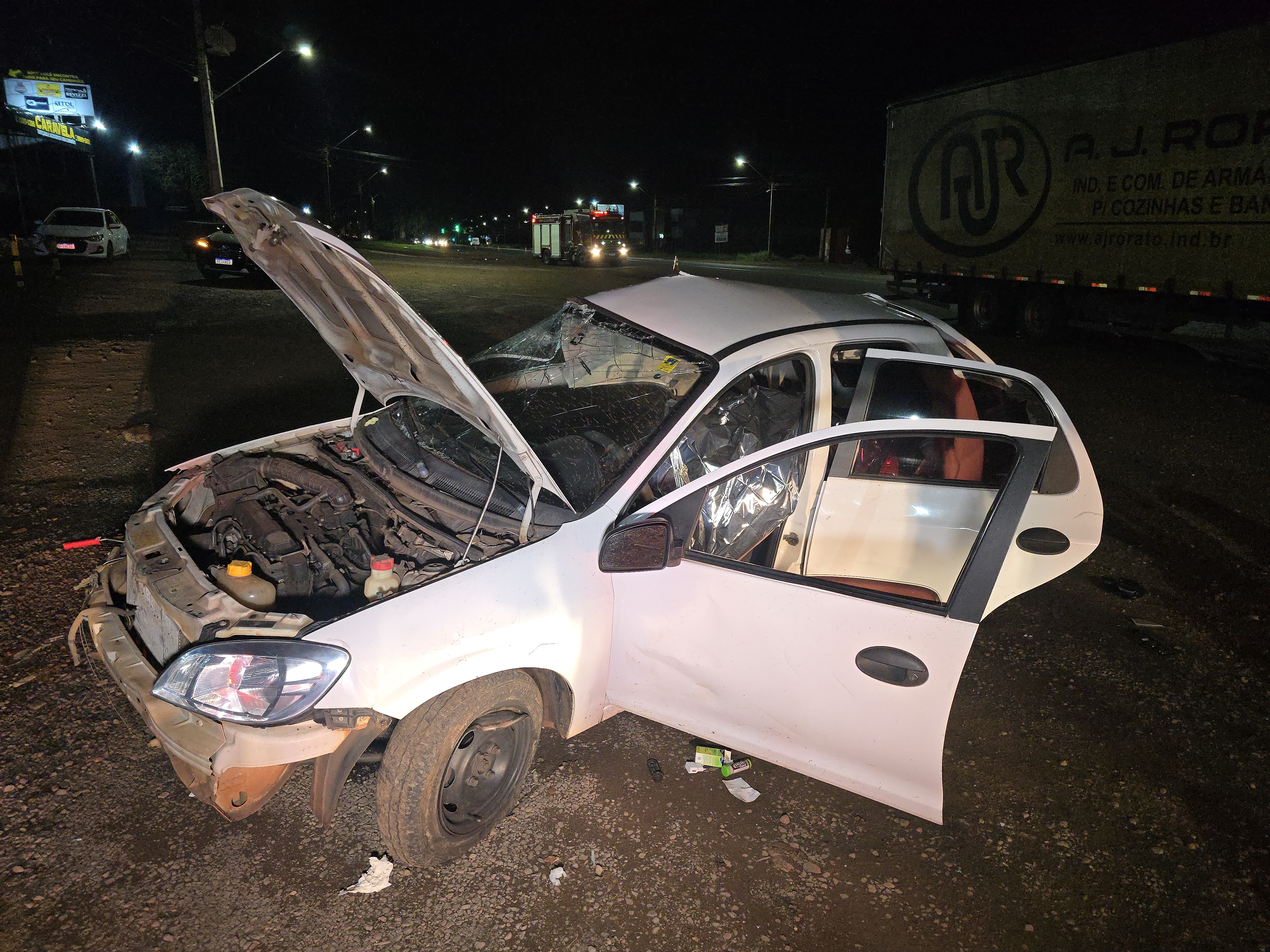 O acidente seguido de óbito foi registrado na noite de sábado, 1, nas proximidades do Jardim Bertioga, no Contorno Sul. Um rapaz de aproximadamente 40 anos dirigia um automóvel GM Celta quando foi atingido por um caminhão de uma fábrica de móveis.