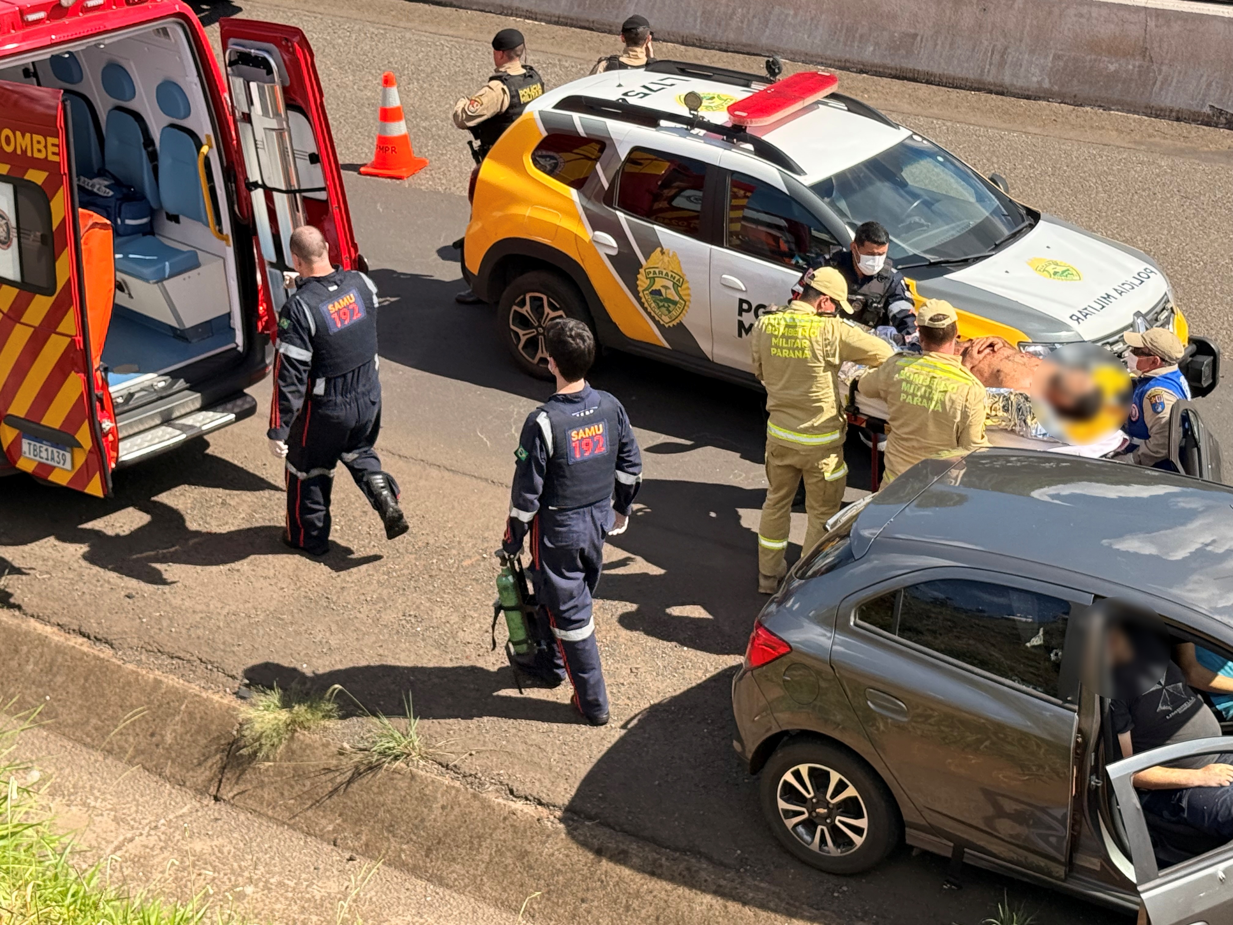 Três suspeitos que ocupavam um GM Onix clonado foram baleados na tarde desta terça-feira, 4, na rodovia BR-376, dentro do Contorno Norte de Maringá. O confronto policial envolveu o 32º Batalhão de Polícia Militar de Sarandi.
