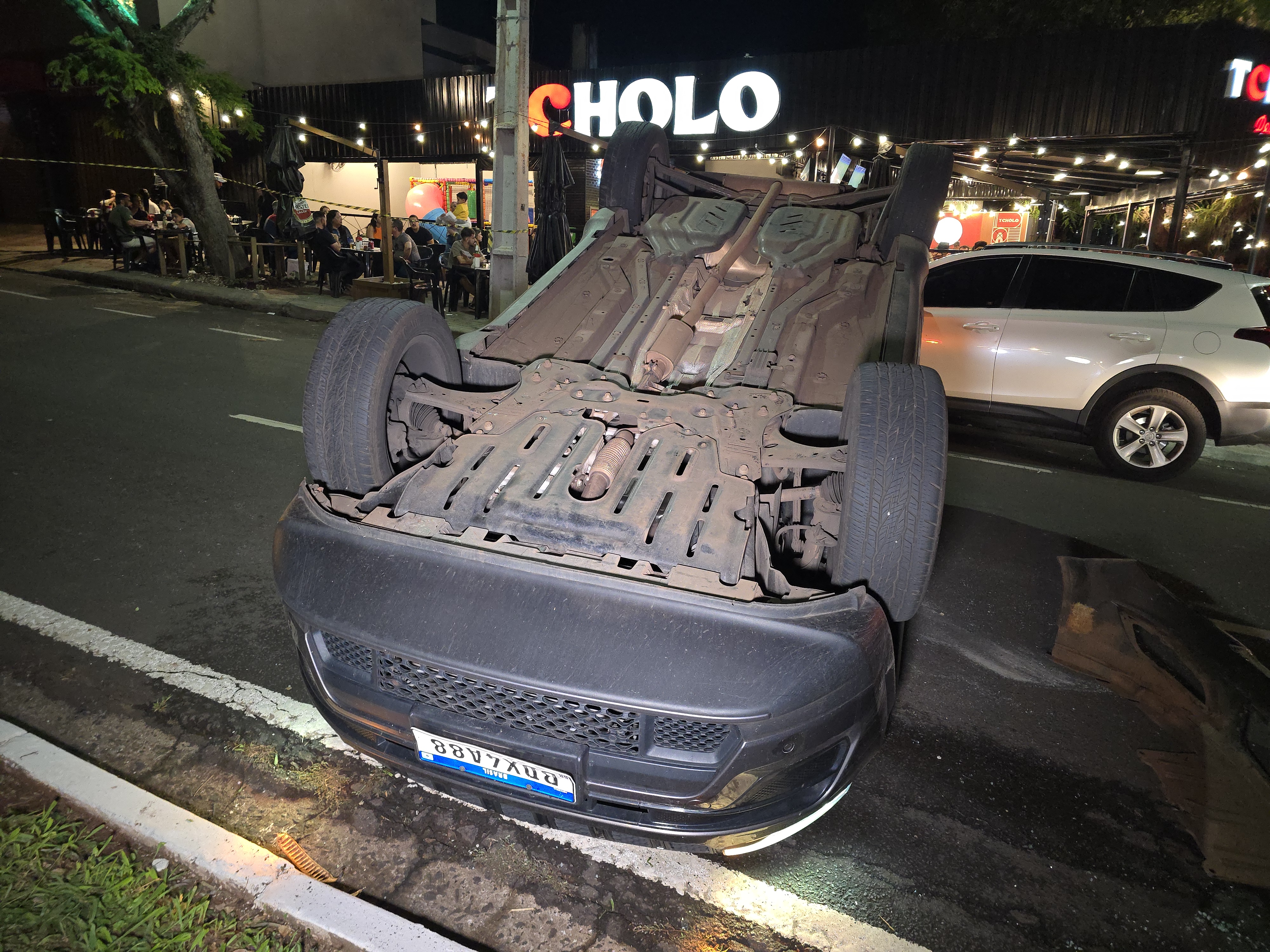 O para-choque junto com a placa do veículo ficou no local do acidente. Testemunhas relataram que ele tentou retornar para buscar a placa mas não conseguiu. Cerca de 30 minutos após a batida, a Polícia Militar conseguiu abordar o motorista que apresentava sinais de embriaguez.