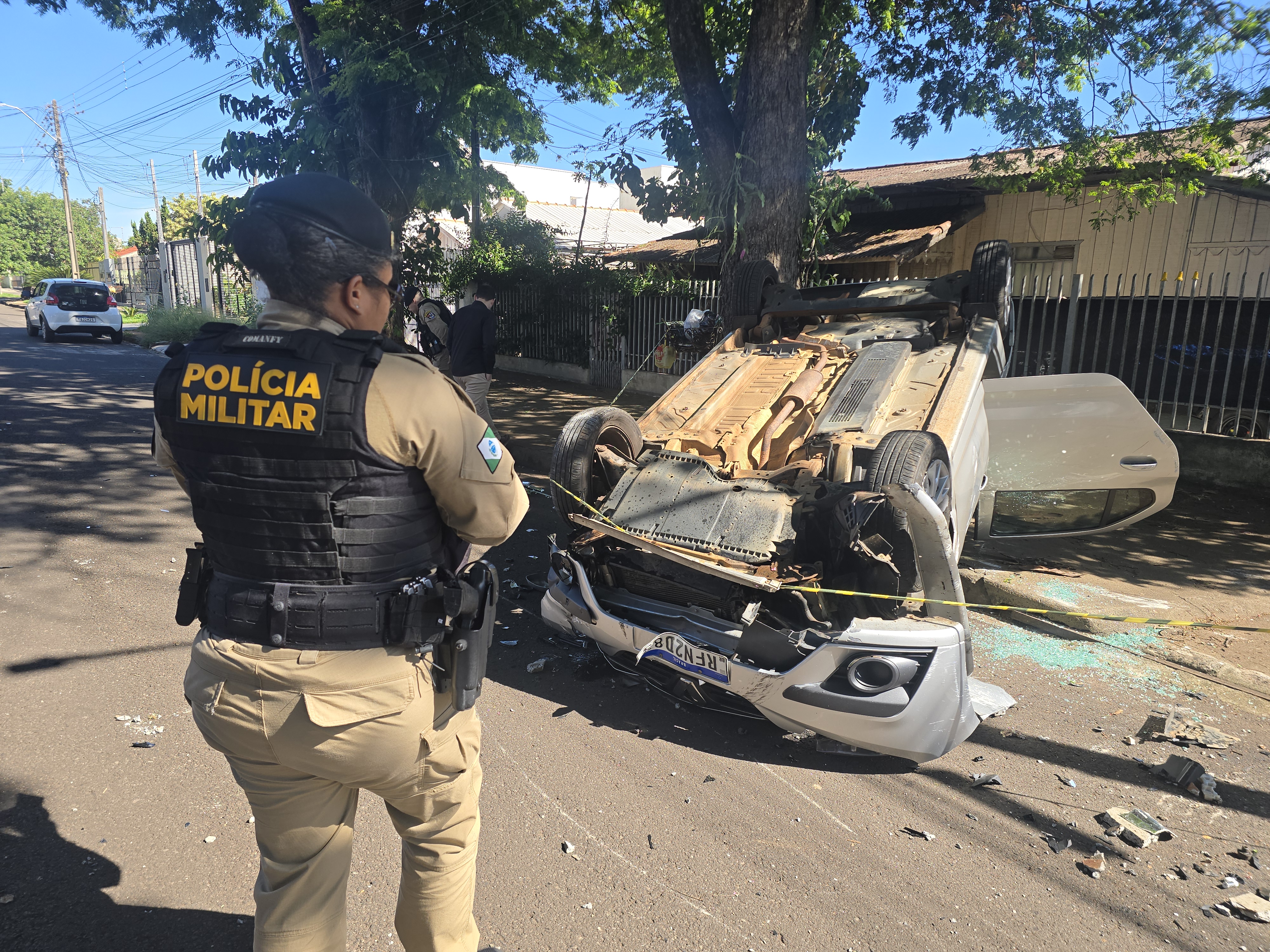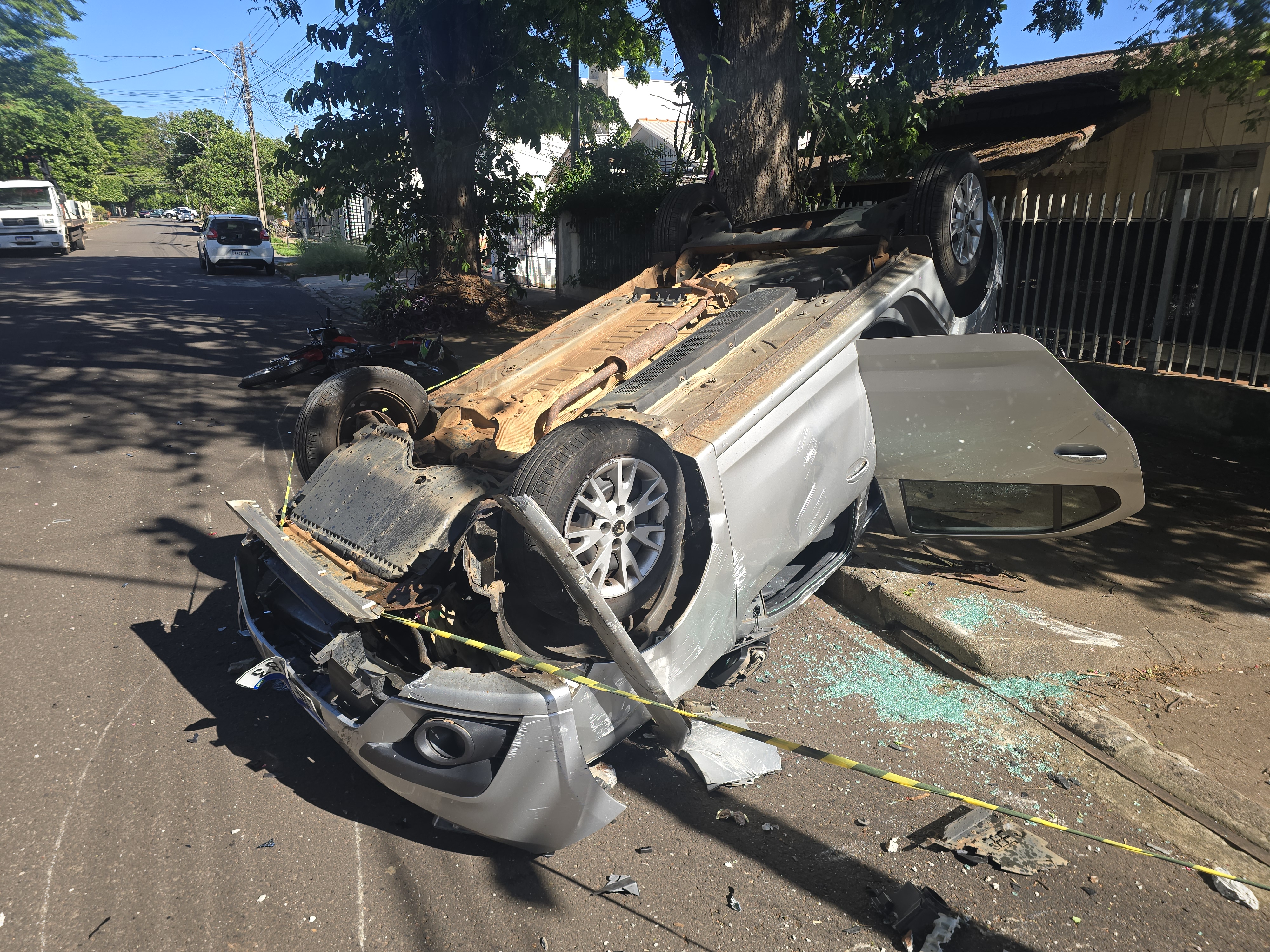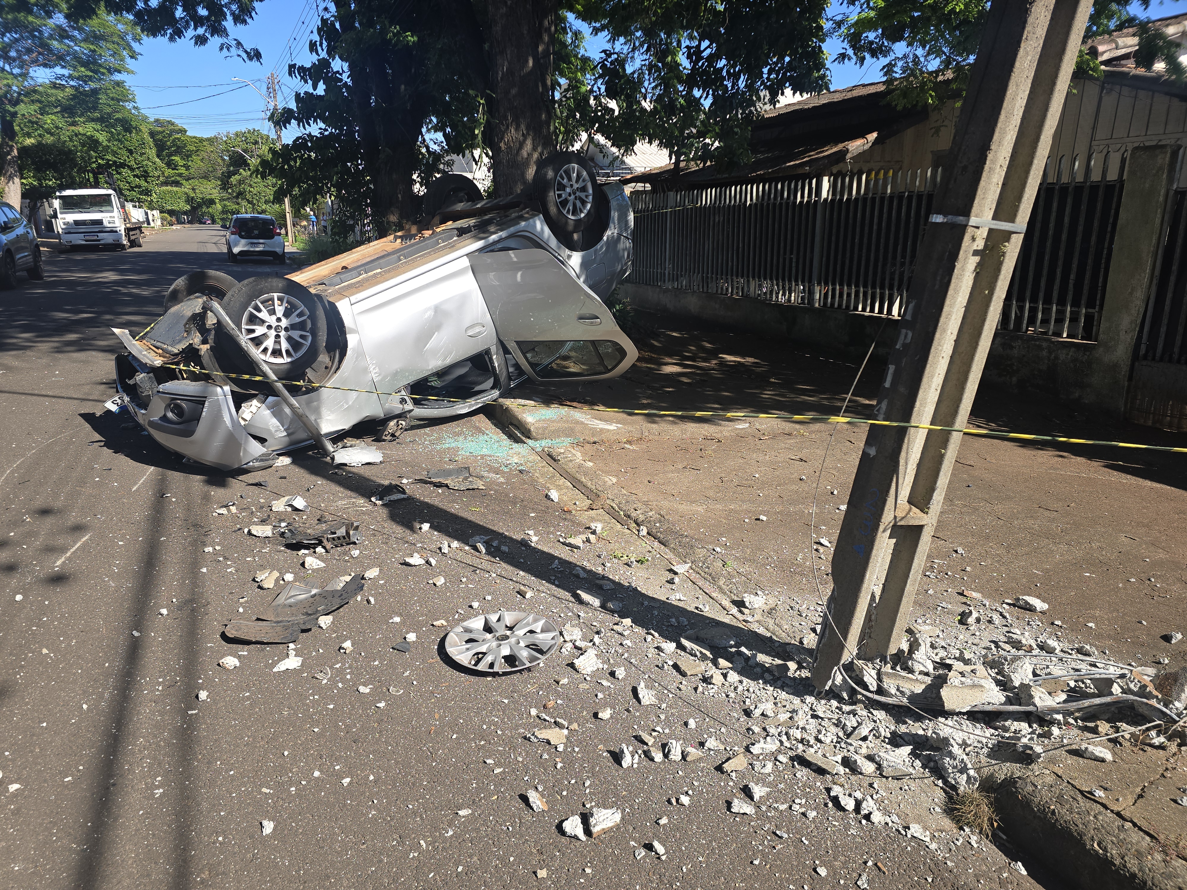 O impacto foi tão forte que o motociclista foi arremessado contra a calçada, e em seguida o carro colidiu contra um poste e capotou. O piloto da moto precisou de atendimento do Samu. O motorista do automóvel recusou atendimento. A Polícia Militar lavrou um boletim de acidente de trânsito.
