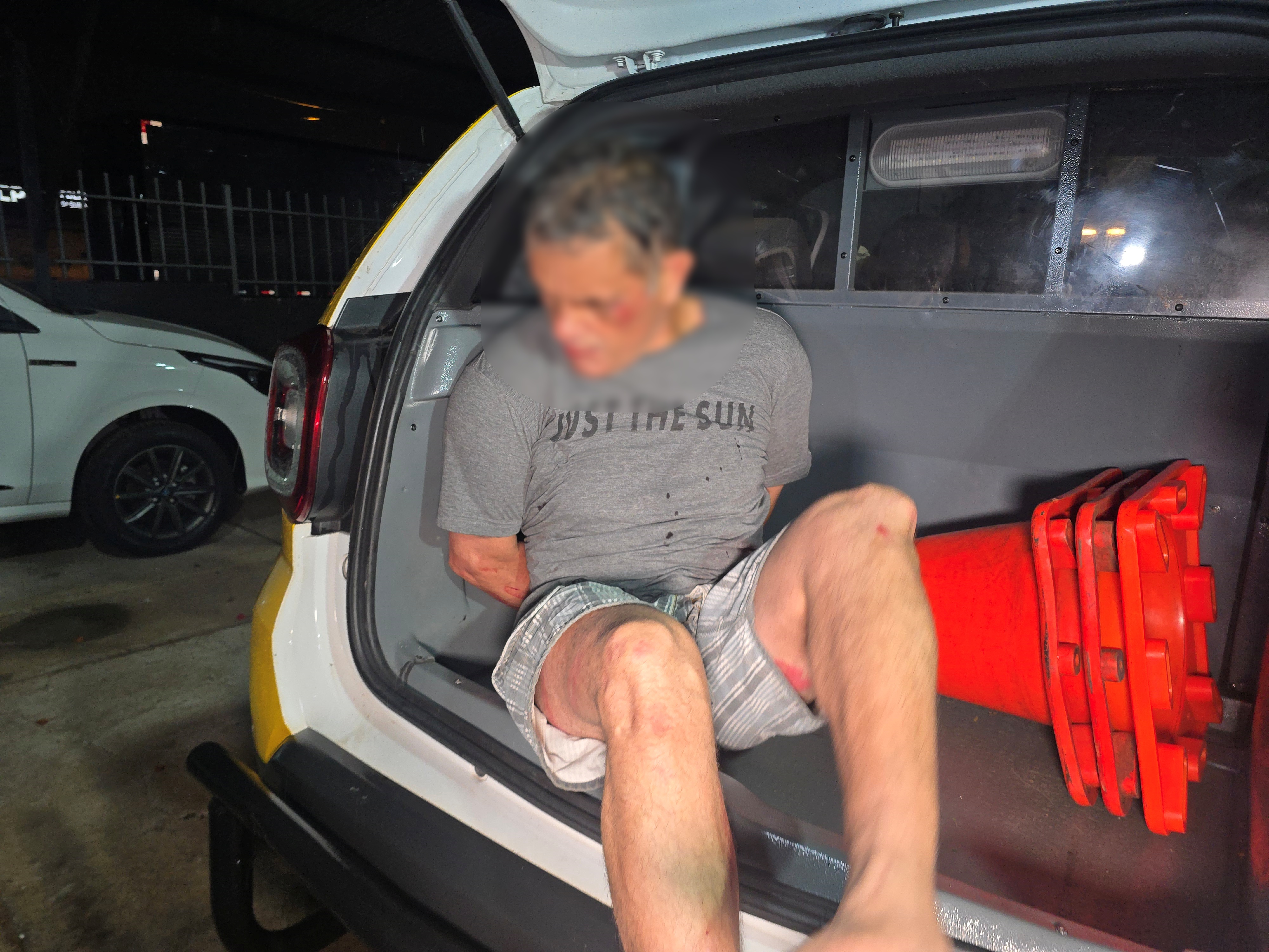 Chegando no local, o pai da adolescente pegou o suspeito ainda pelado. Os familiares revoltados com os relatos da adolescente deram uma surra no homem. A Polícia Militar ao chegar no endereço algemou o homem e o encaminhou ao plantão da Polícia Civil onde foi autuado em flagrante.