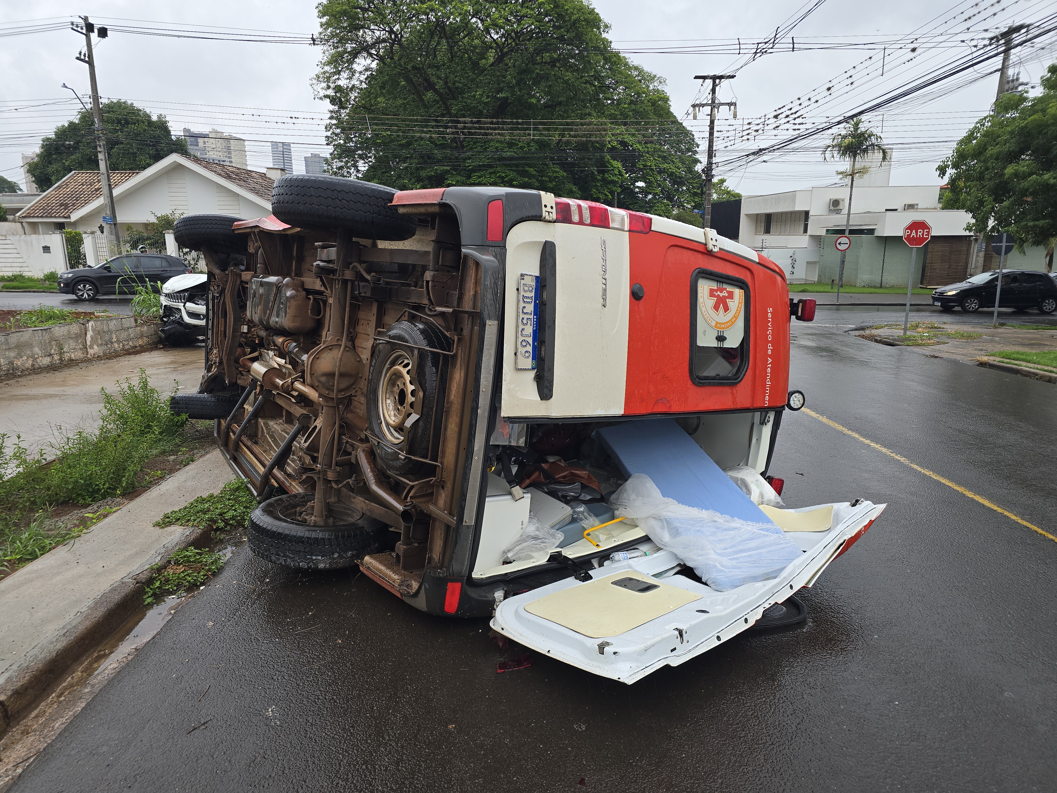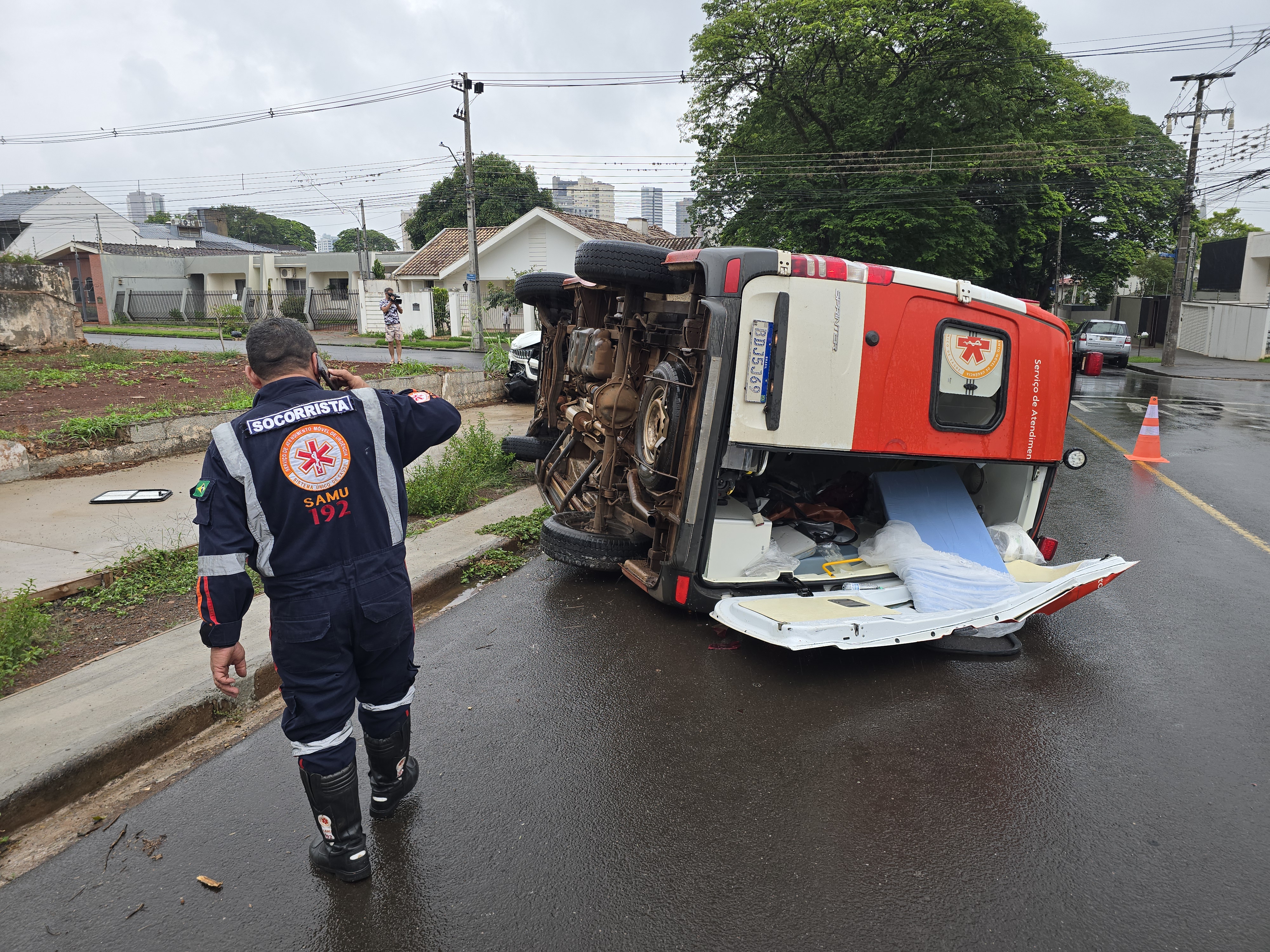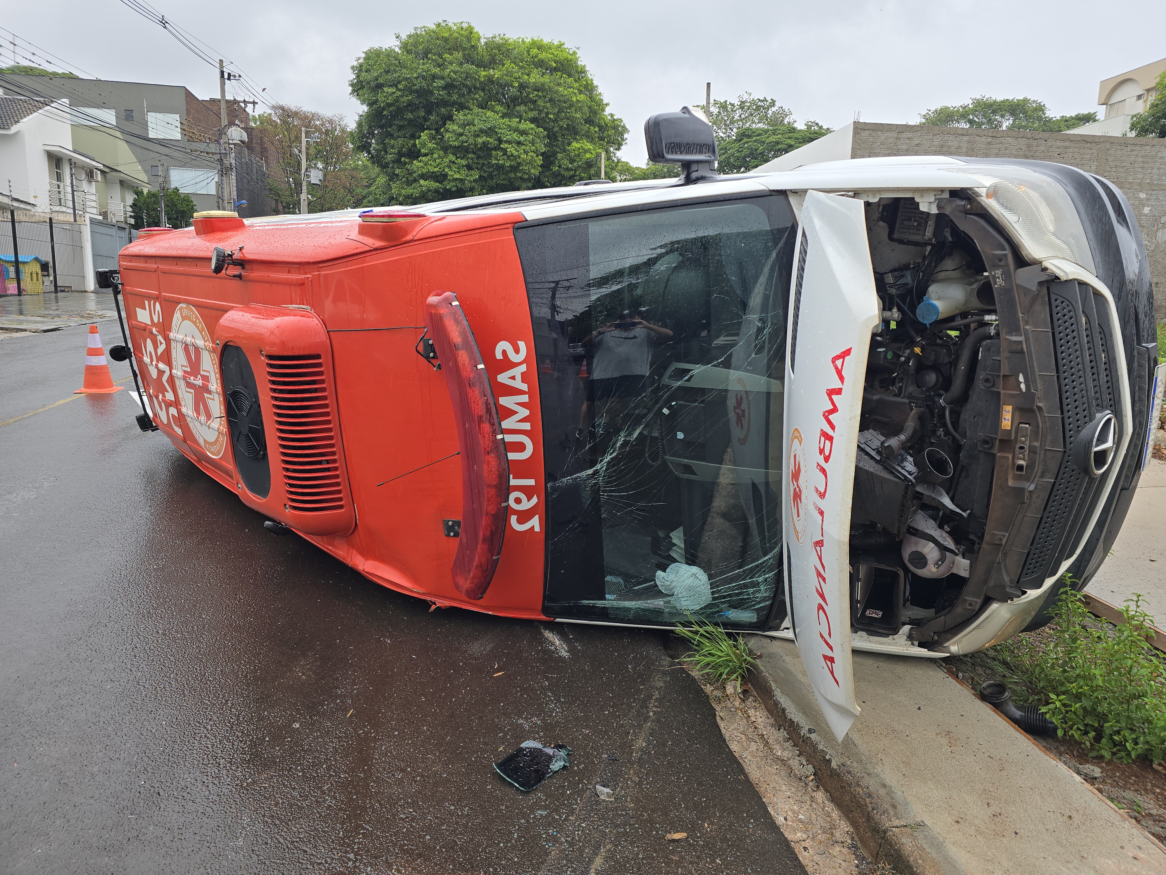 Após a colisão, a ambulância do Samu tombou. O condutor e socorrista, uma enfermeira e o médico intervencionista recusaram atendimento. Já no automóvel havia uma gestante que precisou ser avaliada e socorrida por uma equipe do Samu de Maringá.