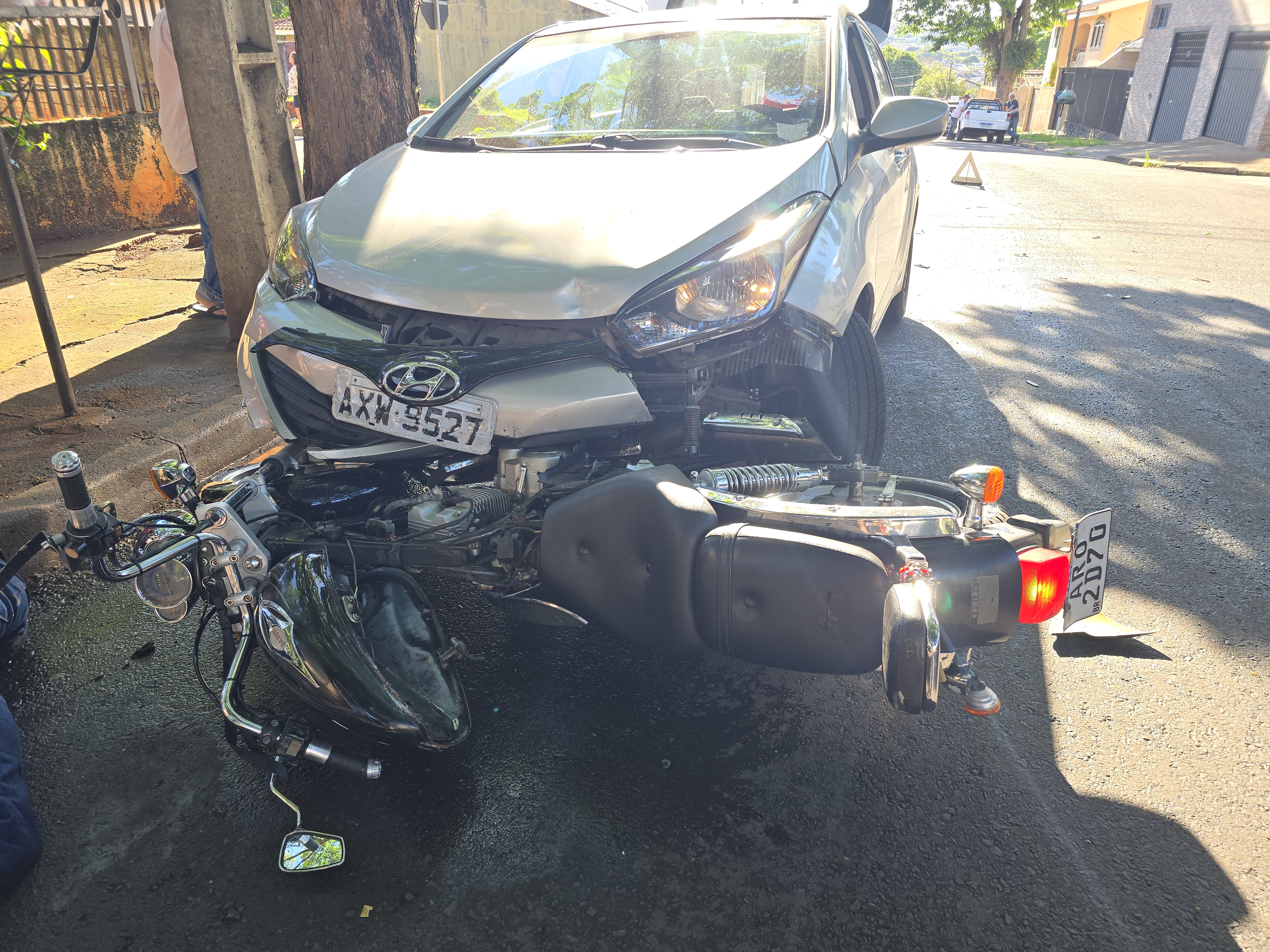 O acidente aconteceu na tarde de segunda-feira, 24, no cruzamento da Rua Senador Accioly Filho com João Furlan, na Vila Santa Izabel, em Maringá. Um jovem pilotando uma motocicleta Dayun 150cc invadiu a preferencial de um automóvel Hyundai HB20.