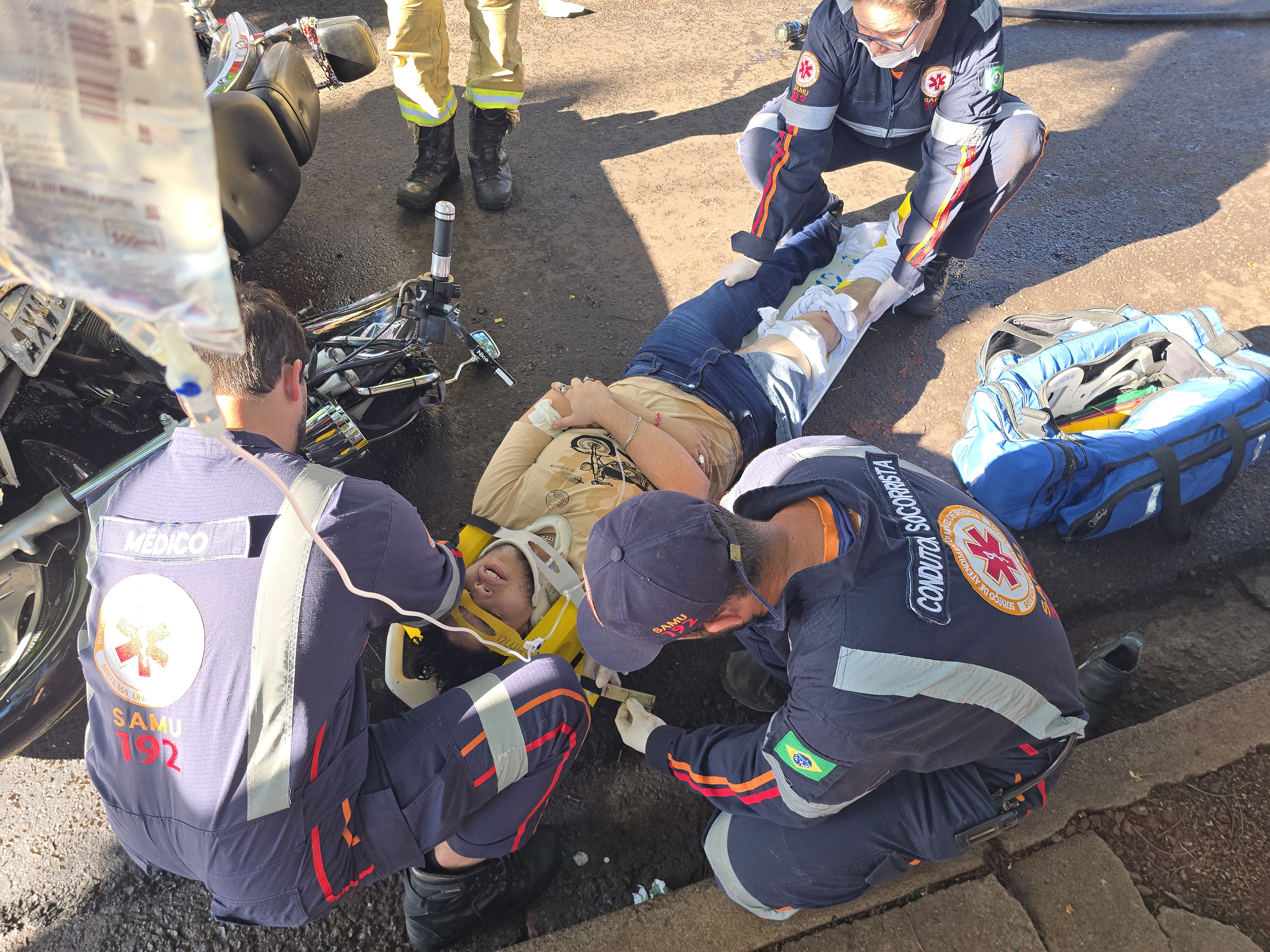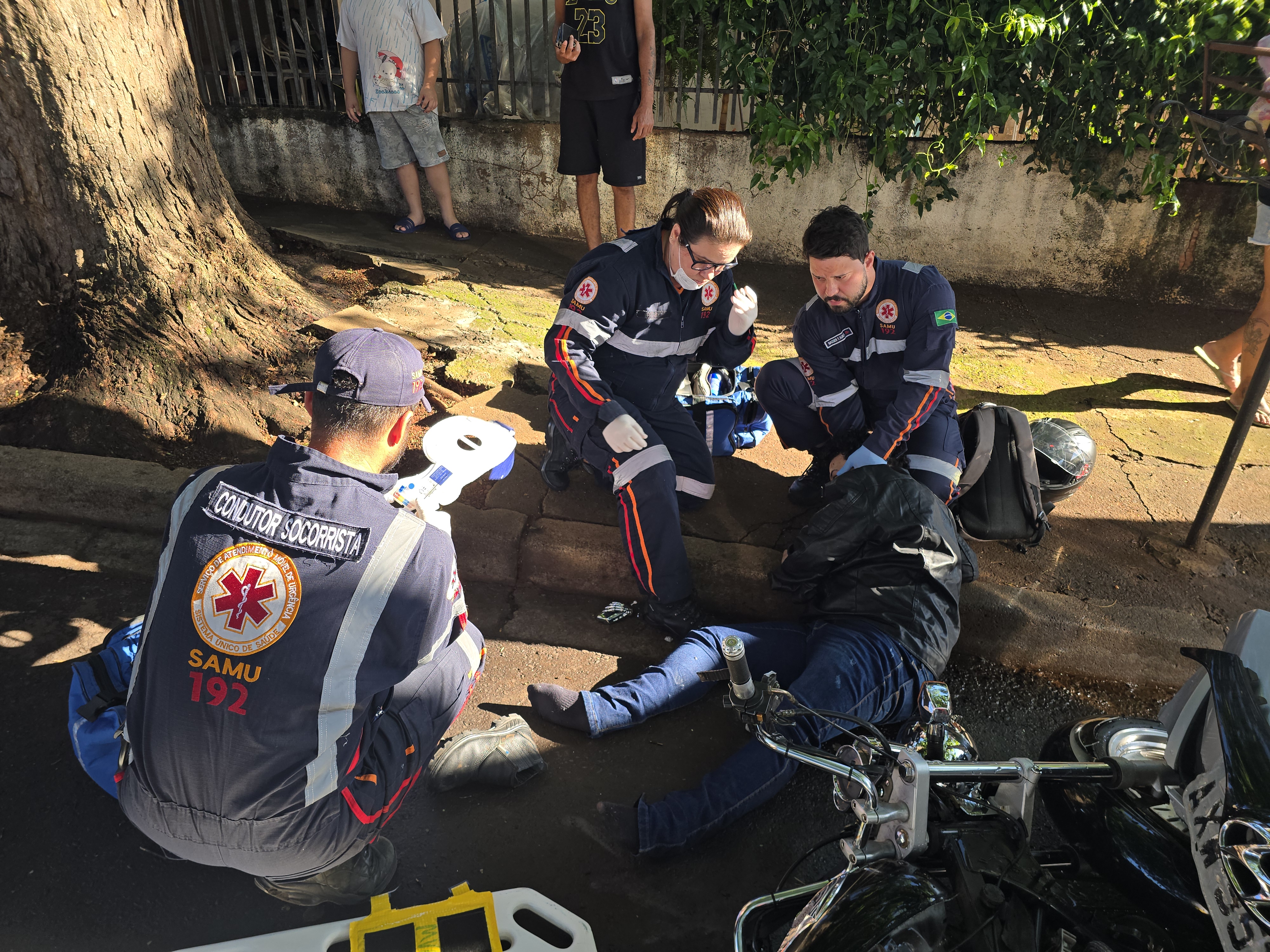 A equipe do médico Nasser Auada deslocou até o bairro onde prestou os atendimentos ao motociclista. A vítima que gritava de muita dor foi medicada e encaminhada ao pronto socorro do Hospital Santa Casa. O Corpo de Bombeiros foi acionado para sanar vazamento de combustível da moto.