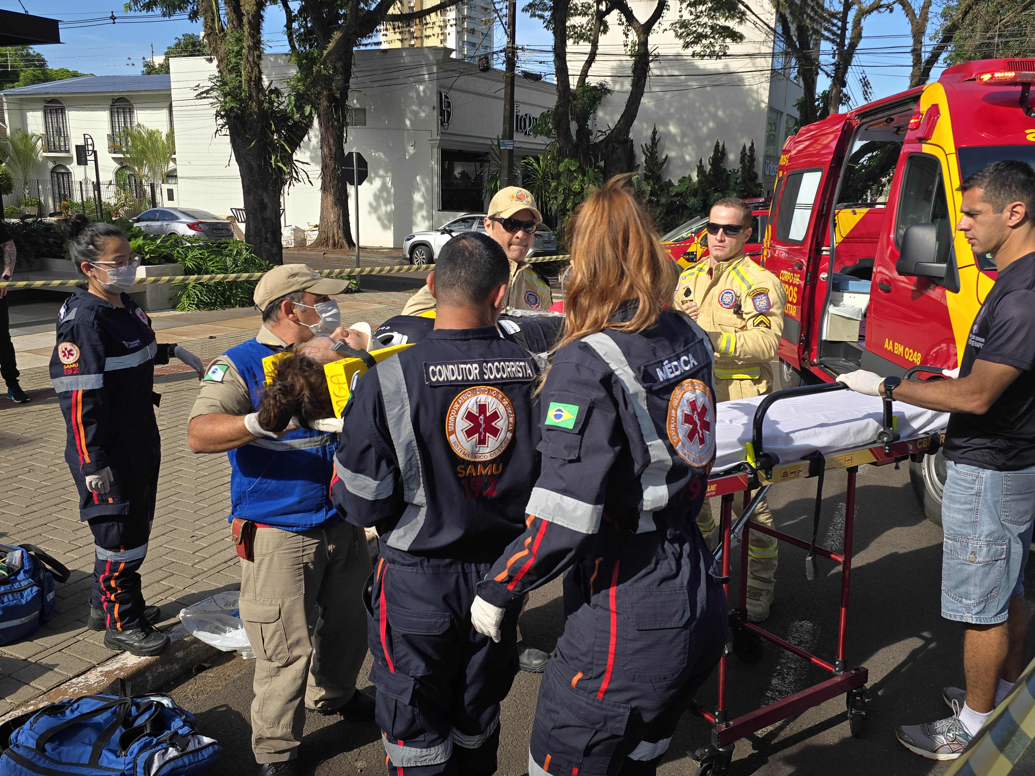 A motociclista sofreu uma fratura exposta muito grave em um dos pés. Equipes do Siate e Samu rapidamente deslocaram ao local. Como era muito grave a lesão, a vitima foi medicada enquanto os demais socorristas cuidavam da fratura.