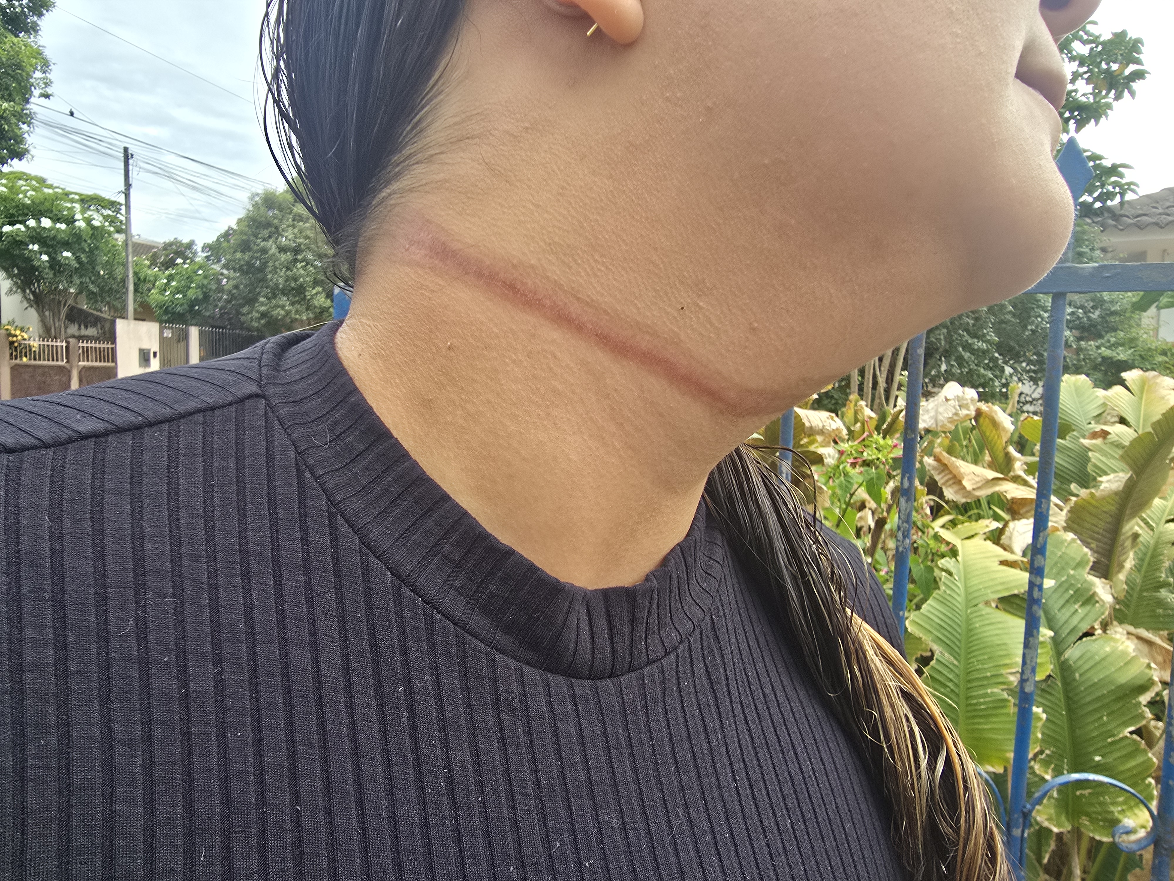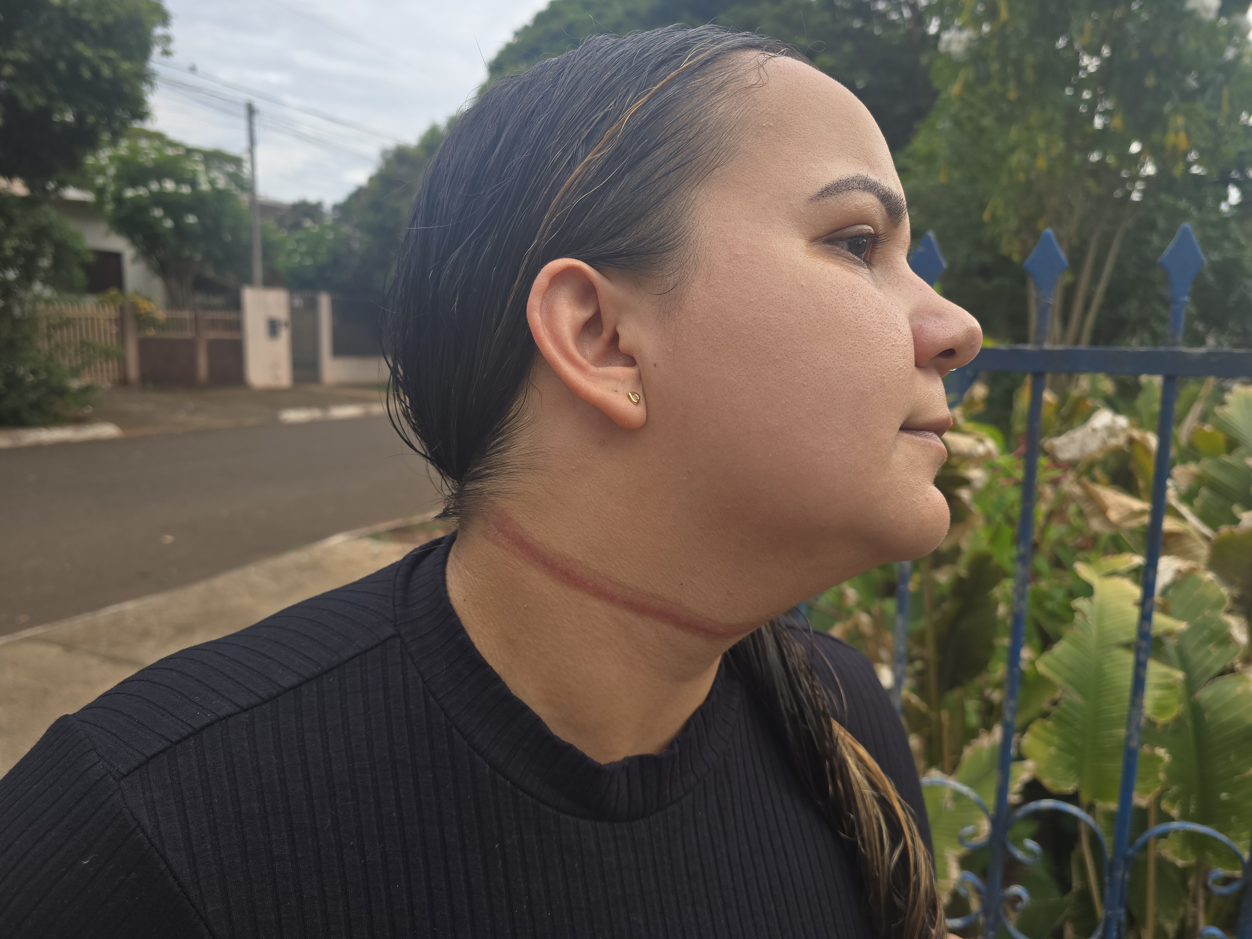 Geovana do Carmo Ferreira, de 27 anos, acionou na Justiça uma empresa de telefonia após ser atingida no pescoço por fios de fibra óptica. Foi no dia 23 de outubro quando Geovana pediu um motociclista de aplicativo para deslocar até seu trabalho.