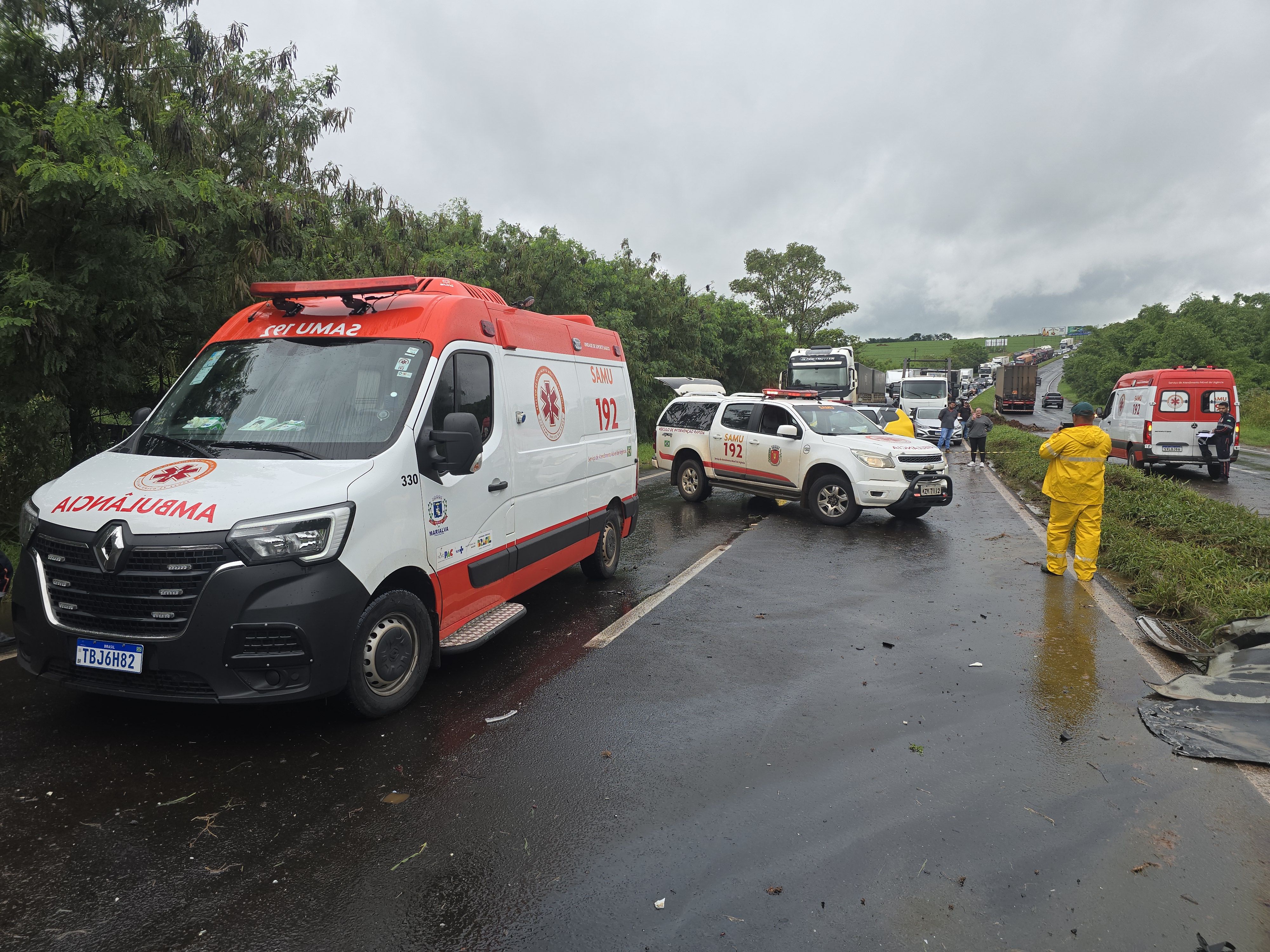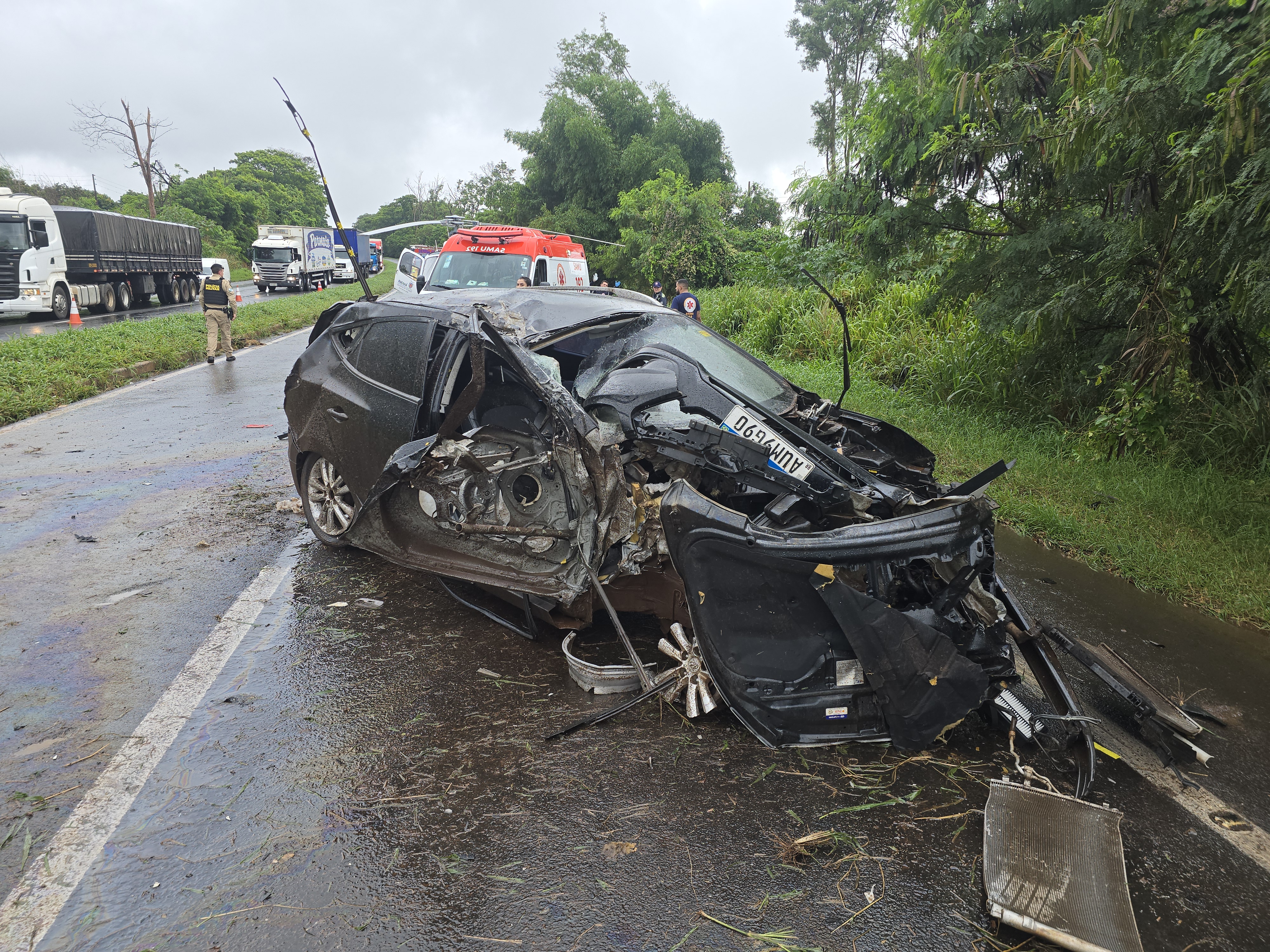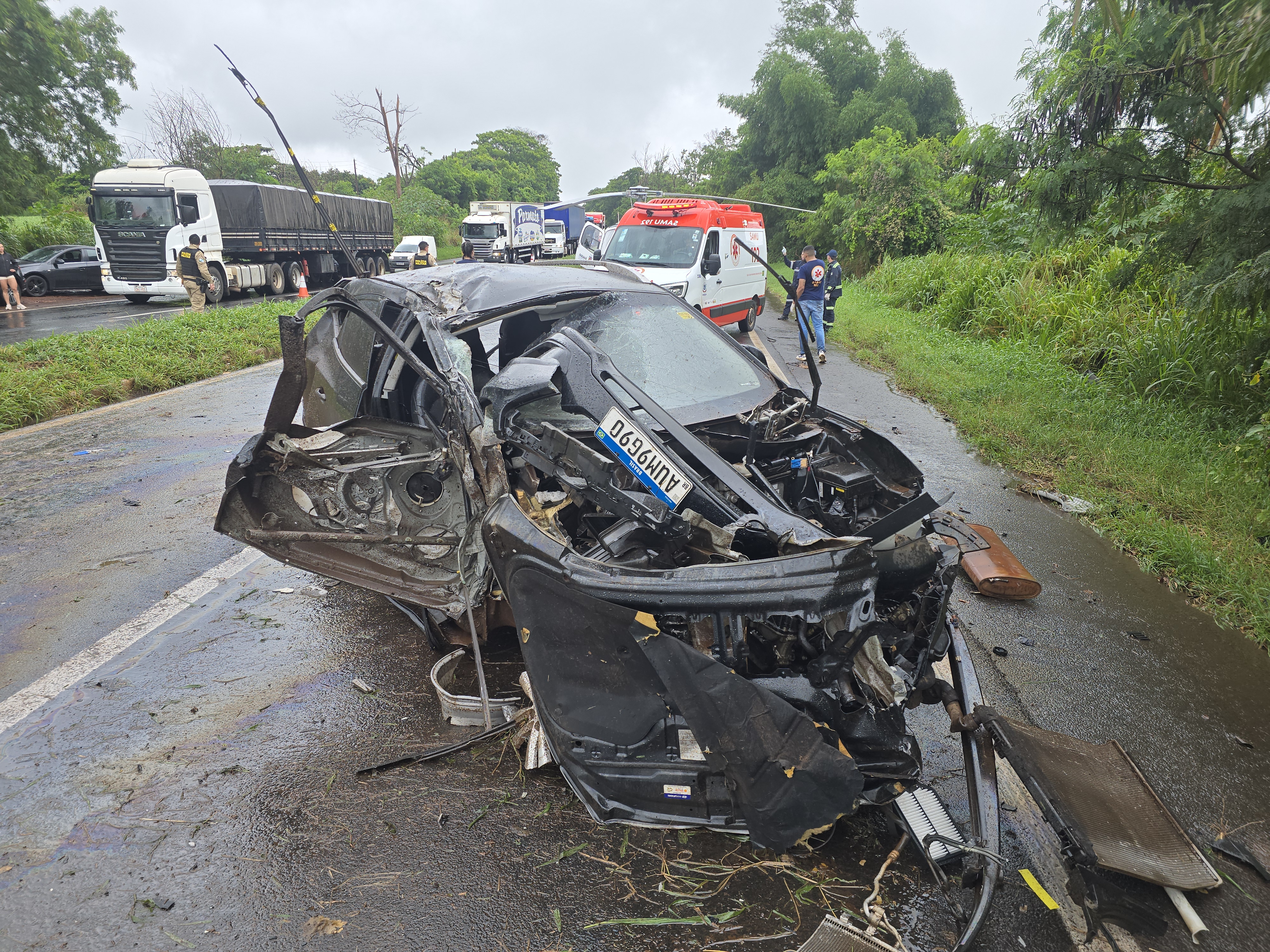 O condutor da carreta também sofreu ferimentos e foi socorrido por uma equipe do Samu. A Polícia Rodoviária Estadual disse que a alta velocidade do carro e a chuva foi predominante para o veículo aquaplanar na pista.
