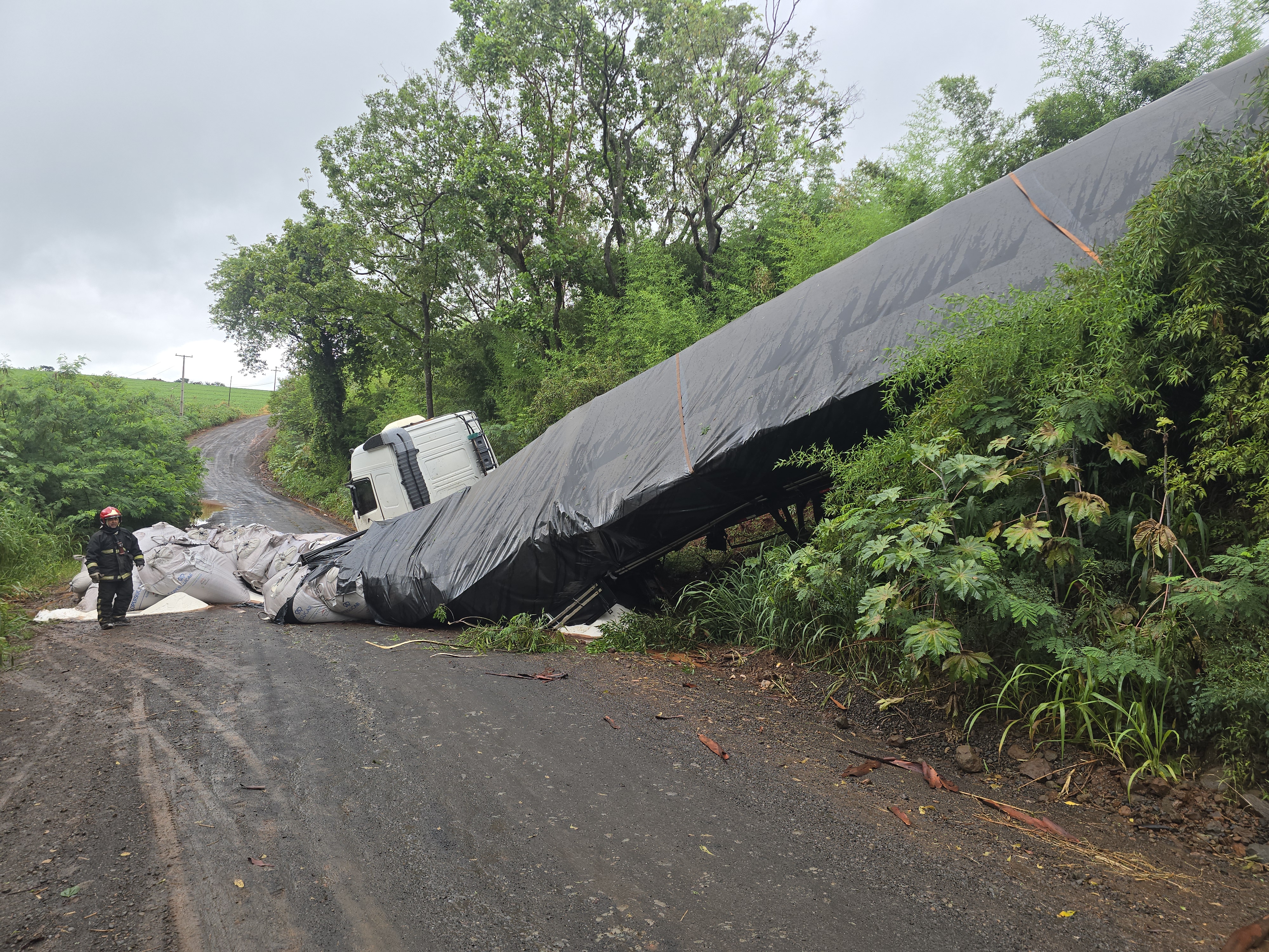 A carga de açúcar ficou espalhada por uma estrada secundária. O motorista do carro identificado por César Biazi, de 46 anos, sofreu trauma de crânio e tórax, e ainda ferimentos e escoriações na cabeça e rosto. Dois socorristas do Samu de Maringá que estavam indo para um treinamento prestaram os socorros.