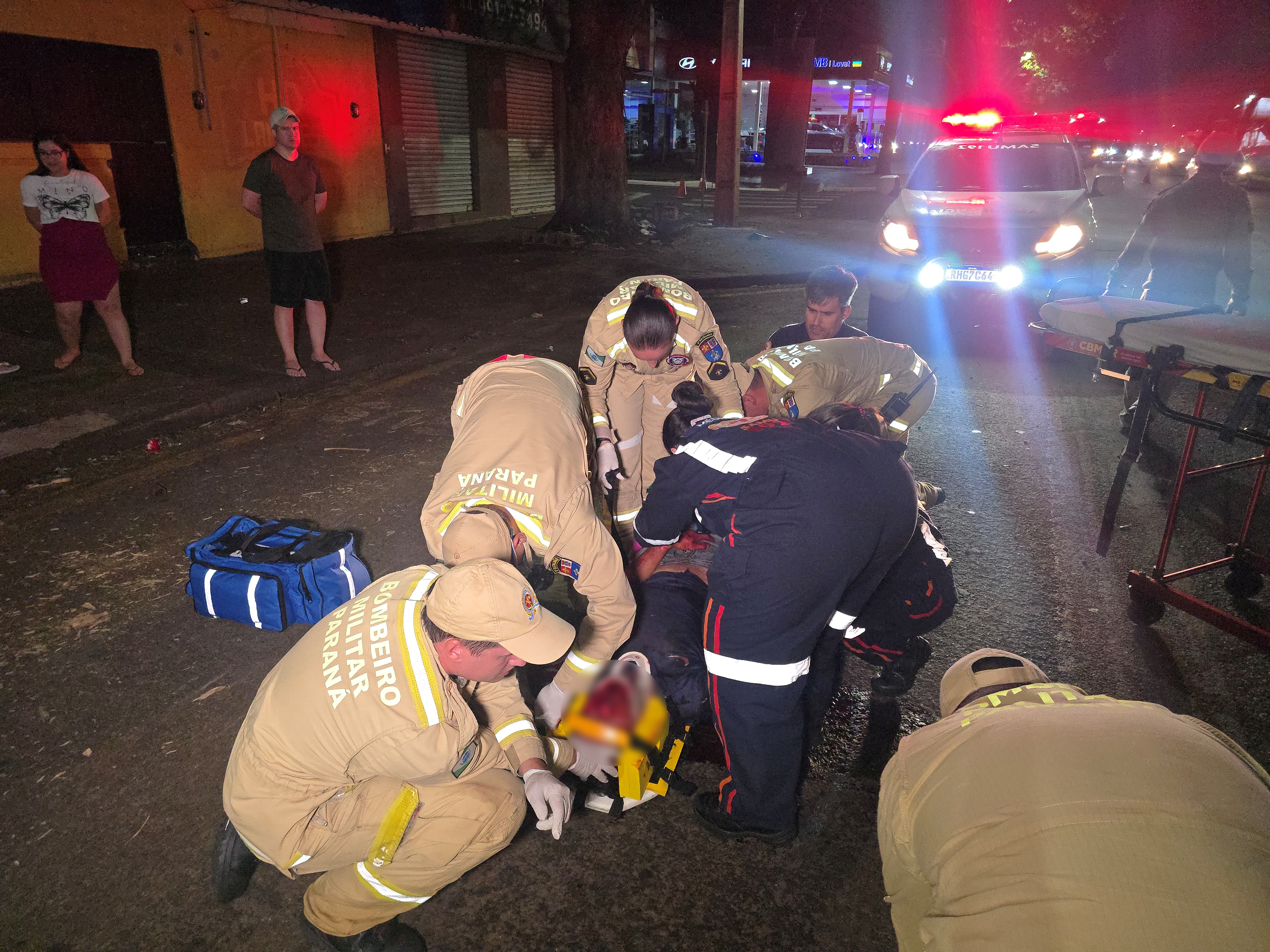 Um gravíssimo acidente aconteceu na noite de domingo, 21, na Avenida Colombo, na zona 7, em Maringá. Um motociclista esbarrou no retrovisor de uma caminhonete, perdeu o equilíbrio e, bateu no meio-fio. No momento da queda, ele estava com o capacete aberto e bateu fortemente o rosto no asfalto.
