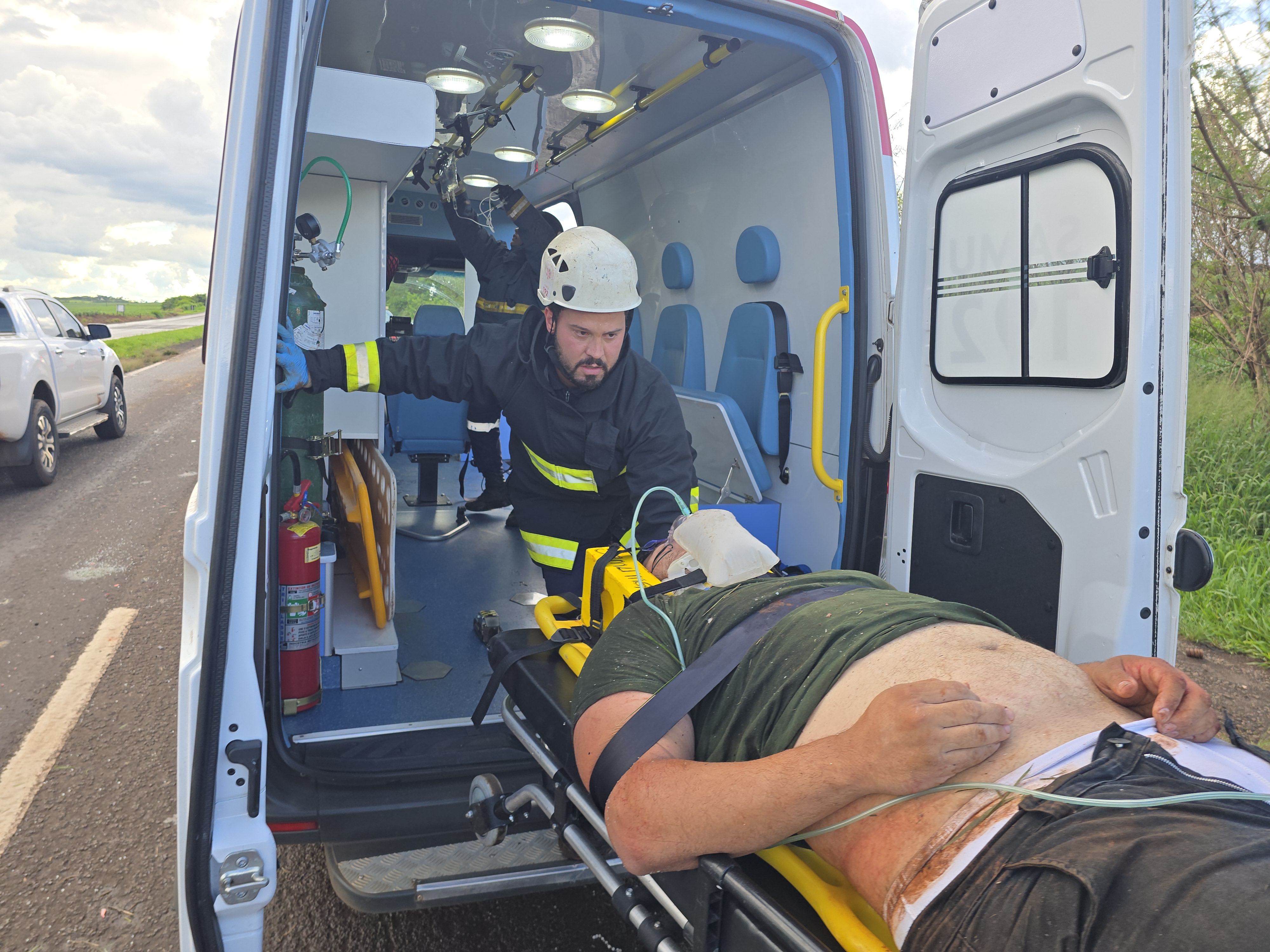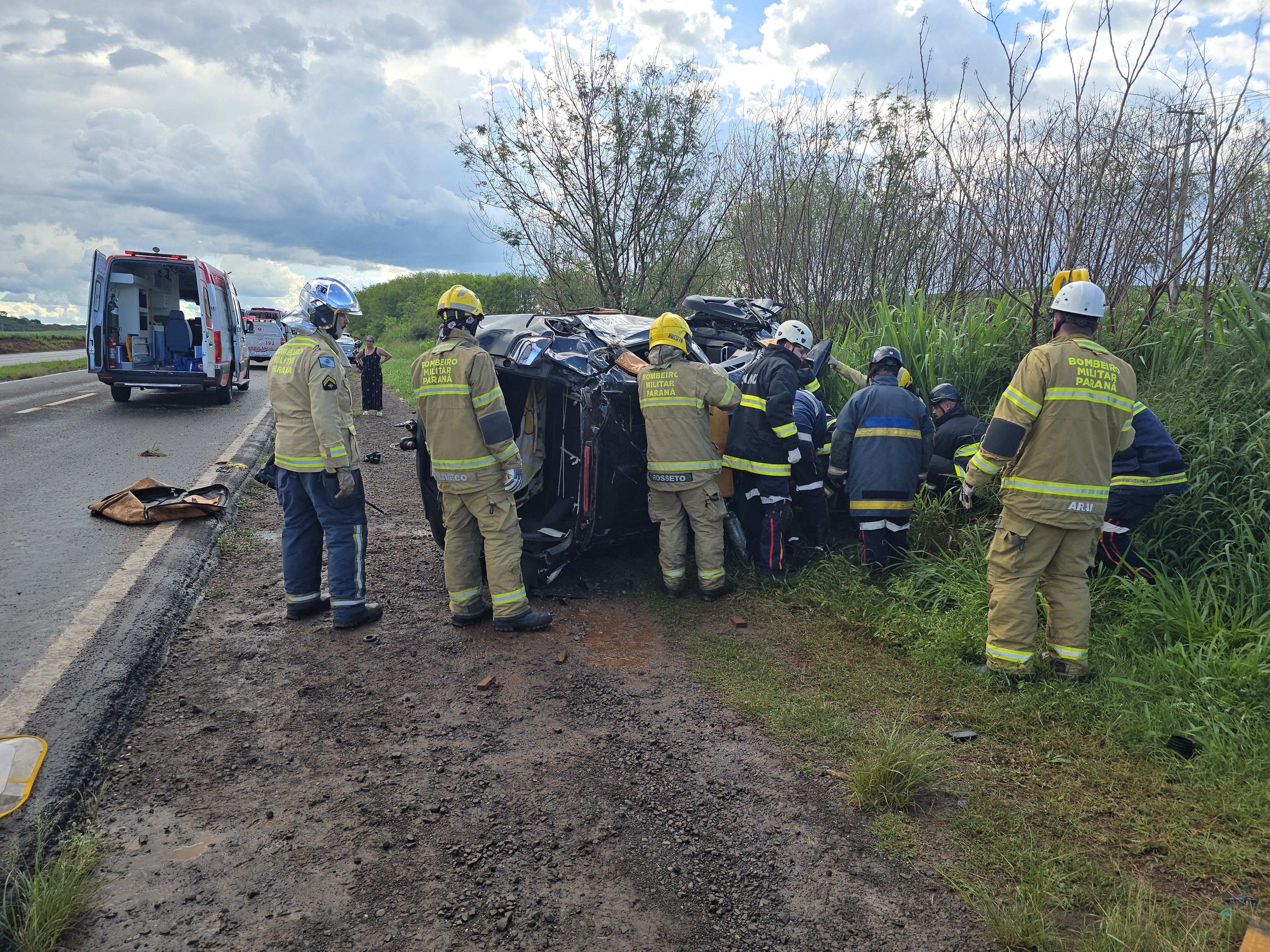 A equipe do Corpo de Bombeiros de Maringá precisou cortar o teto do carro e demais partes da lataria para retirar o motorista e a mulher. O médico do Samu intubou o condutor que apresentava trauma de crânio grave. A passageira sofreu ferimentos moderados.