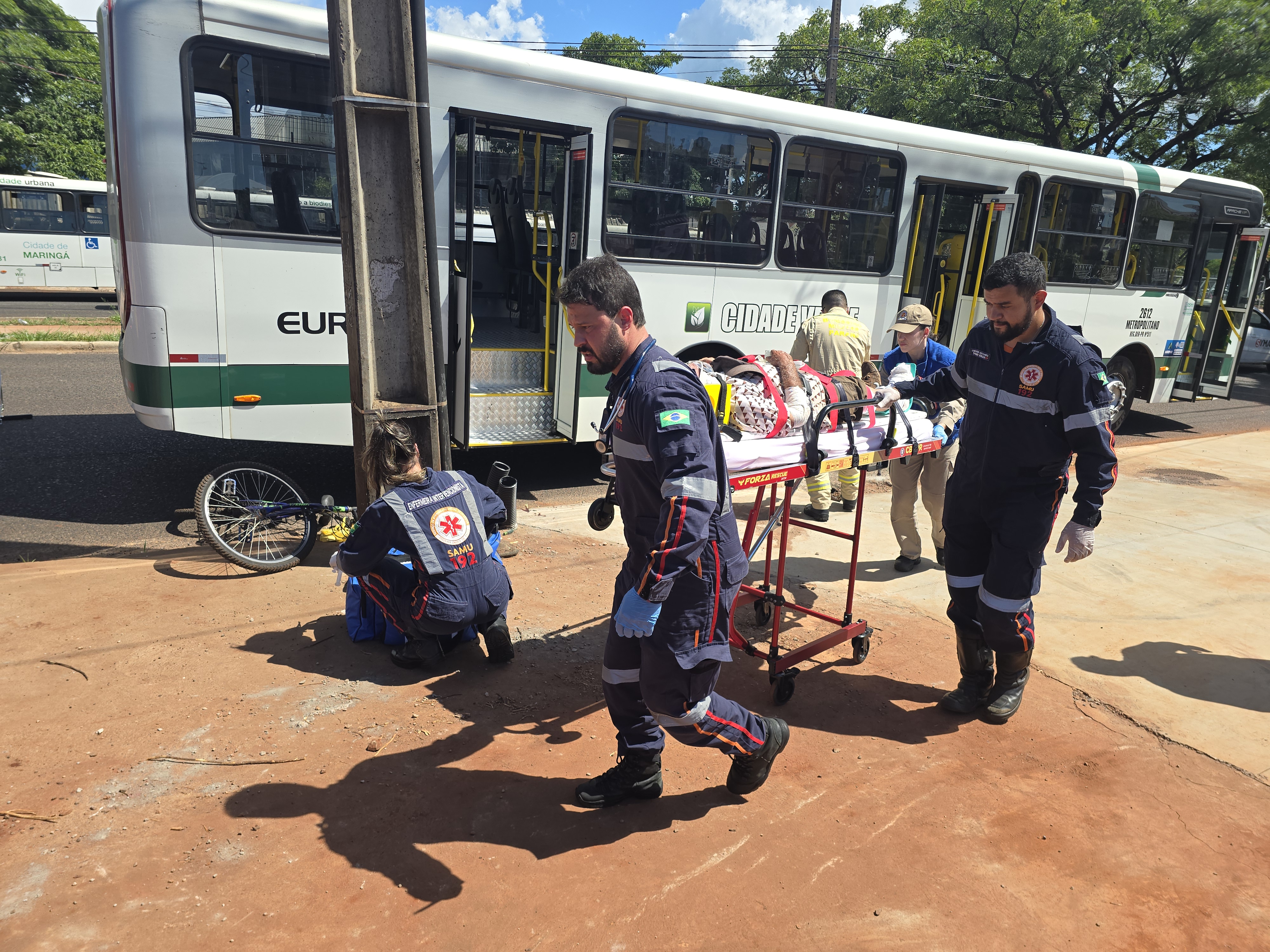 O acidente aconteceu na tarde de segunda-feira, 29, no cruzamento das Avenidas Horácio Raccanello Filho com Tuiuti, em Maringá. Um ciclista que tentava atravessar a Tuiuti foi atingido por um ônibus da empresa Cidade Verde.