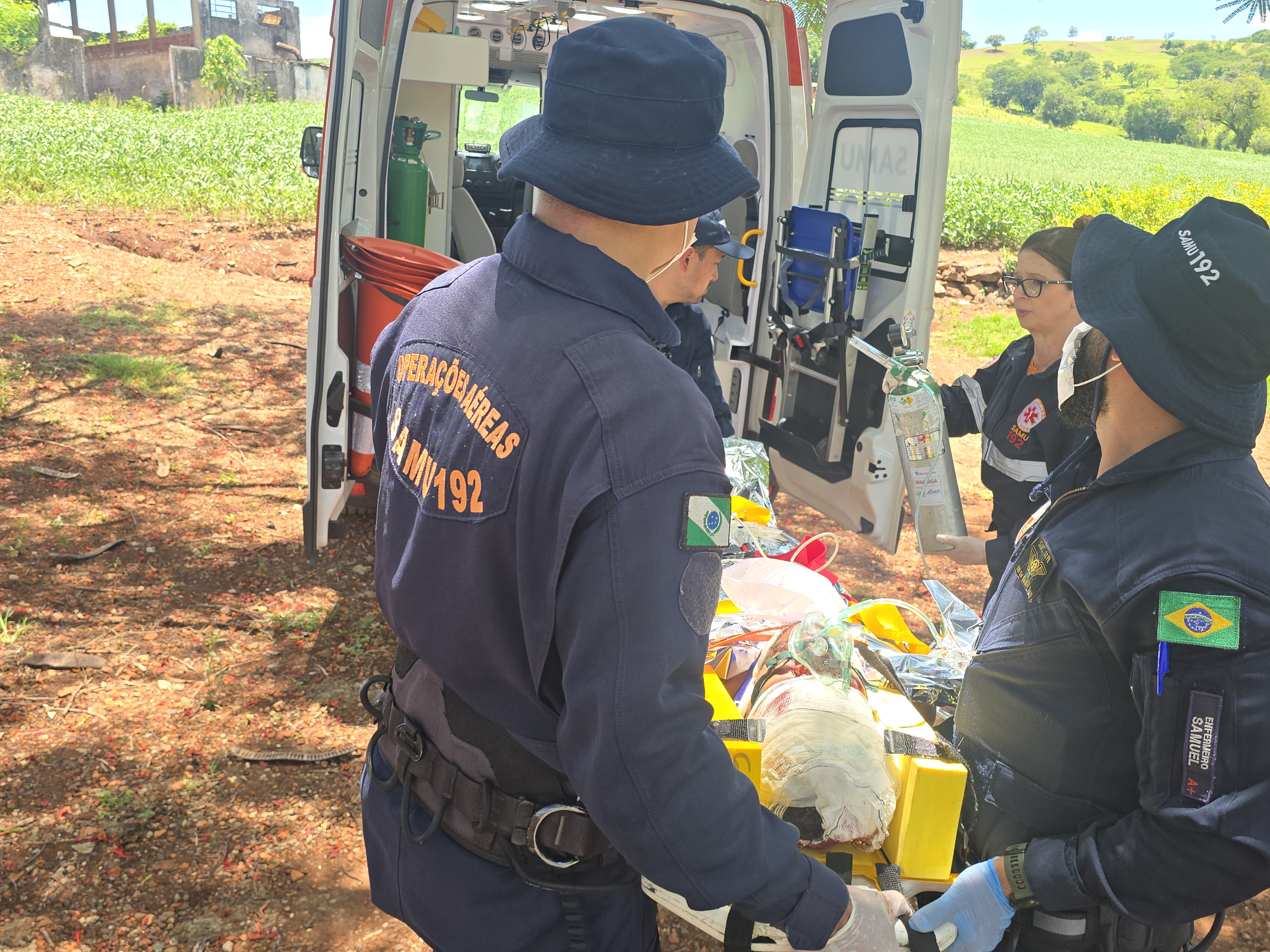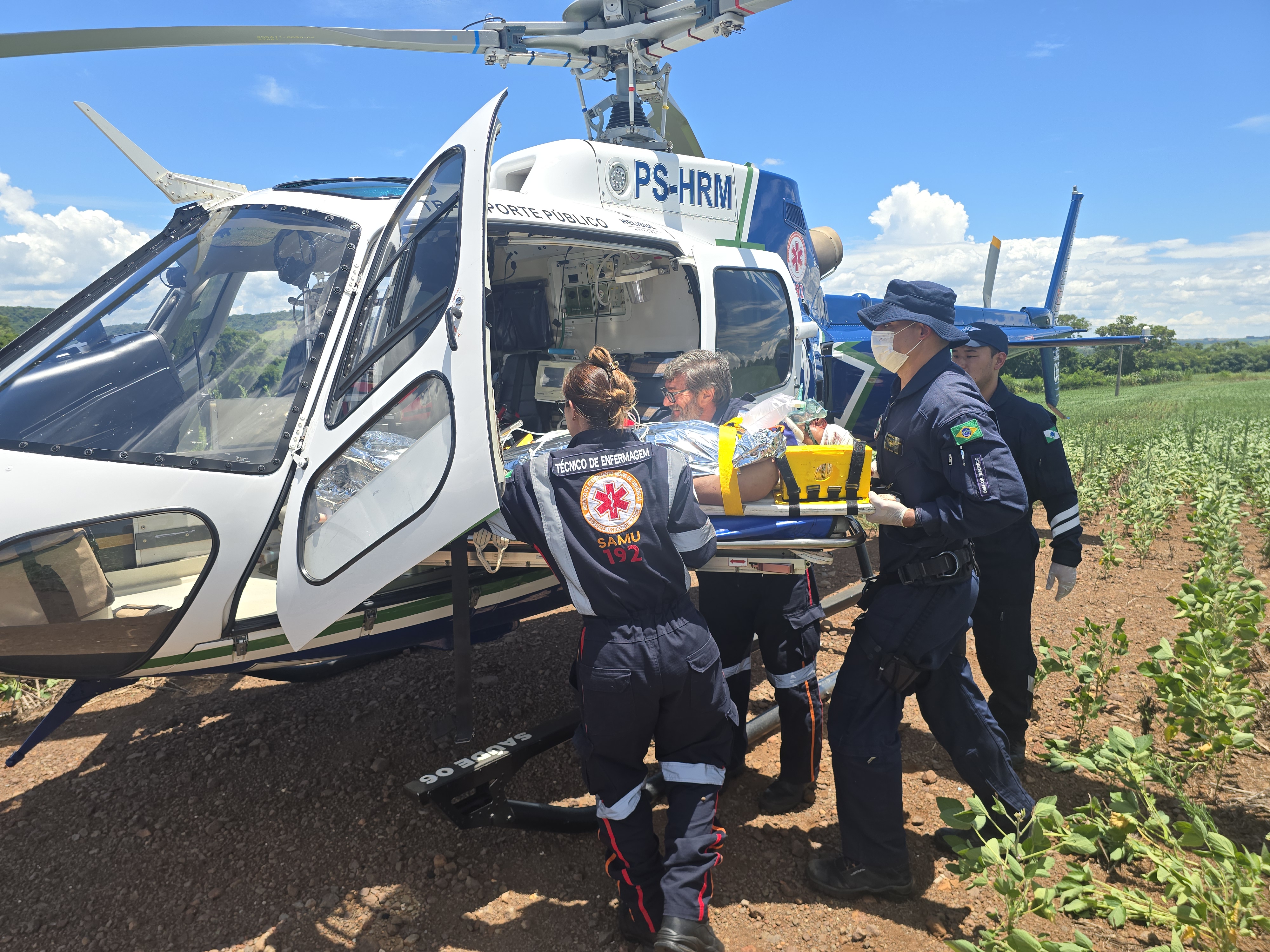 Uma equipe do Samu chegou no local por ambulância. O Resgate Aéreo do Samu pousou na propriedade rural para auxiliar no atendimento e transporte. A vítima sofreu afundamento de crânio e outras fraturas em face. André Marques foi encaminhado ao pronto socorro do Hospital Universitário.