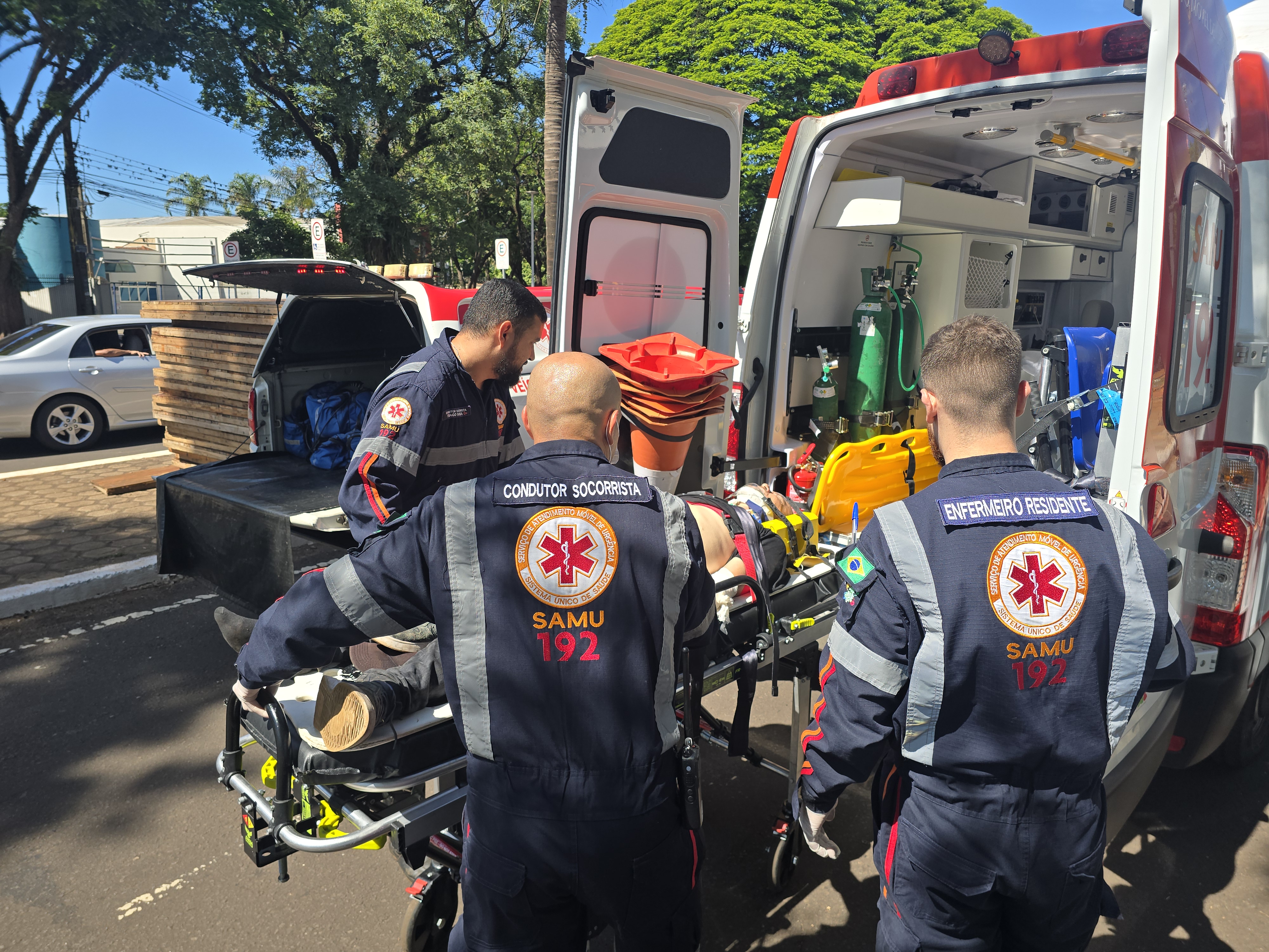 O trabalhador que presta serviço terceirizado não estaria utilizando os equipamentos de segurança exigidos para subir em escada. Com a queda, o homem sofreu trauma de crânio e tórax. Equipes do Samu deslocaram ao local e prestaram os atendimentos.