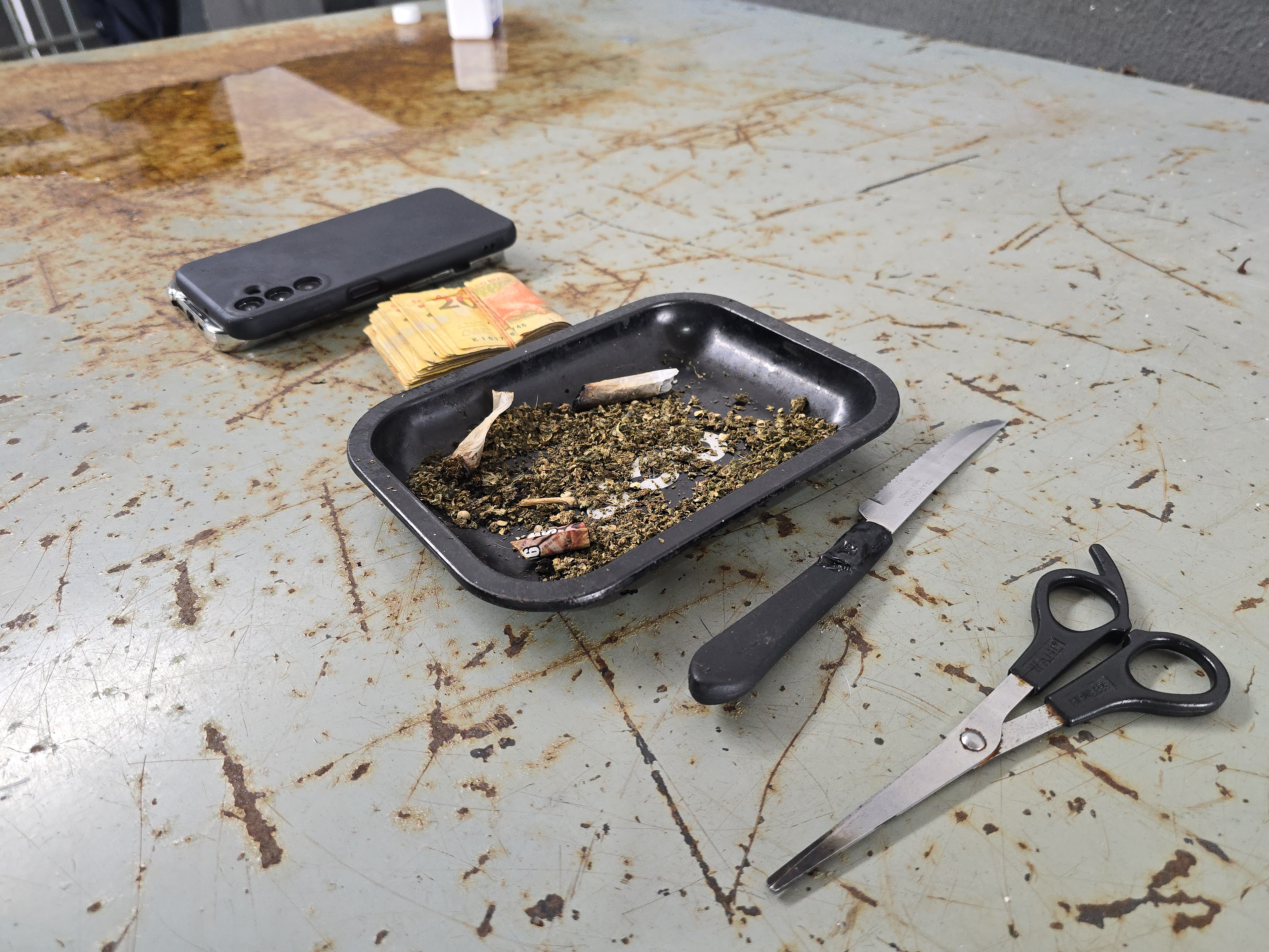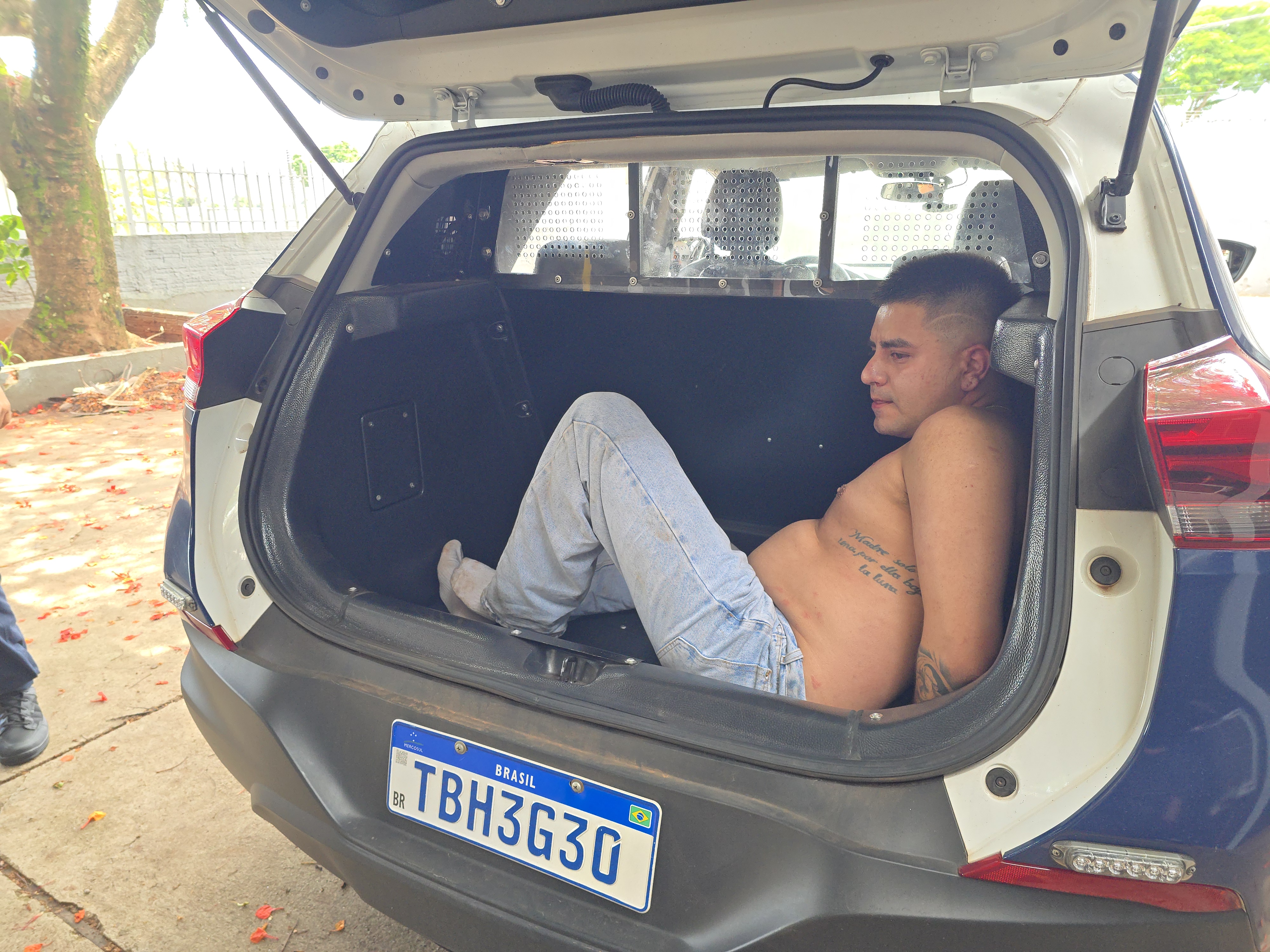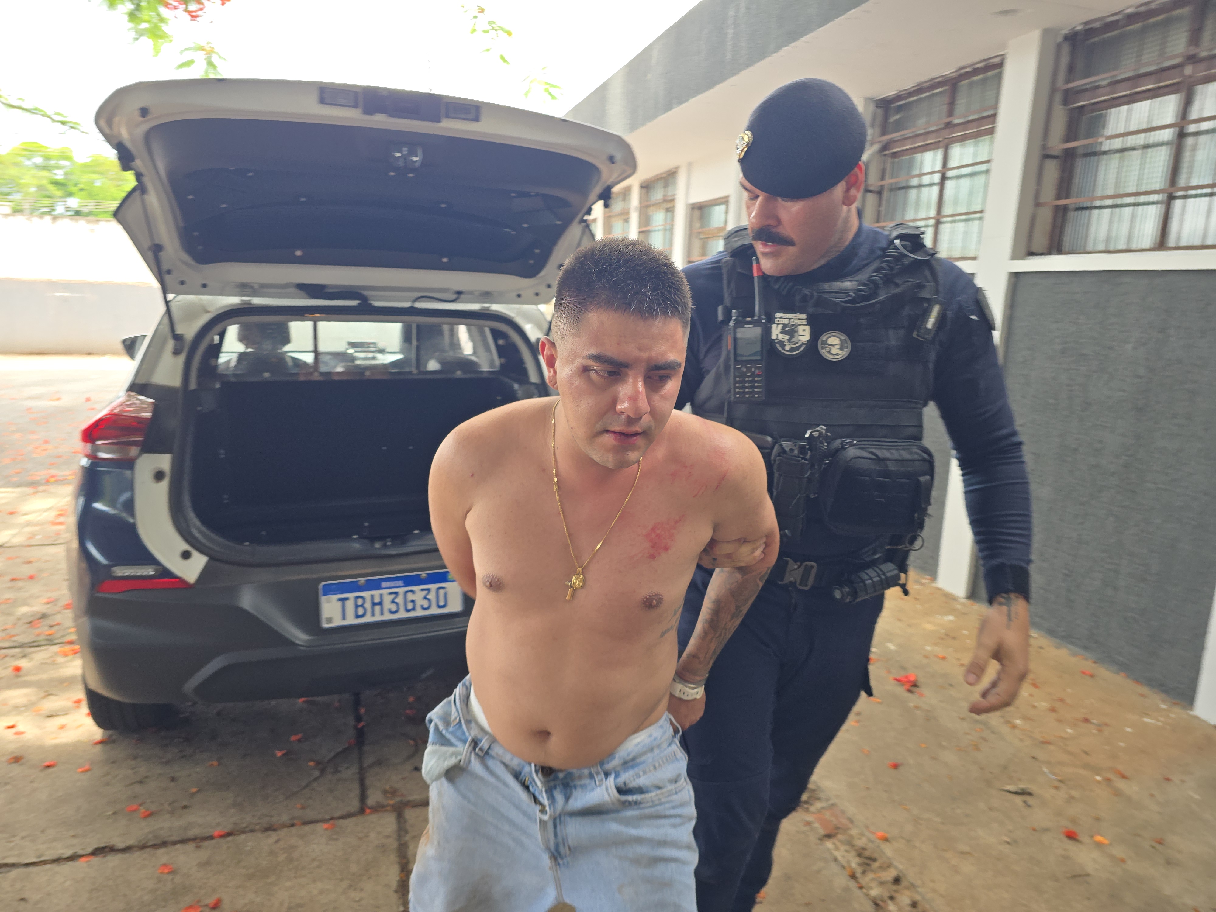 Gustavo Andres Gonzales foi localizado em sua casa. Ao perceber que seria detido, o mesmo pegou uma faca de serra e tentou atacar os agentes da GCM. O criminoso foi contido e algemado. Farelos de maconha foram apreendidos no imóvel.