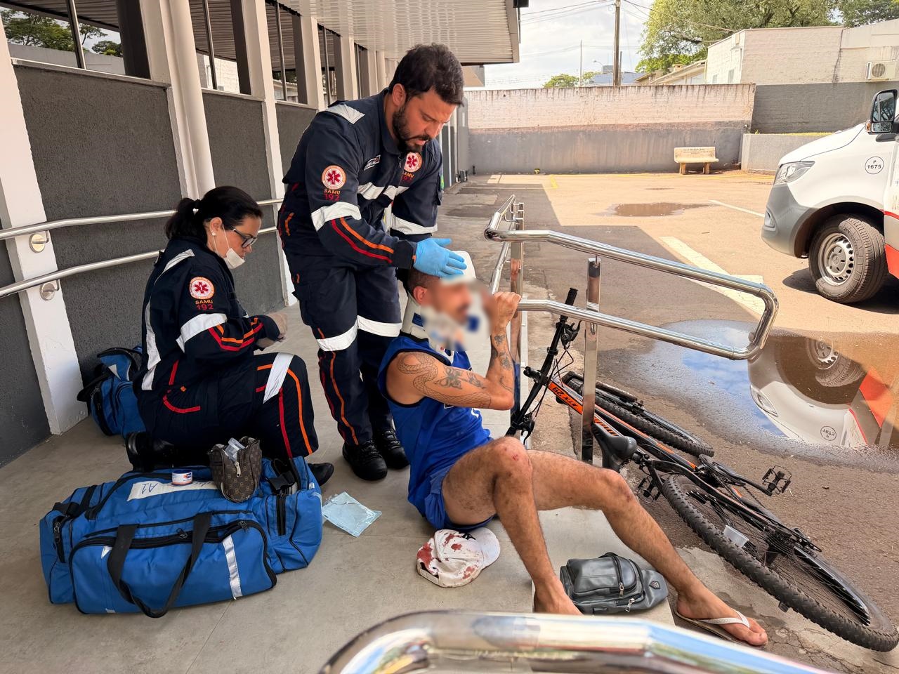 O médico do Samu e socorristas prestaram atendimento ao rapaz que foi encaminhado ao hospital Universitário apresentando ferimentos e um trauma de face. A Polícia Civil vai realizar diligências e imagens para identificar o autor do roubo.