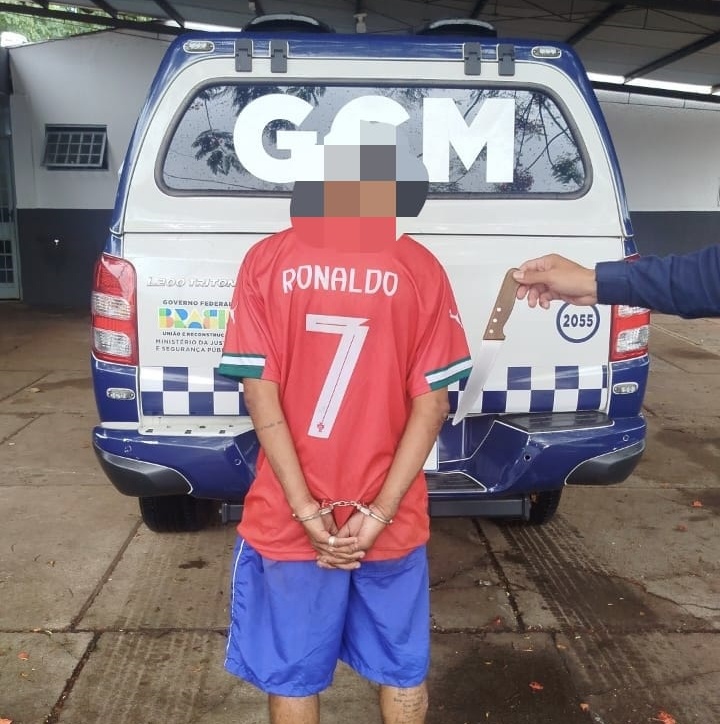 Diante do flagrante e do mandado de prisão, o suspeito foi algemado e conduzido ao plantão da Polícia Civil de Maringá. O detido relatou aos agentes da GCM que estava andando com faca para se proteger de ameaças que estaria recebendo.