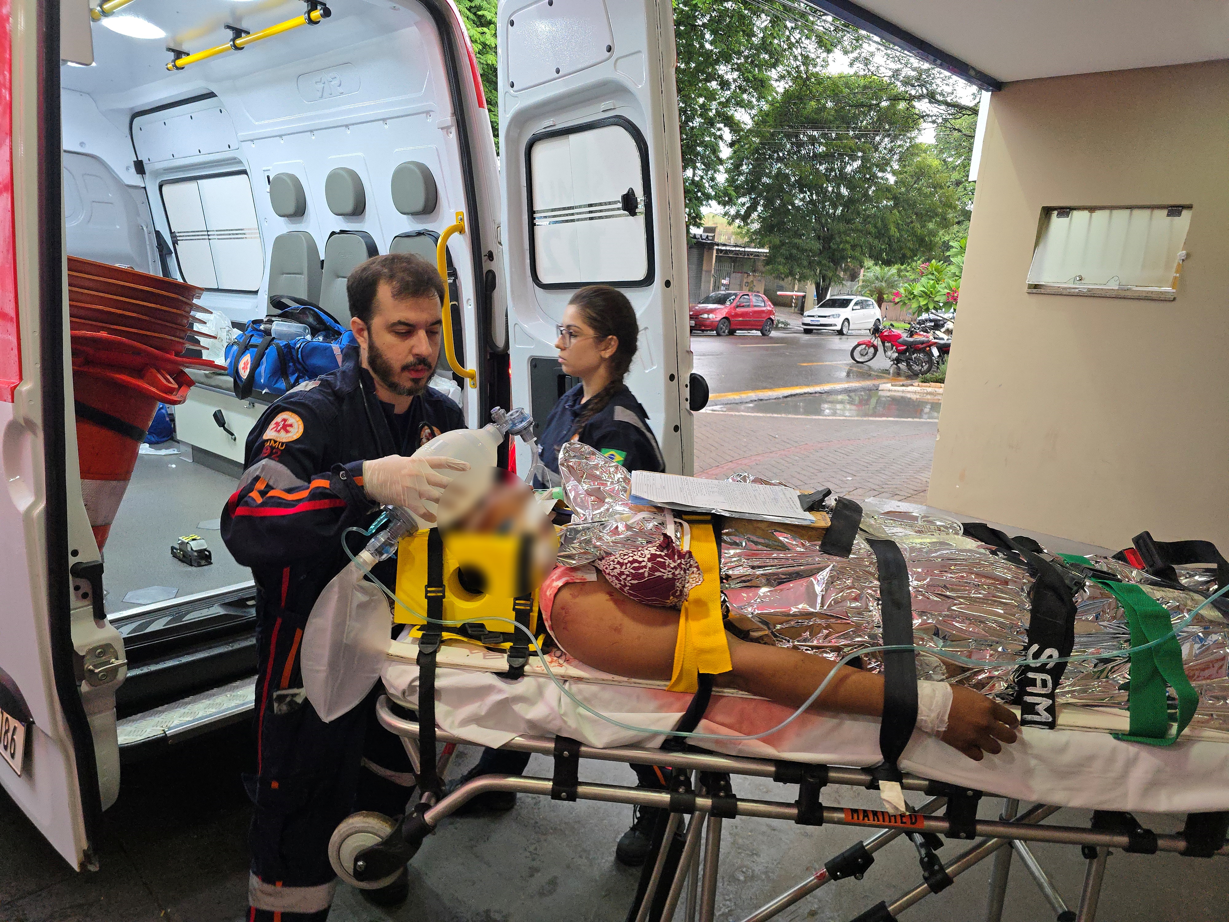 A jovem ficou desacordada. Socorristas do Samu com apoio médico deslocaram ao local. Em uma breve avaliação, o médico entubou a vítima que apresentava um trauma de crânio muito grave com sangramento e trauma no pulmão.