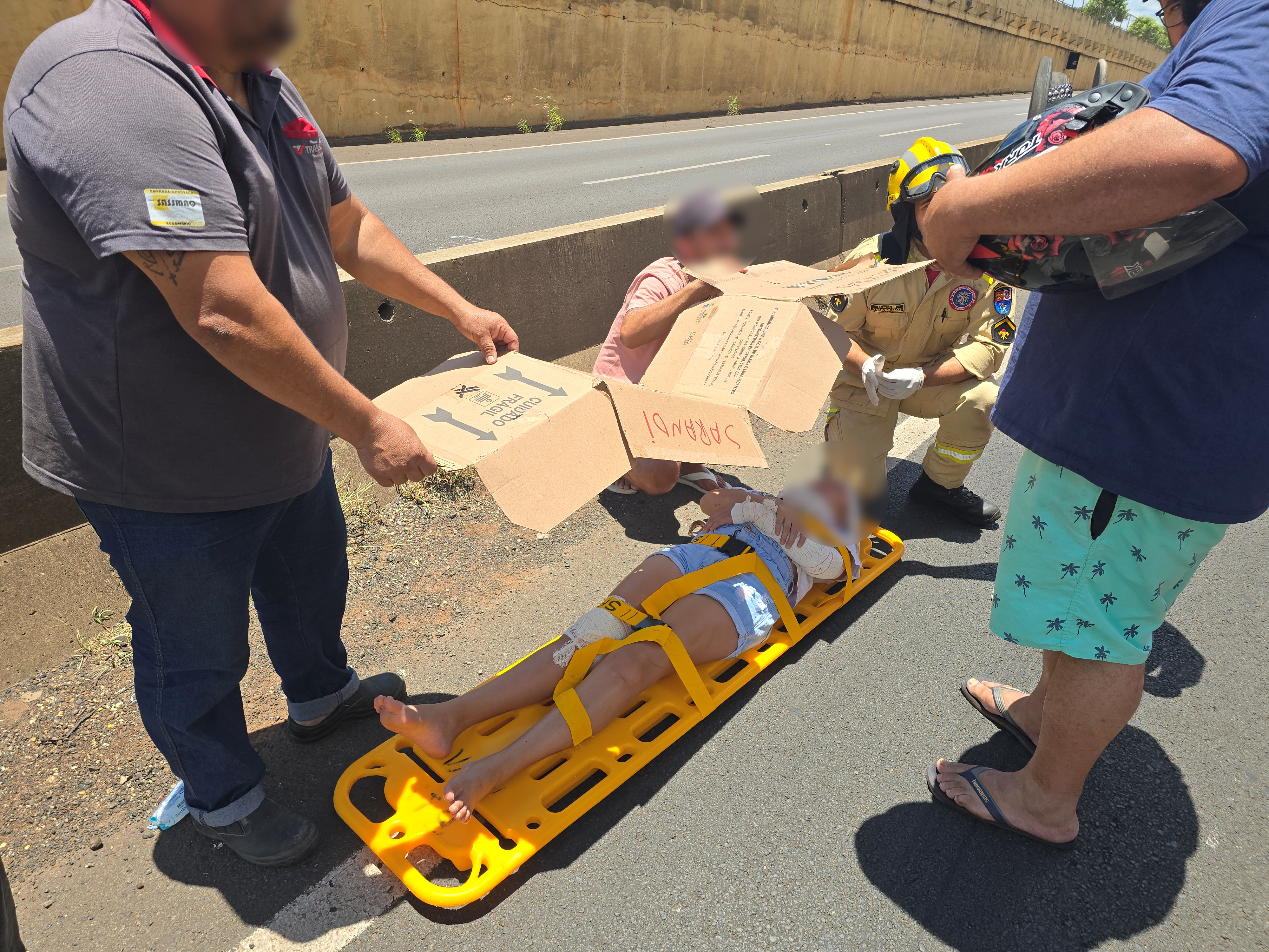 O motociclista que seguia sentido Marialva não percebeu a lentidão dos veículos e acabou batendo com muita força contra a traseira do carro. Com o impacto, pai e filha foram arremessados contra o asfalto. O homem de 47 anos sofreu uma fratura grave na mão, lesão em face e outras escoriações pelo corpo.