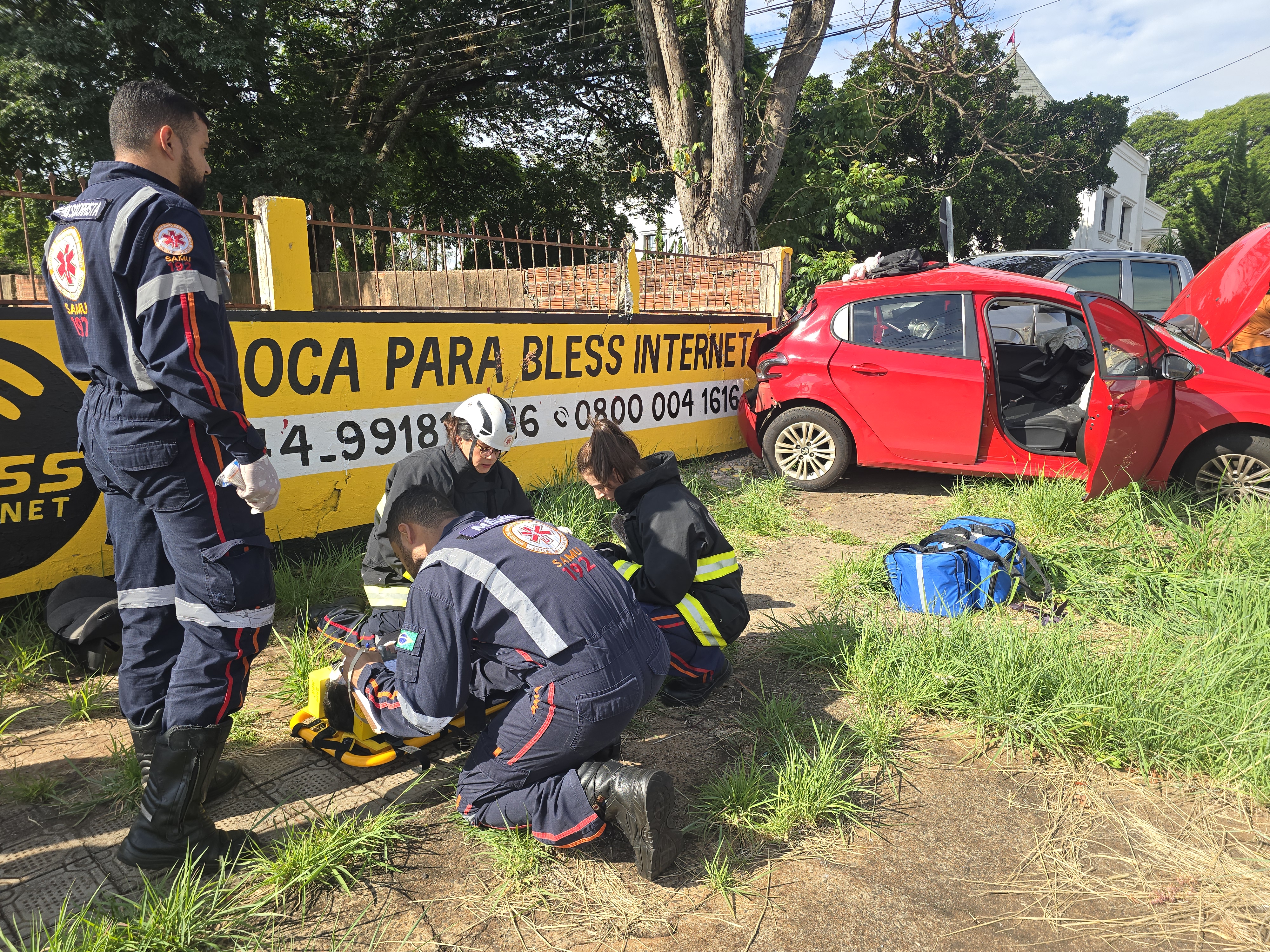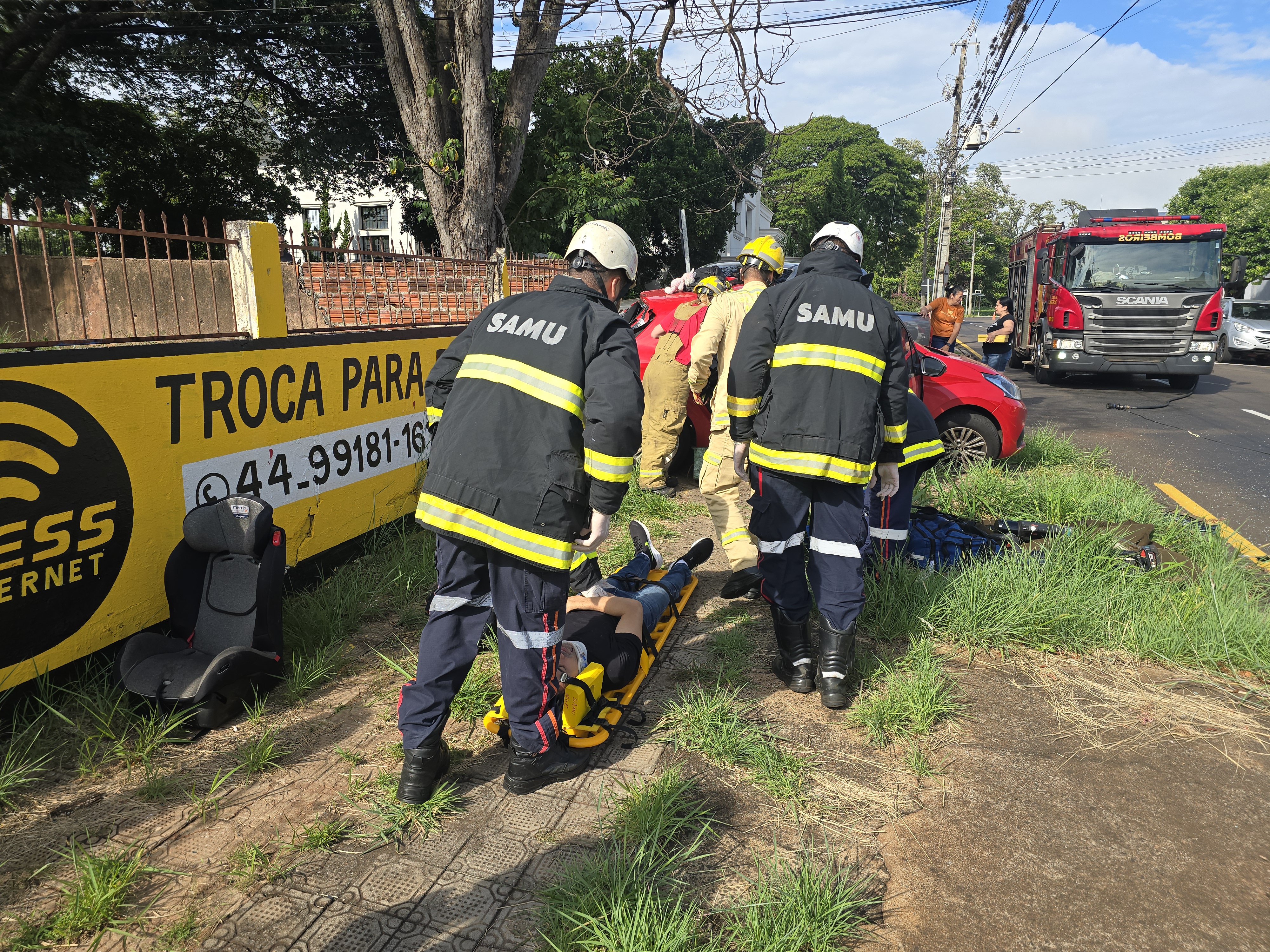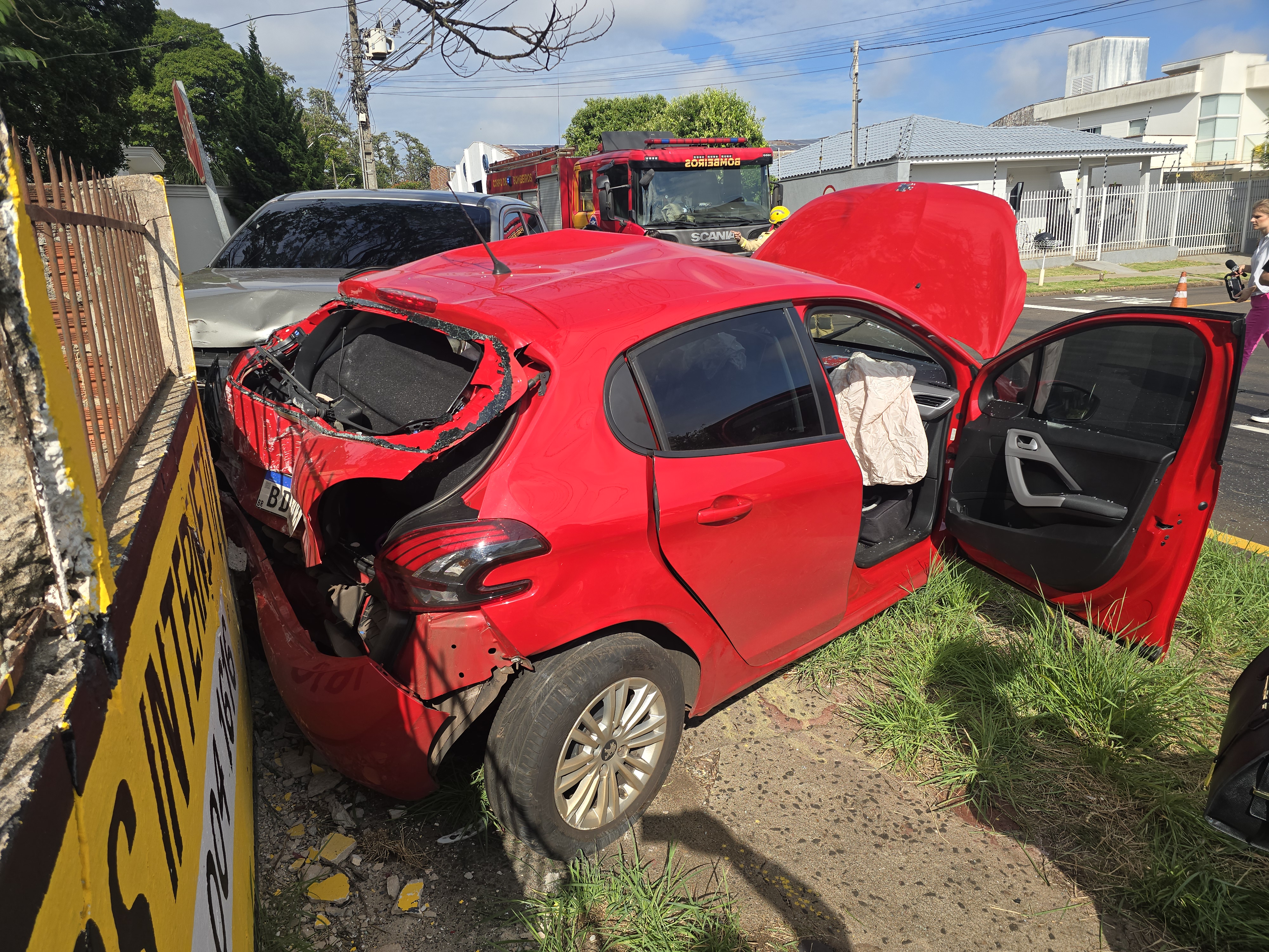 O homem não se feriu. A gestante precisou ser socorrida pelo Siate. Já no automóvel o motorista foi socorrido com ferimentos em face. A esposa que estava de passageira recusou atendimento. O casal havia deixado o filho na creche.