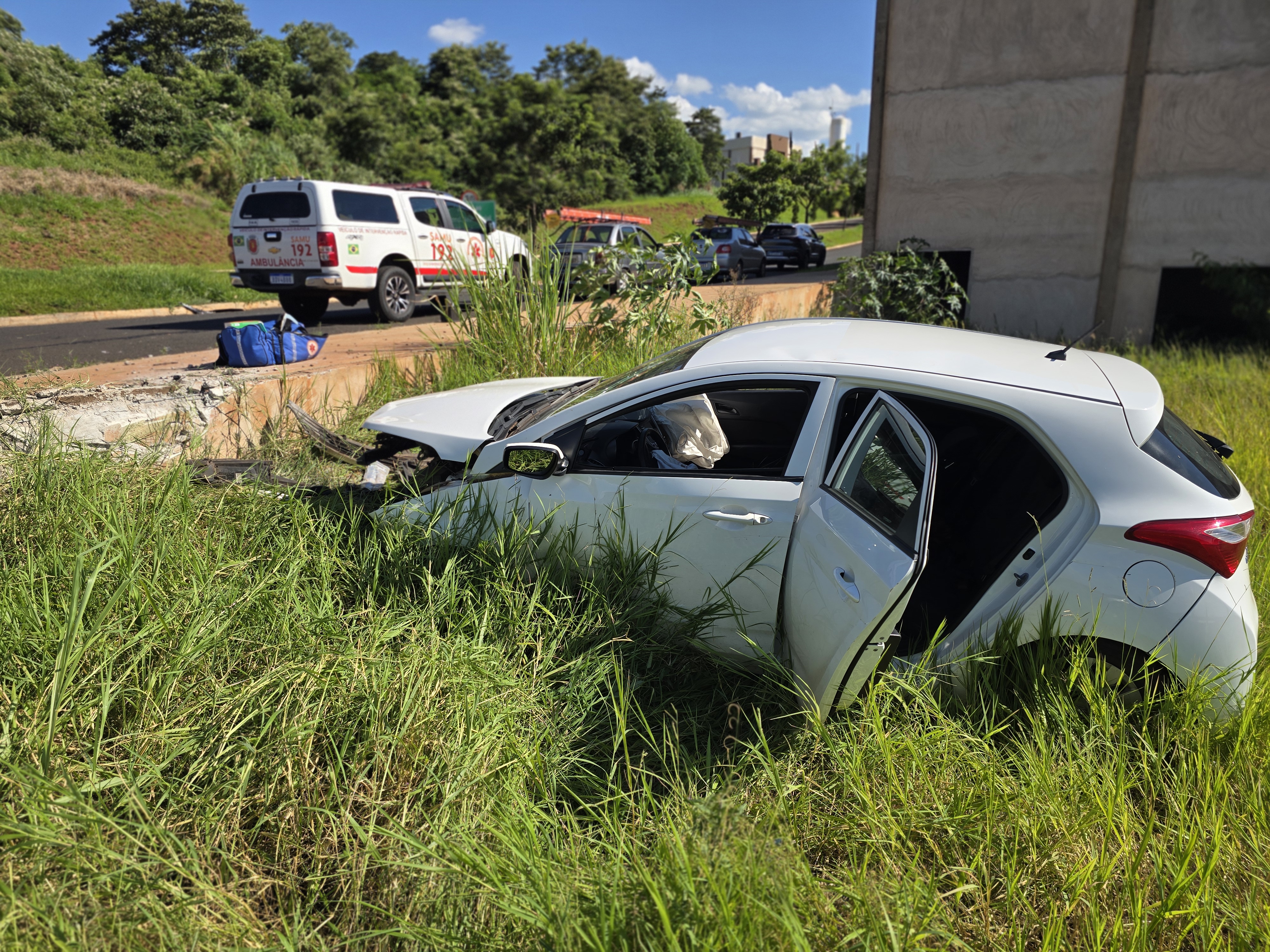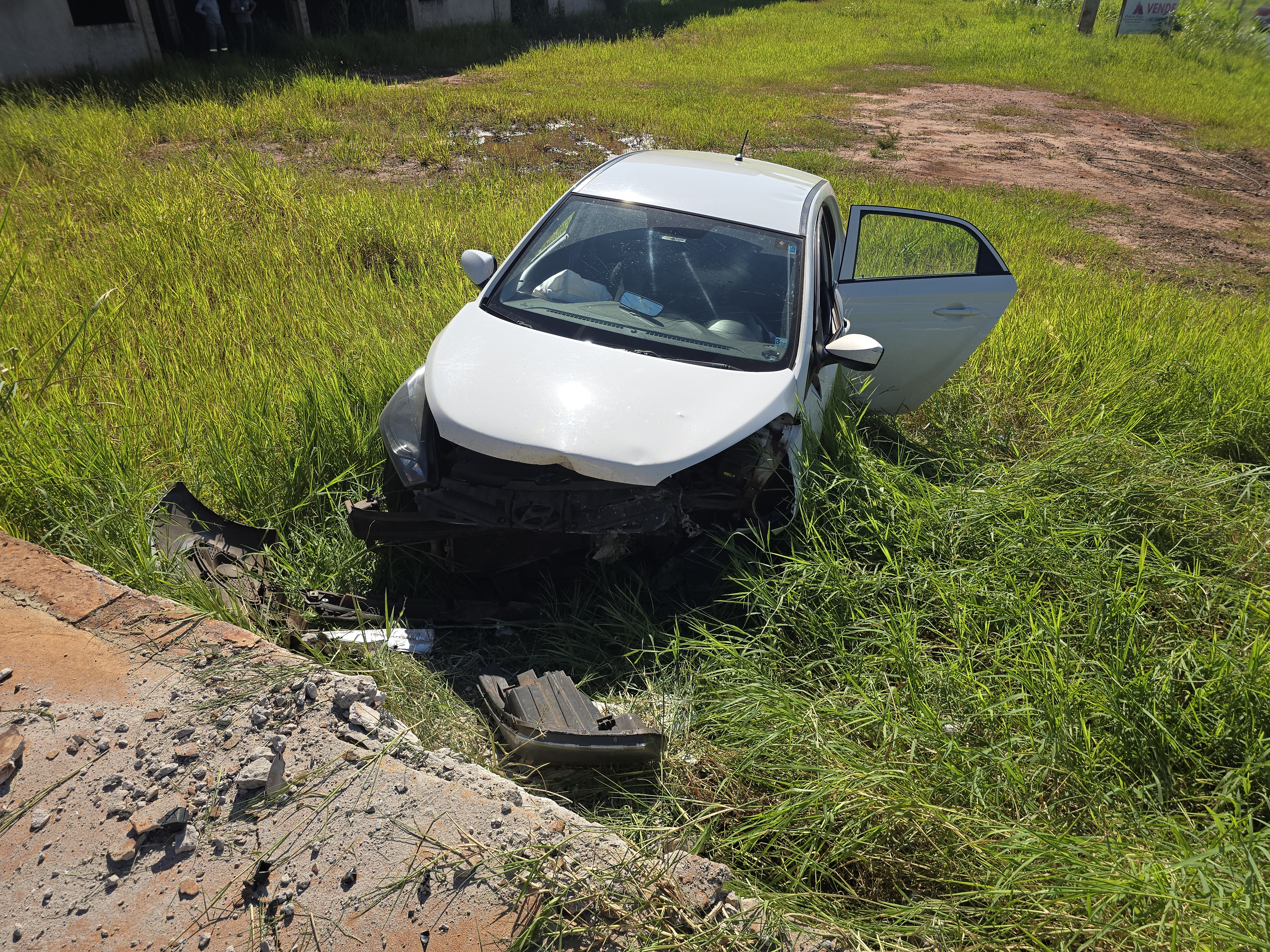 Após bater contra o Celta, o condutor do HB20 perdeu a direção e invadiu um terreno baldio. O carro colidiu com muita violência contra uma mureta. O motorista sofreu uma fratura exposta em braço, trauma de crânio leve, fratura de osso em face e fratura fechada na perna.