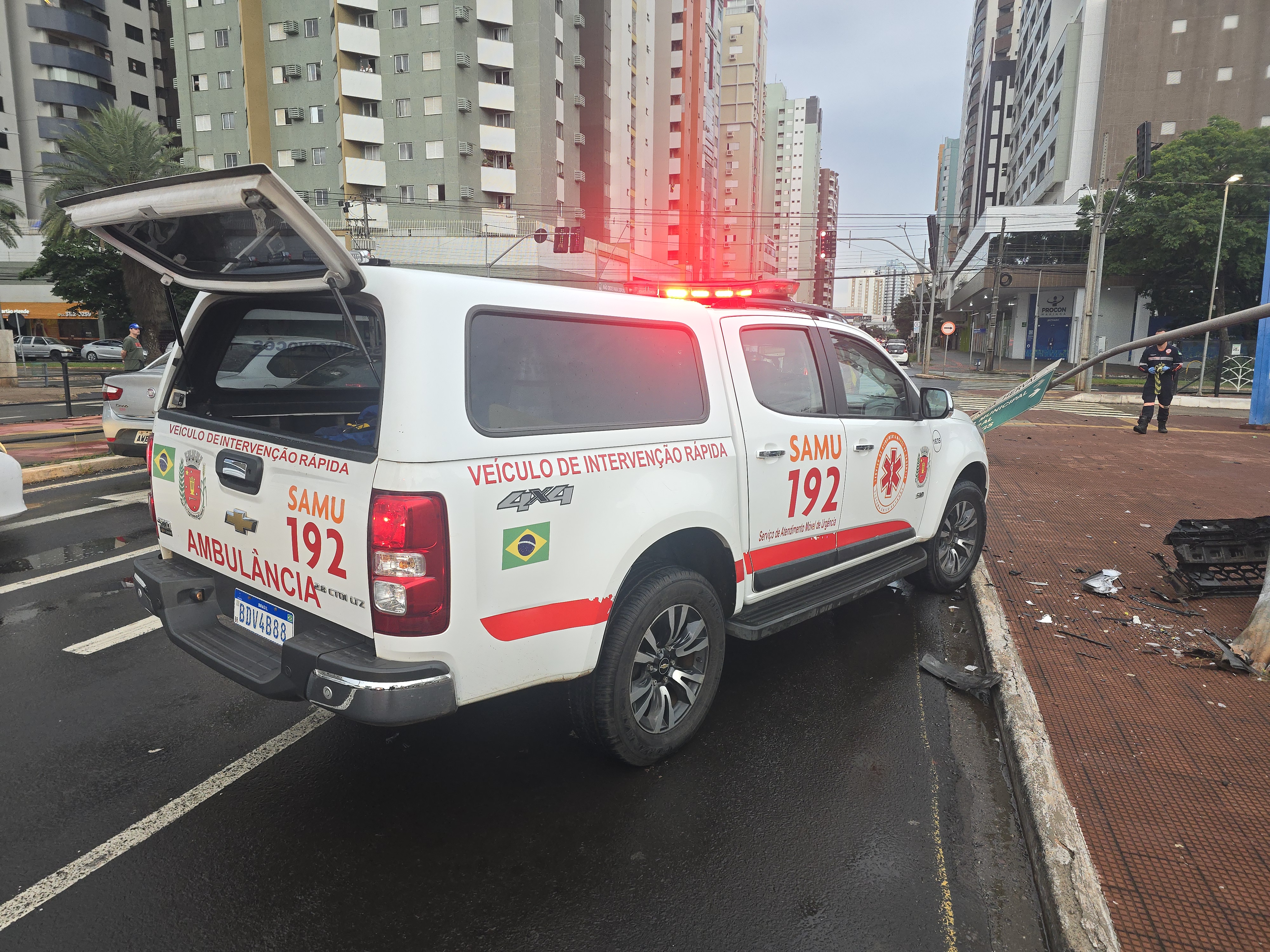 O acidente aconteceu no final da tarde de domingo, 1, na Avenida Horácio Raccanello Filho com Herval, no centro de Maringá. Uma mulher conduzindo um Hyundai HB20 bateu com muita violência contra uma placa de sinalização. A estrutura que sustenta a placa foi atingida pelo automóvel.