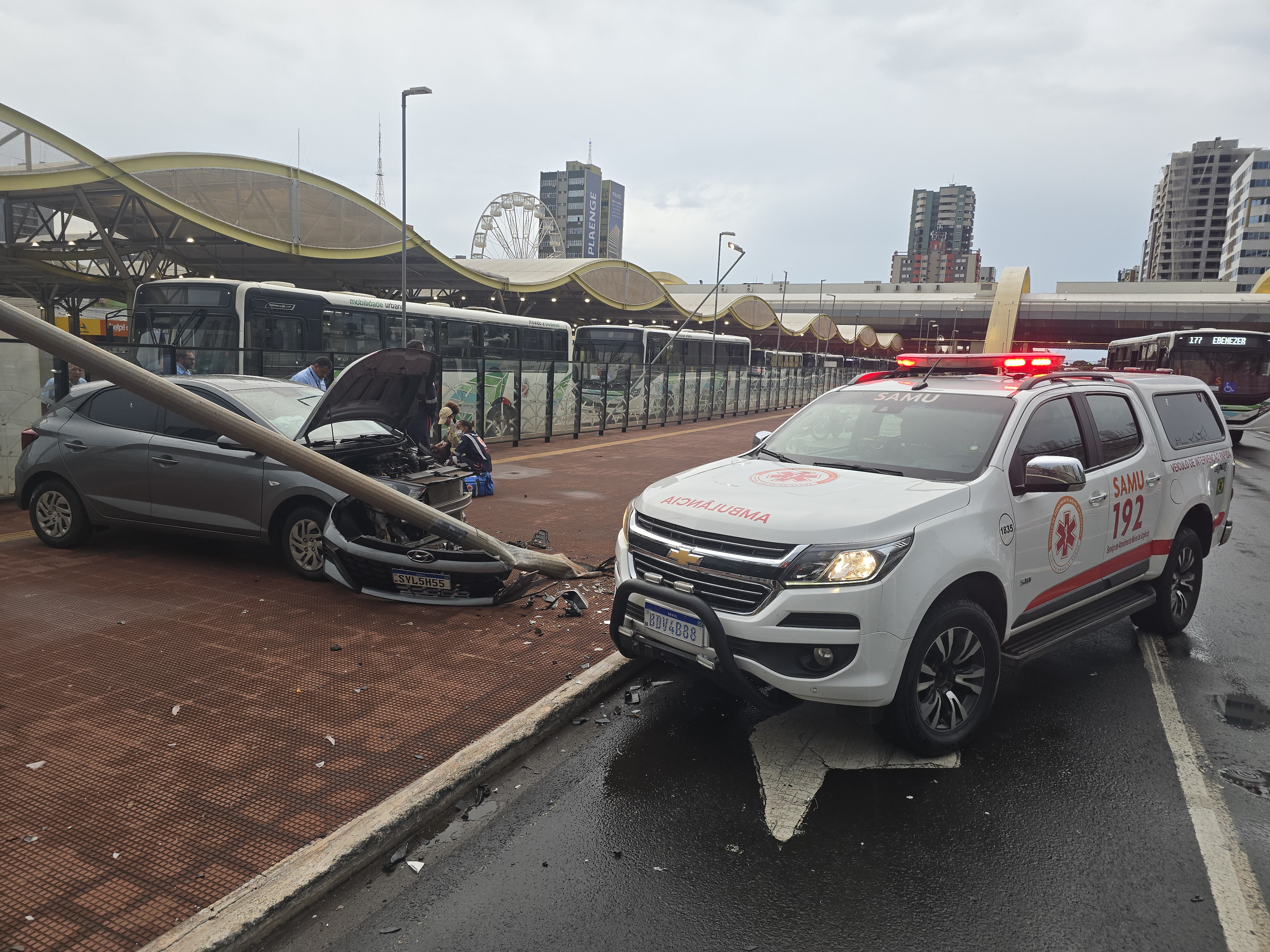 Testemunhas relataram que a filha da condutora desembarcou do veículo ao lado do terminal intermodal e em seguida houve o acidente. A motorista precisou ser socorrida pelo Siate e avaliada por um médico do Samu. A filha ao presenciar o acidente da mãe entrou em choque.