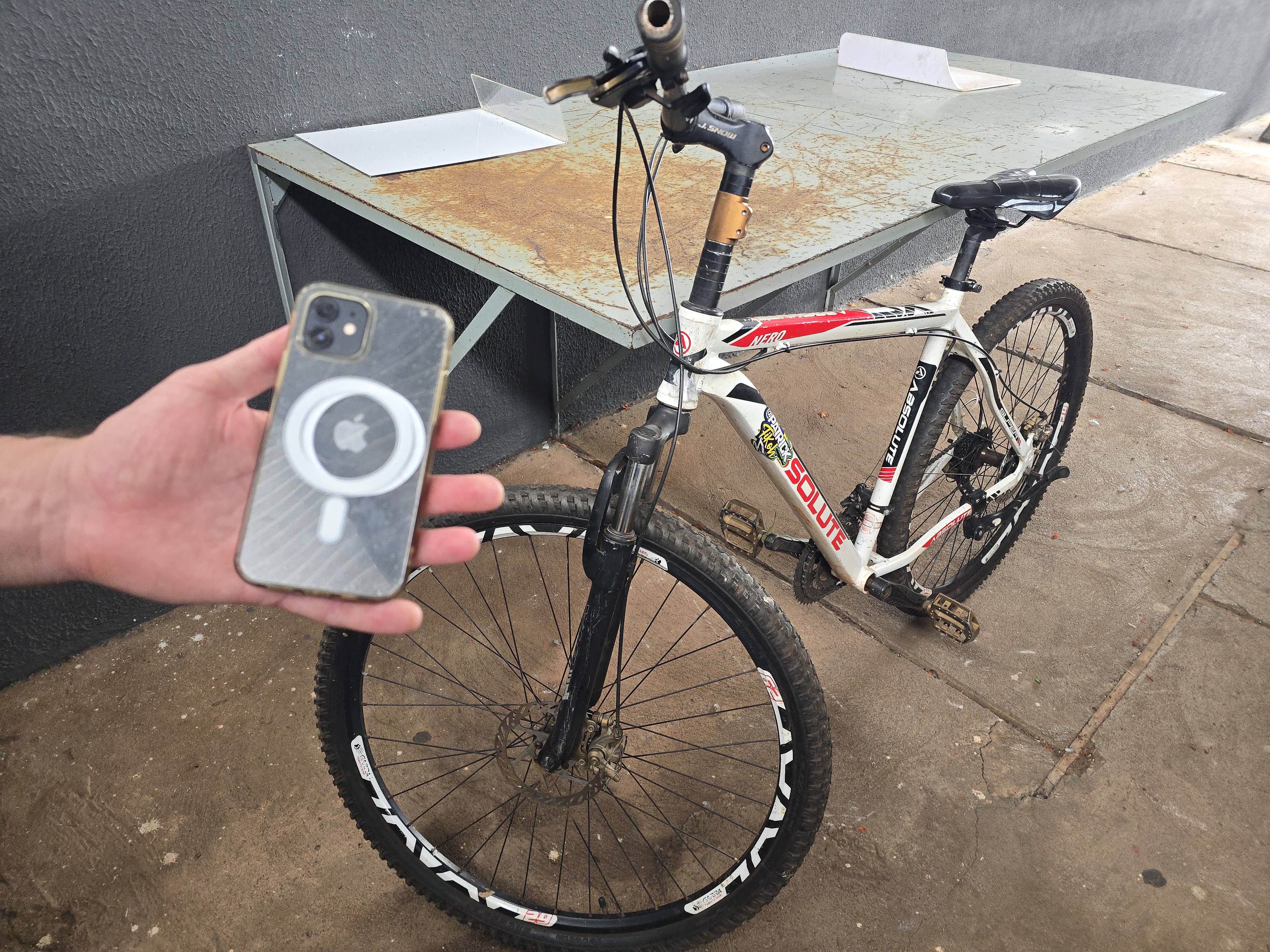 Uma mulher foi detida tentando resgatar o Iphone. Diante das informações e características, os policiais civis localizaram também o ladrão que praticou o crime. Uma bicicleta Mountain Bike que seria produto de furto foi apreendida pela polícia.