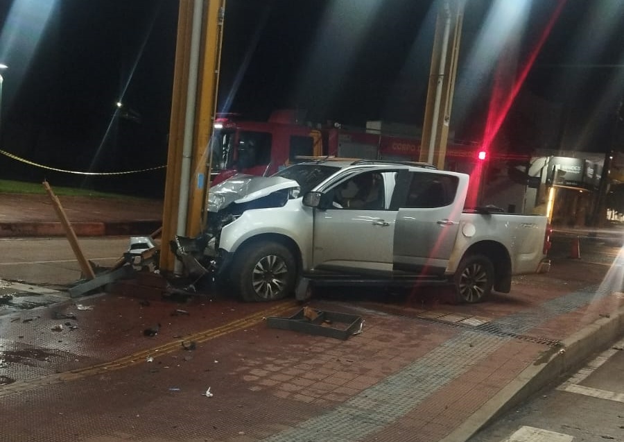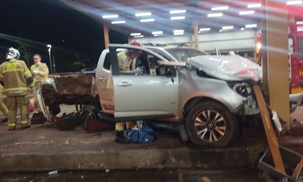 O acidente aconteceu por volta de 2 horas da madrugada deste sábado, 14, no terminal de ônibus que fica na Avenida Morangueira com Alexandre Rasgulaeff, no Jardim Alvorada, em Maringá. Uma caminhonete GM S10 bateu com muita violência em uma estrutura metálica que sustenta a cobertura do terminal.