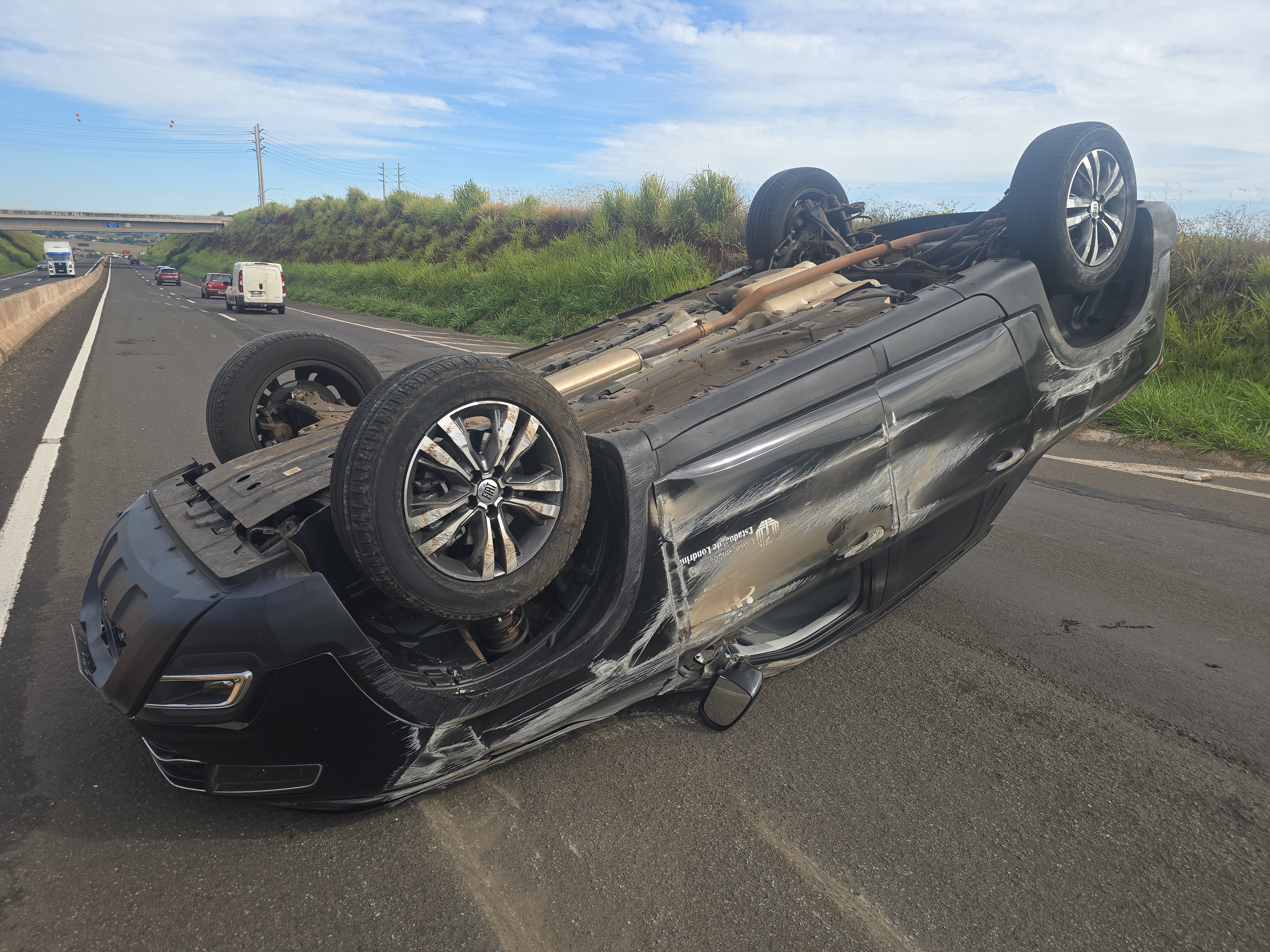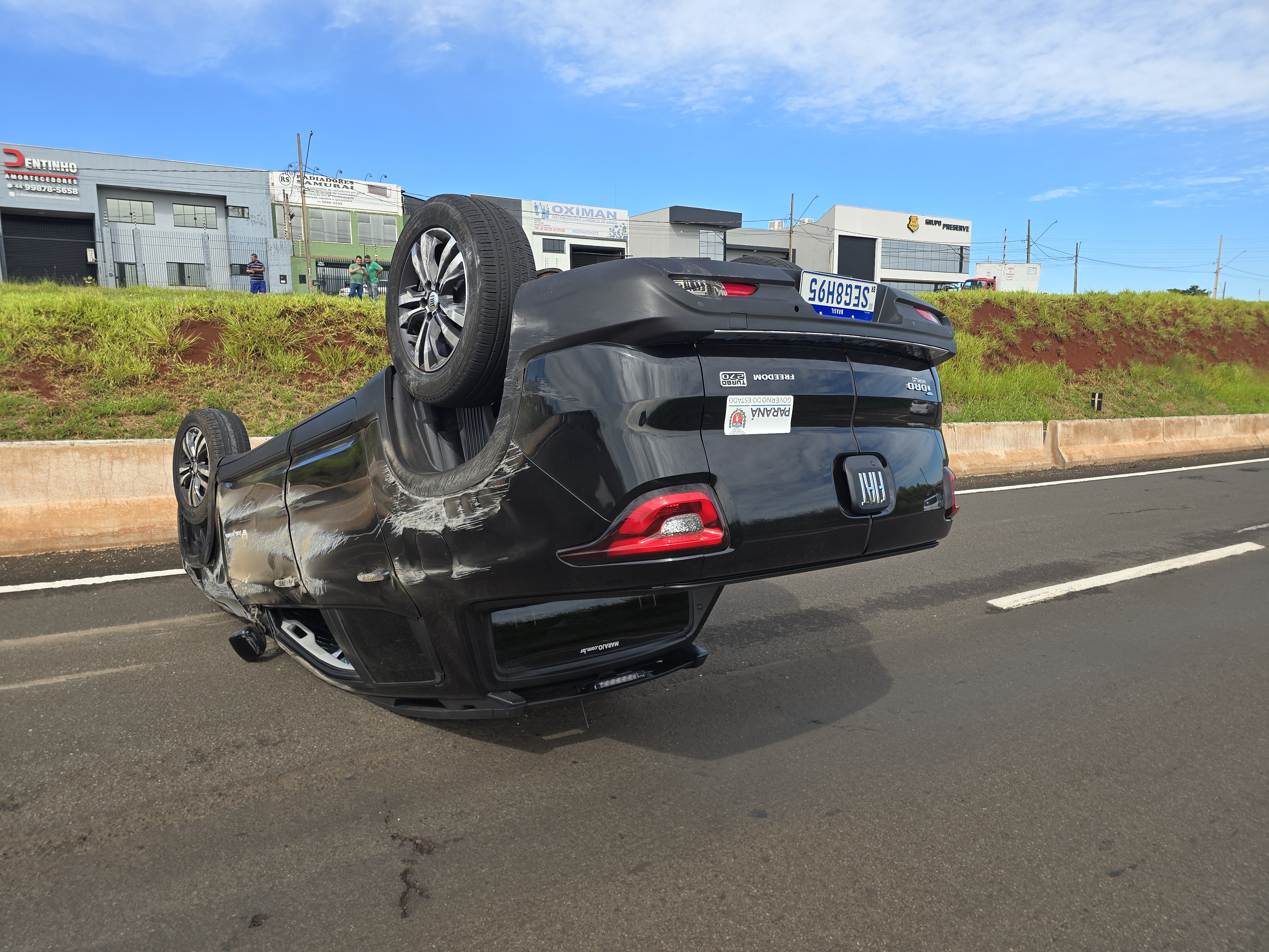 O capotamento aconteceu na manhã deste sábado, 14, no Contorno Norte de Maringá. A batida envolveu um Fiat Siena e uma Fiat Toro. Ambos veículos seguiam pela rodovia BR-376 no sentido Paranavaí quando se tocaram.