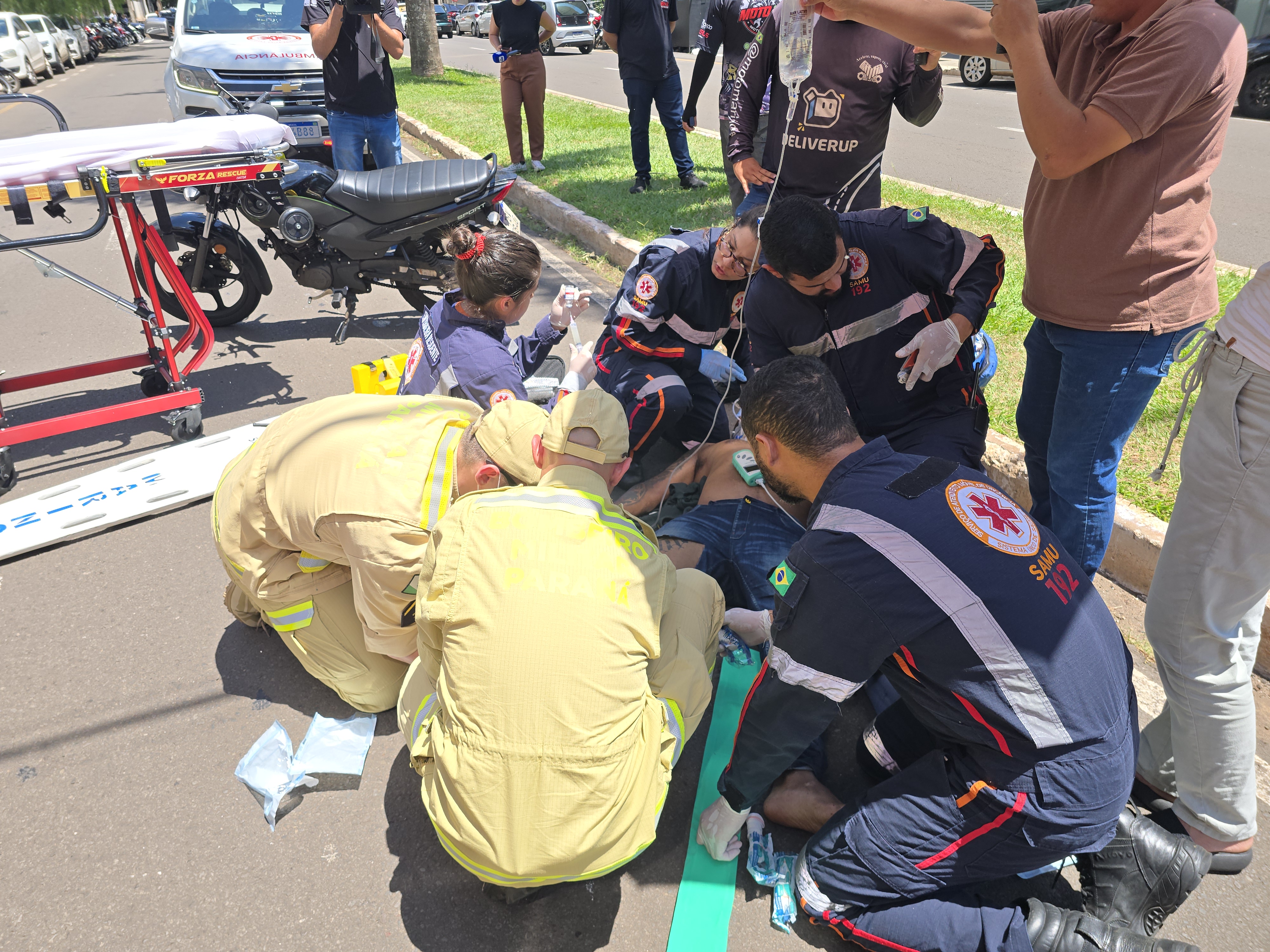 O motorista do Uno foi sair com o carro de um edifício comercial quando não percebeu o motociclista trafegando pela avenida. A moto de Everson atingiu com muita violência a parte dianteira do automóvel. O entregador sofreu uma fratura exposta no tornozelo.