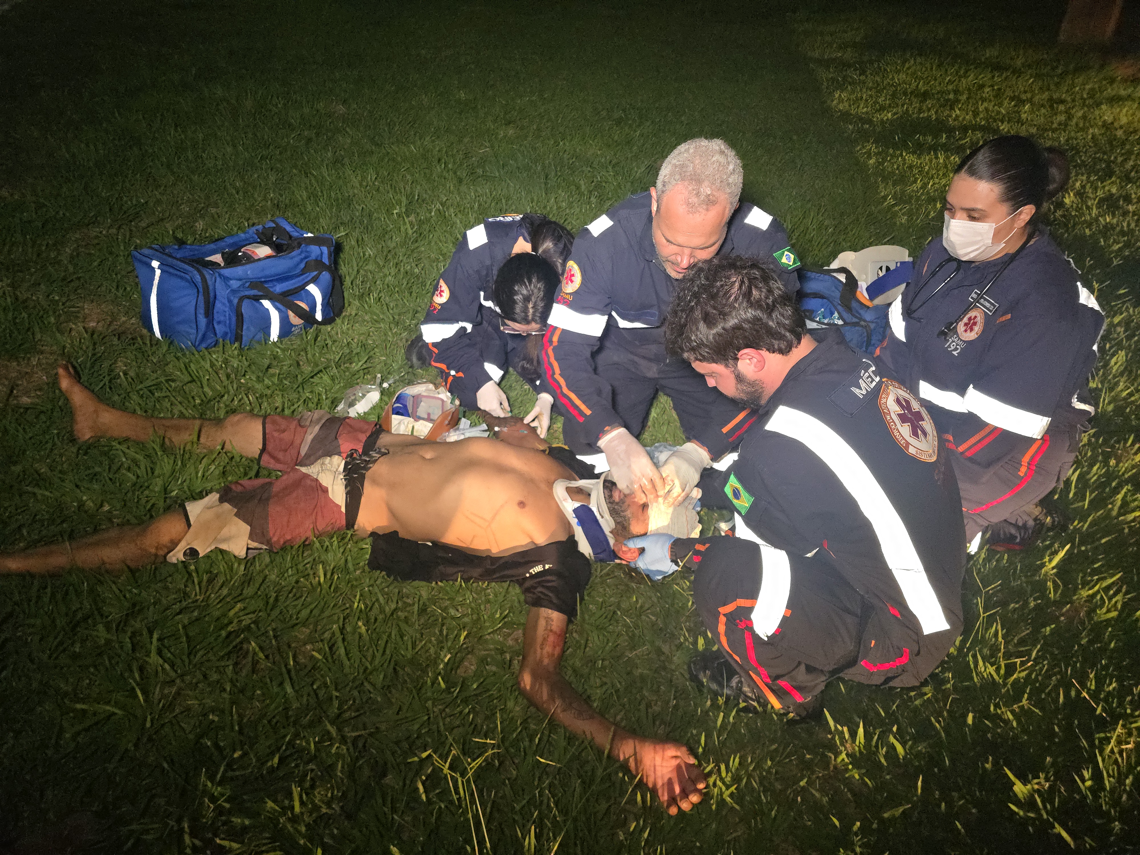 A vítima estava tentando atravessar a pista quando foi atingida pela moto. O piloto sofreu ferimentos moderados. O garupa sofreu apenas escoriações. Equipes do Samu prestaram atendimento aos feridos. O caso mais grave foi do pedestre que foi encaminhado ao pronto socorro do Hospital Santa Casa.