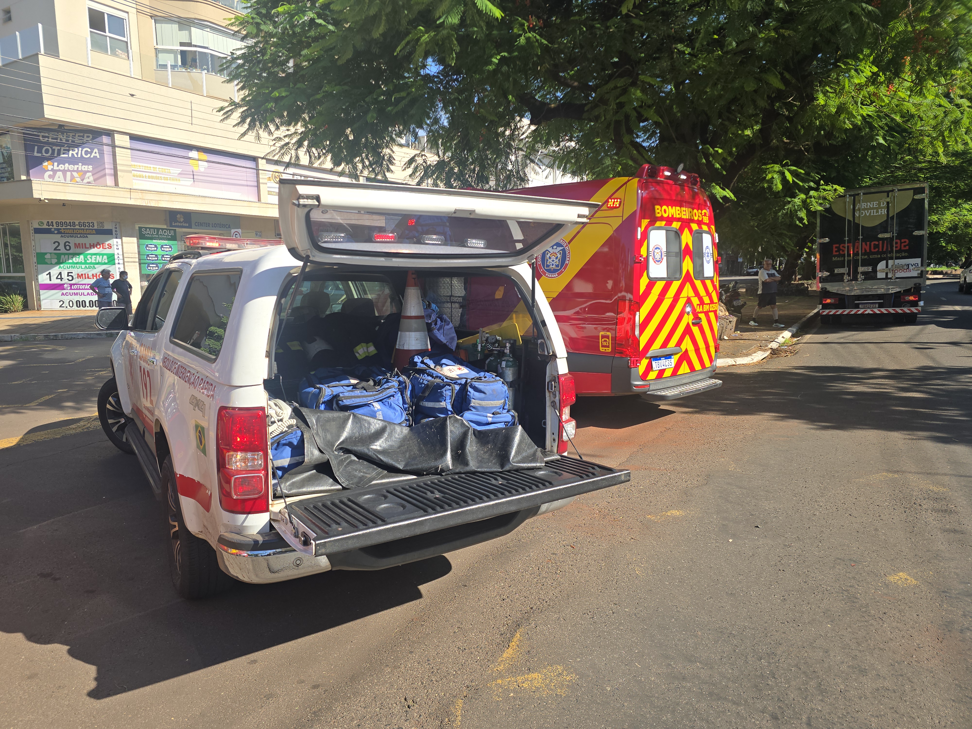 O piloto da moto que recusou atendimento relatou que seguia pela São Paulo na pista da esquerda quando de repente o caminhão sai do estacionamento de um supermercado e entra na sua frente. O mototáxi para não cair debaixo dos rodados do caminhão conseguiu desviar e evitar uma tragédia.