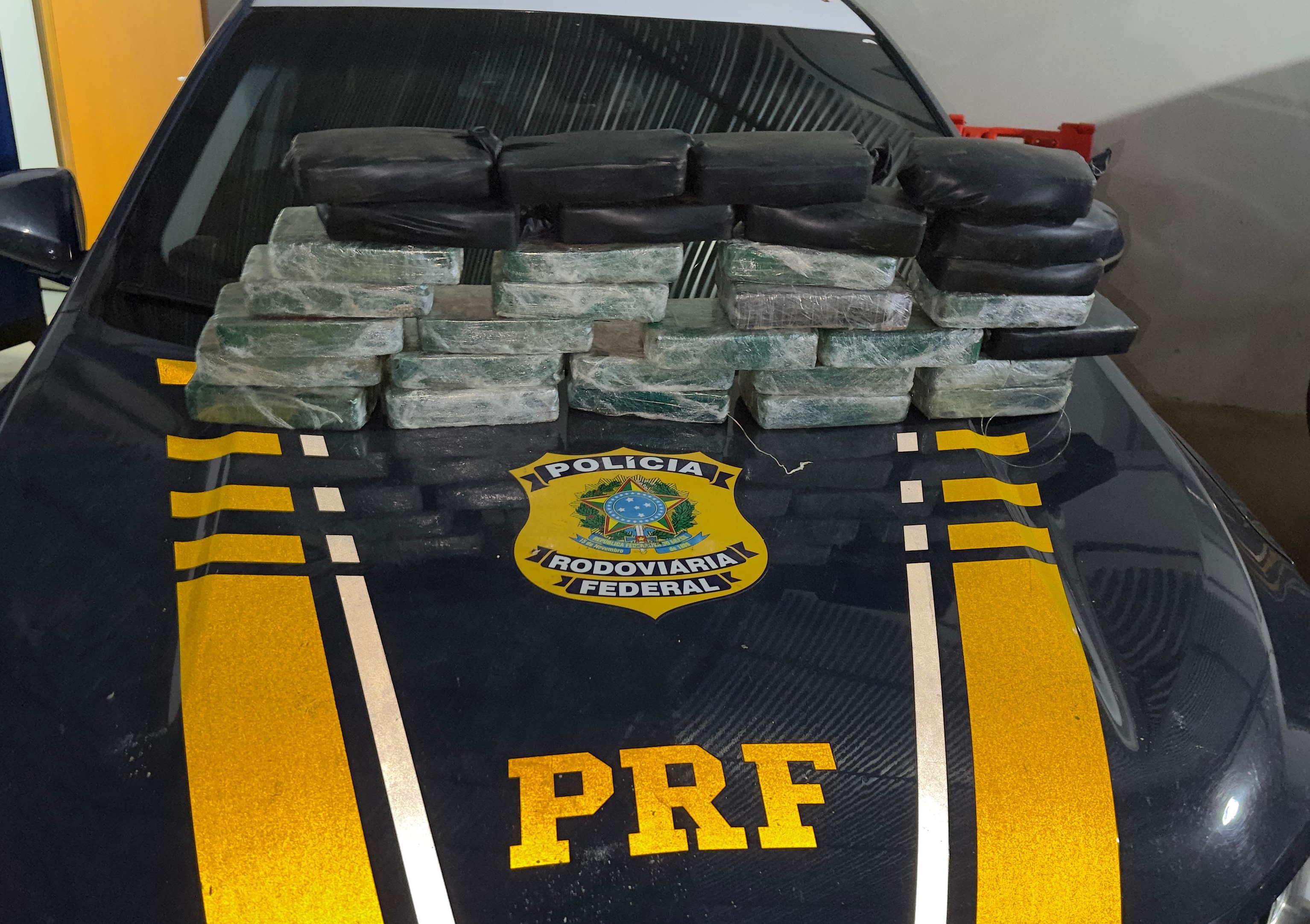 Após informações desencontradas, a equipe da PRF realizou uma verificação minuciosa no veículo e encontrou em um fundo falso, previamente preparado. Os policiais localizaram 31,6 kg de pasta base de cocaína e 1,1 kg de cocaína.