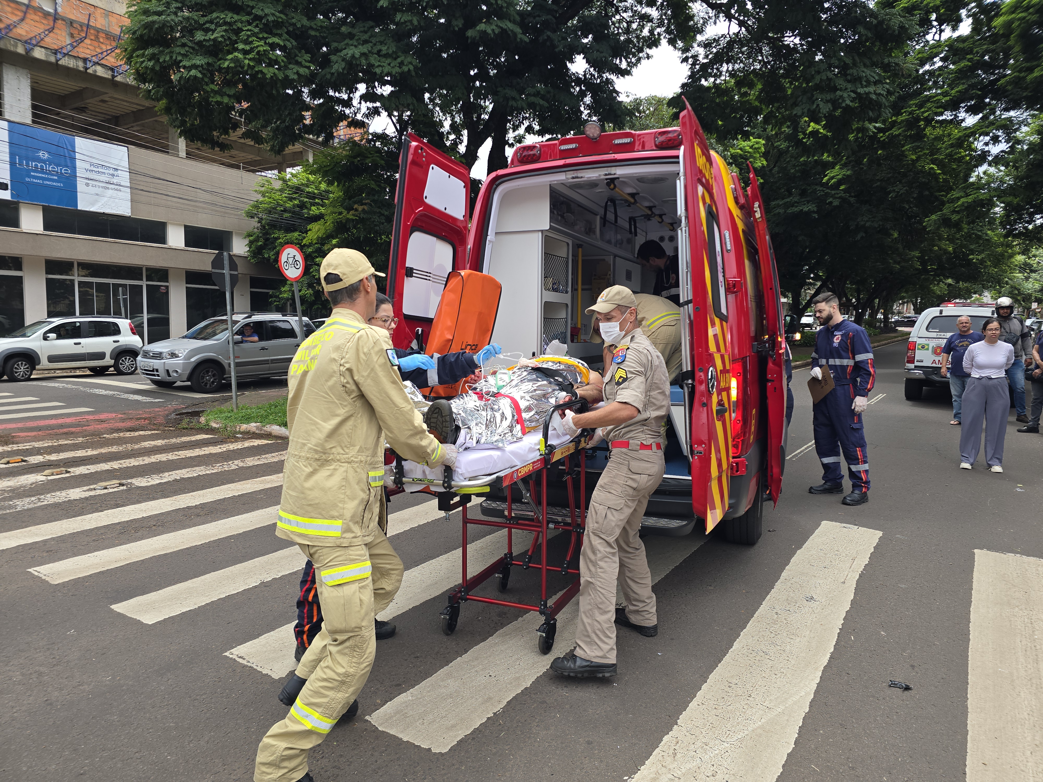 O acidente aconteceu na tarde desta quinta-feira, 12, no cruzamento da Avenida Riachuelo com Rua Santos Dumont, na Vila Operária, em Maringá. Um motociclista sofreu ferimentos graves após uma mulher com seu Fiat Stilo invadir a preferencial.