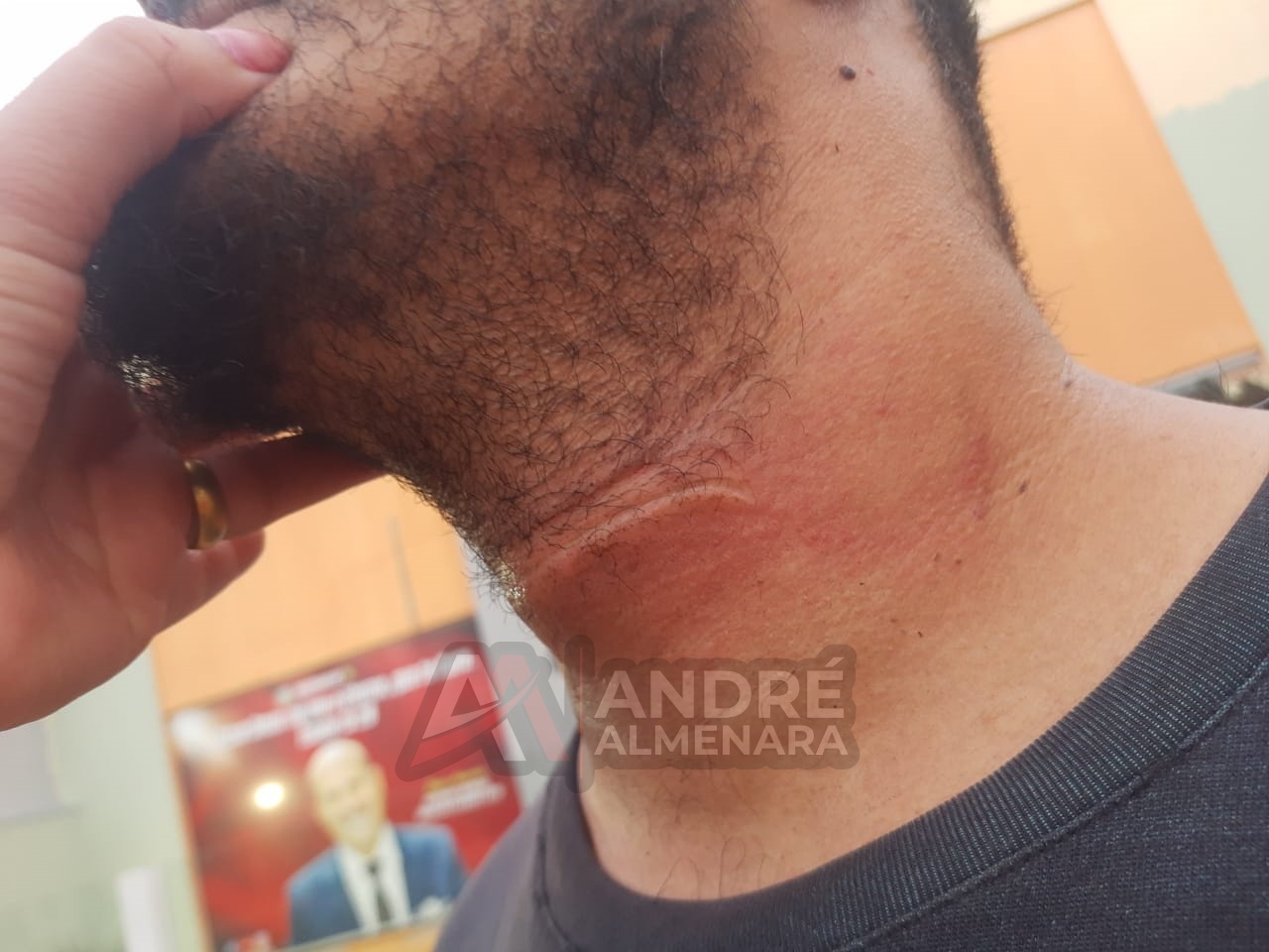 O impacto foi forte o suficiente para deixar uma marca extensa na região e provocar a queda do motociclista. Com a queda, Sérgio sofreu ferimentos na cabeça e precisou de atendimento médico. Ele foi socorrido e encaminhado para um hospital.