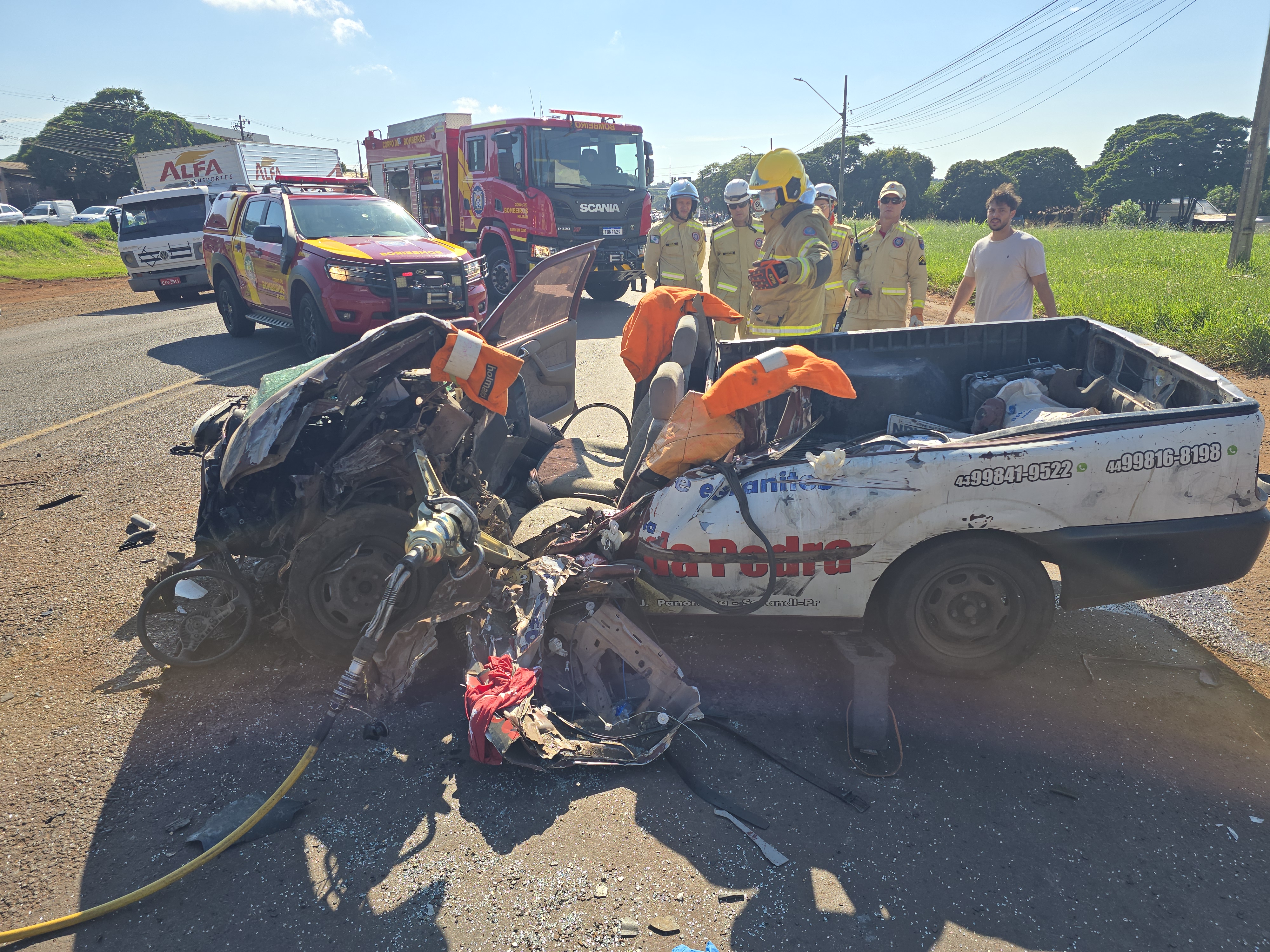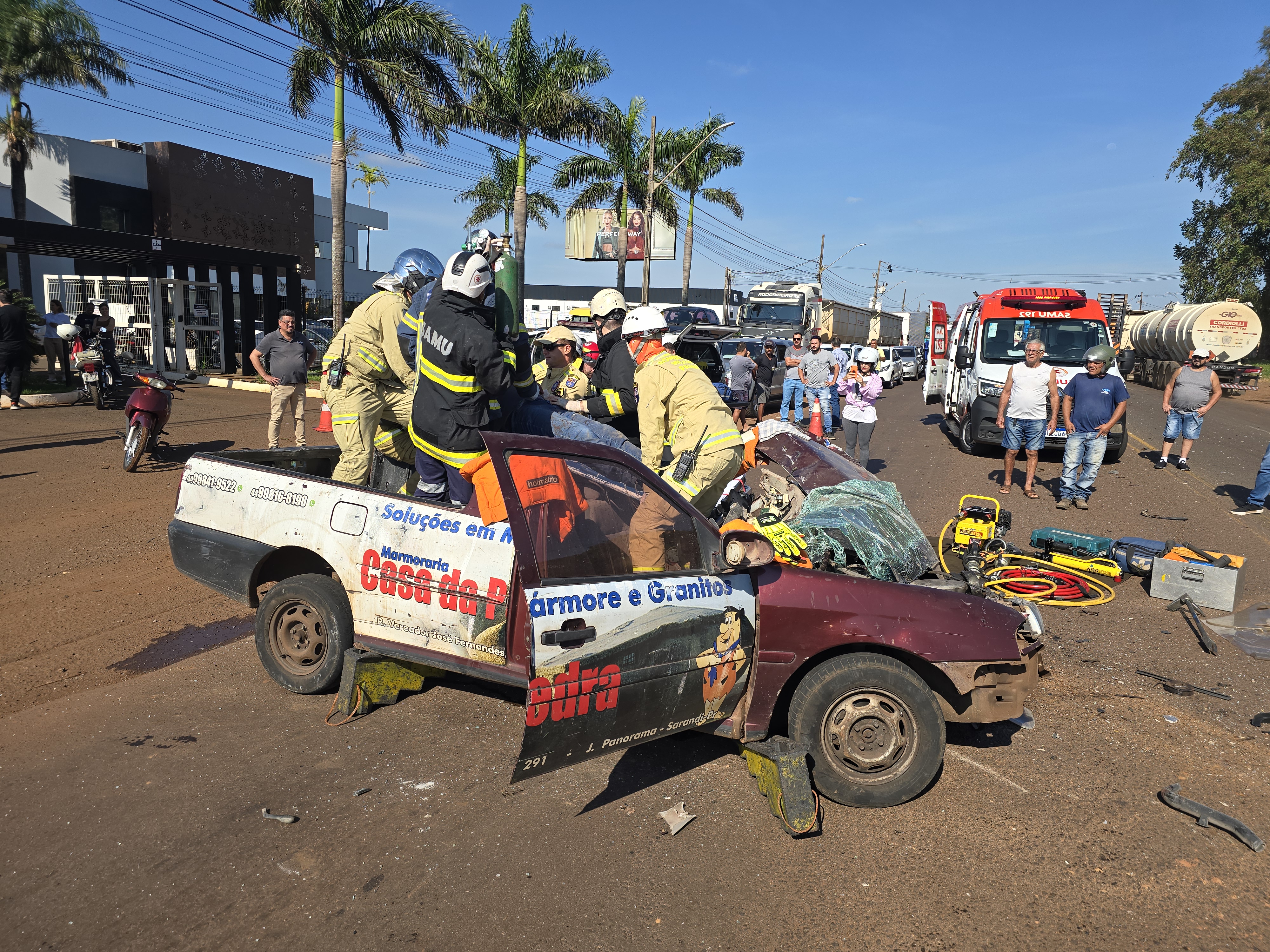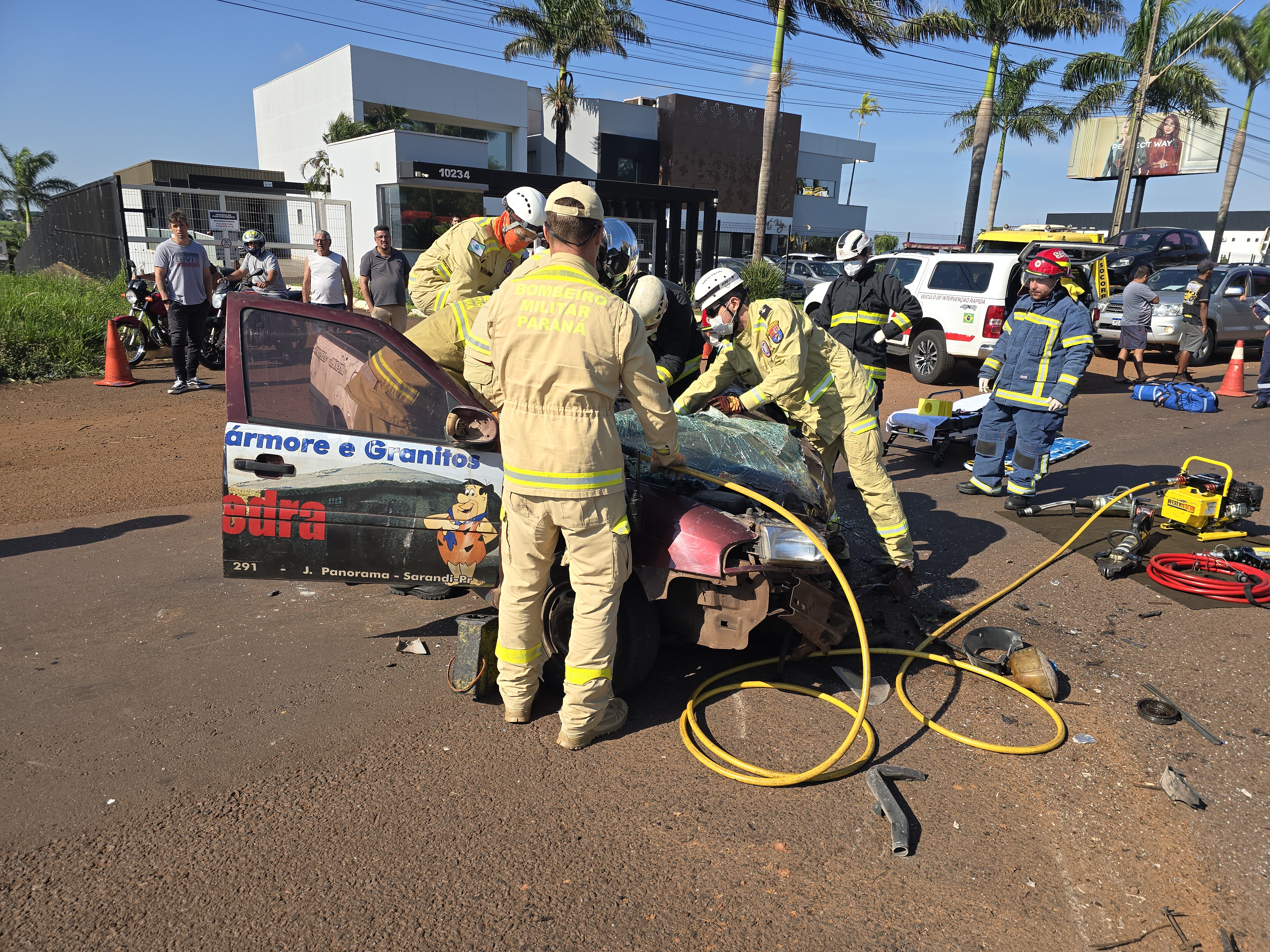 Com o impacto, a picape rodou na pista e o condutor ficou preso entre as ferragens, sem conseguir sair do veículo. Equipes do Corpo de Bombeiros realizaram um trabalho minucioso de desencarceramento. Foi necessário cortar a lataria e remover o teto da picape para possibilitar a retirada segura da vítima.