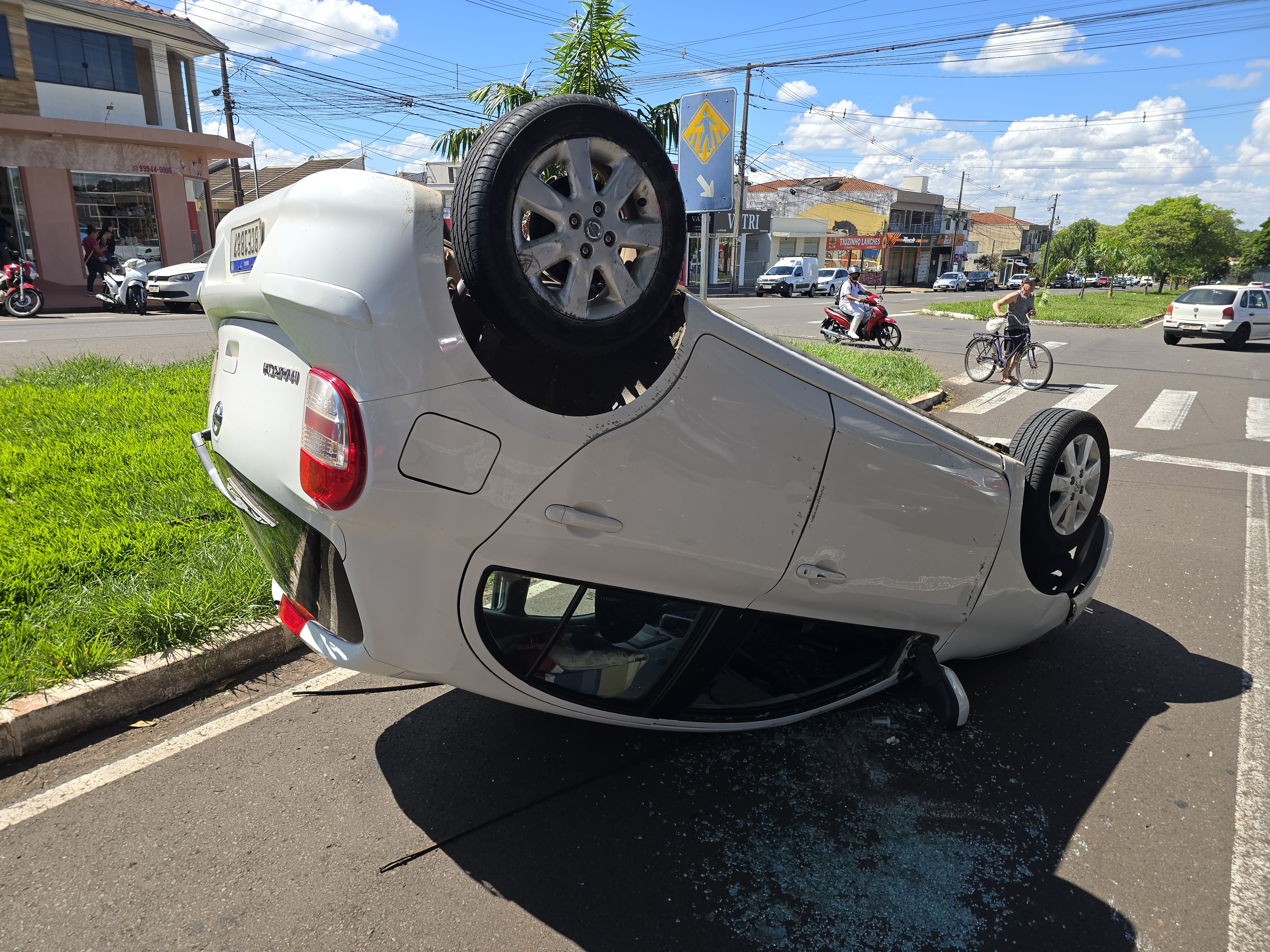 O motorista do Nissan March sofreu apenas um corte leve na mão. Ele recusou atendimento médico no local. A Polícia Militar foi acionada e registrou um boletim de acidente de trânsito para apurar as circunstâncias da ocorrência.